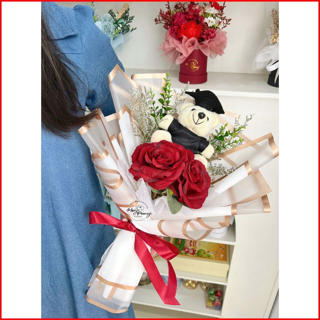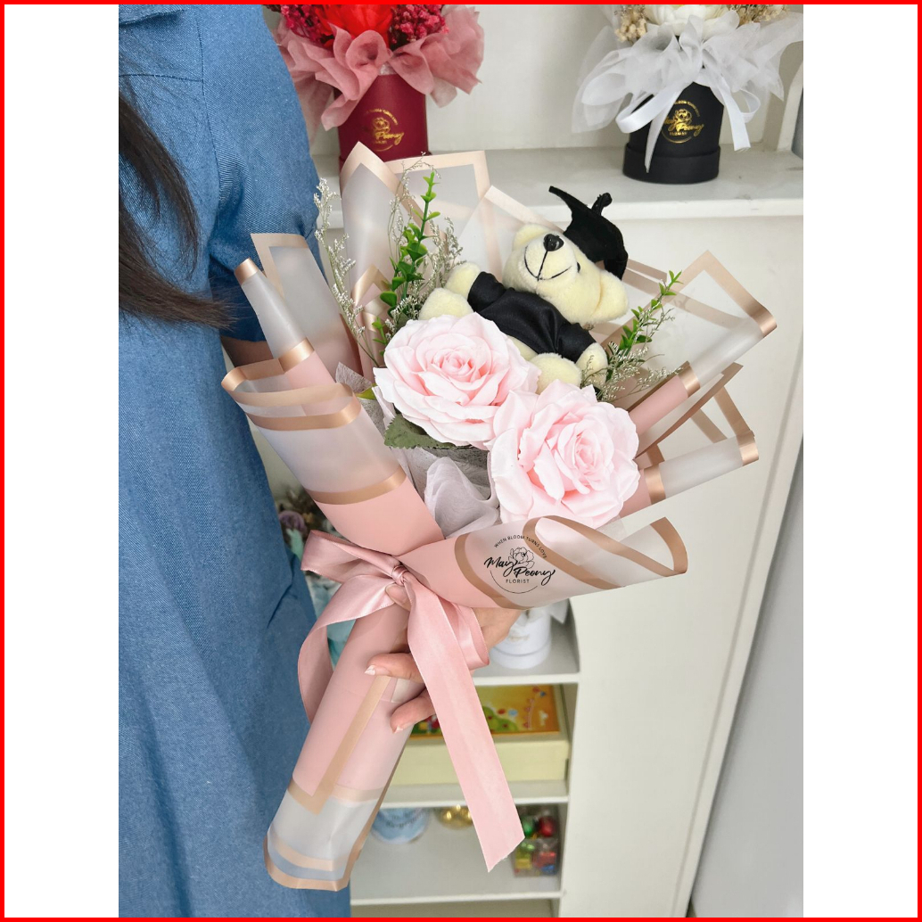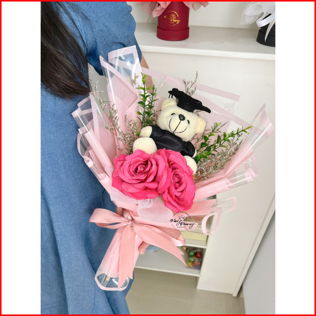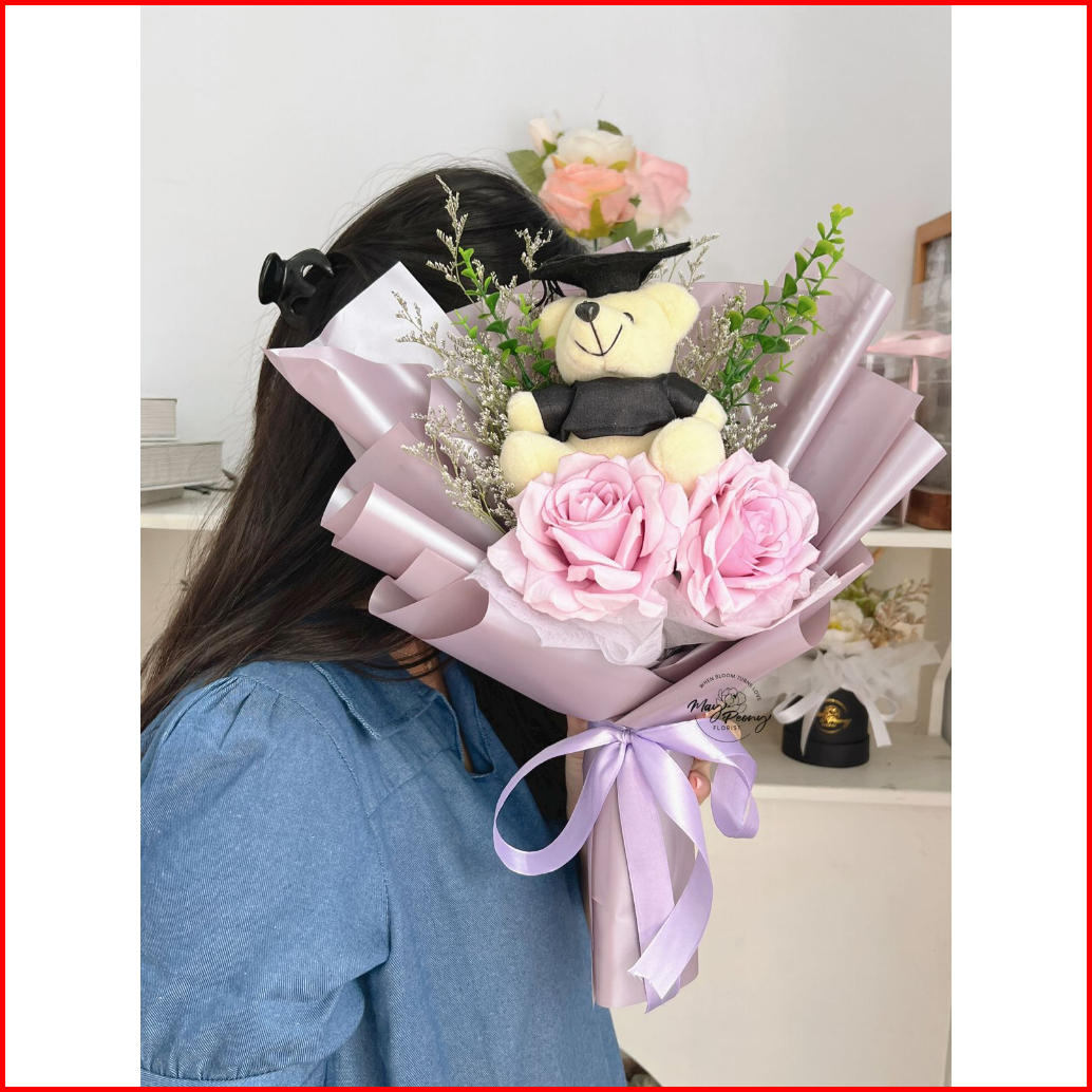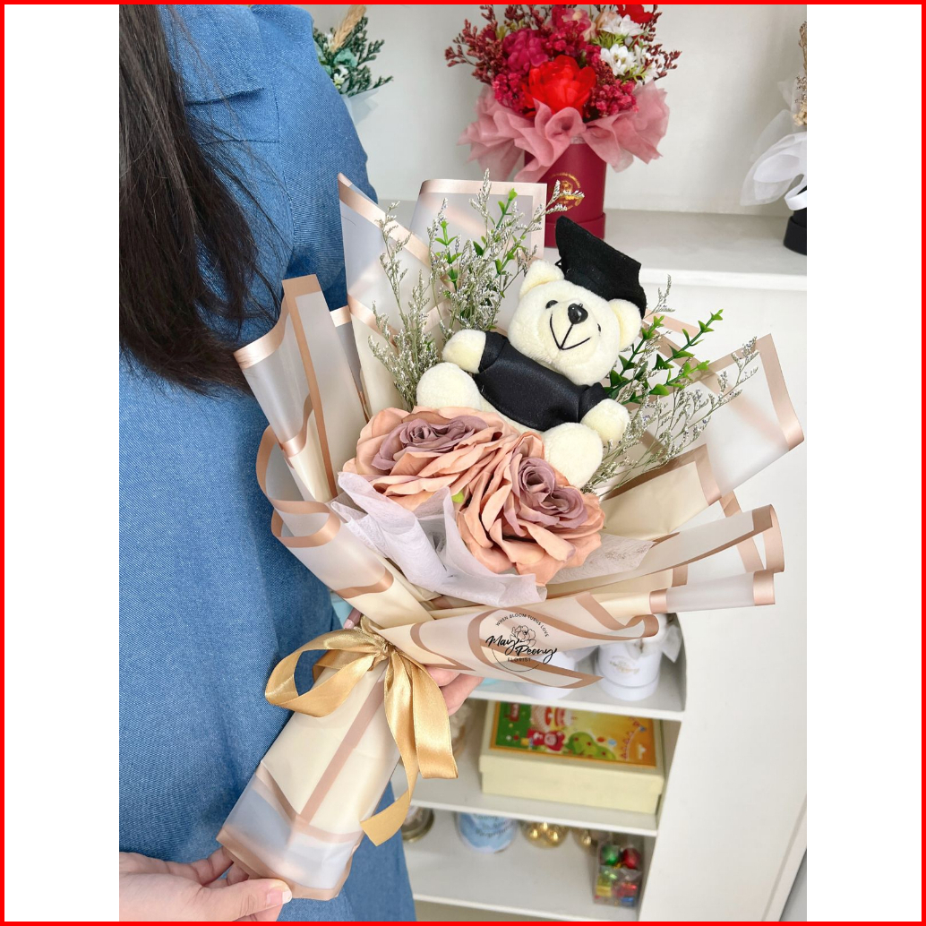 Kirana Teddy Bouquet - Buket Bunga Palsu Buket Artificial Bouquet Artificial Flower Florist Flower Bucket Bouquet Wisuda