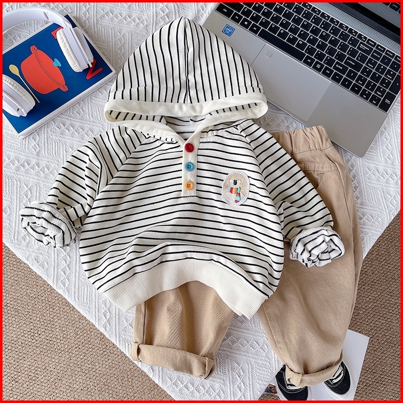 Brownieground Setelan Baju Anak Motif Garis Usia 6 Bulan - 5 Tahun Lengan Panjang Premium