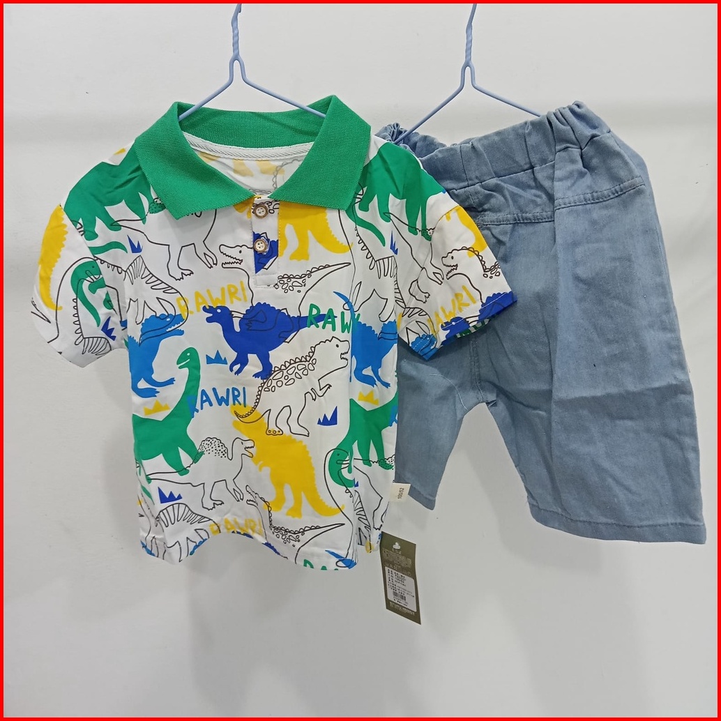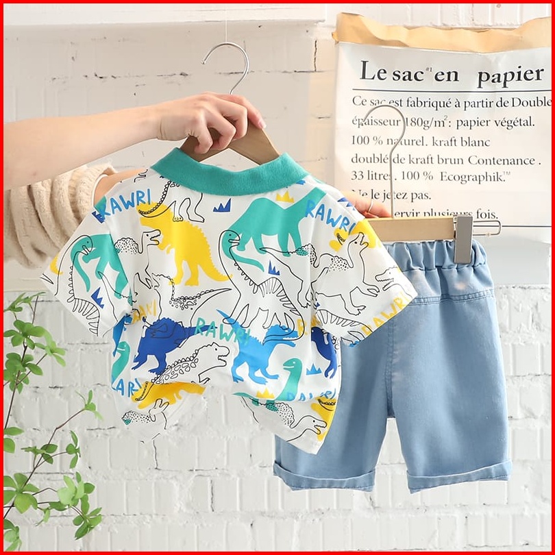 Babylovanta Setelan Anak Motif Dino Rawr Baju Anak 0-5 Tahun Set Pakaian Anak Lucu Baju Dino