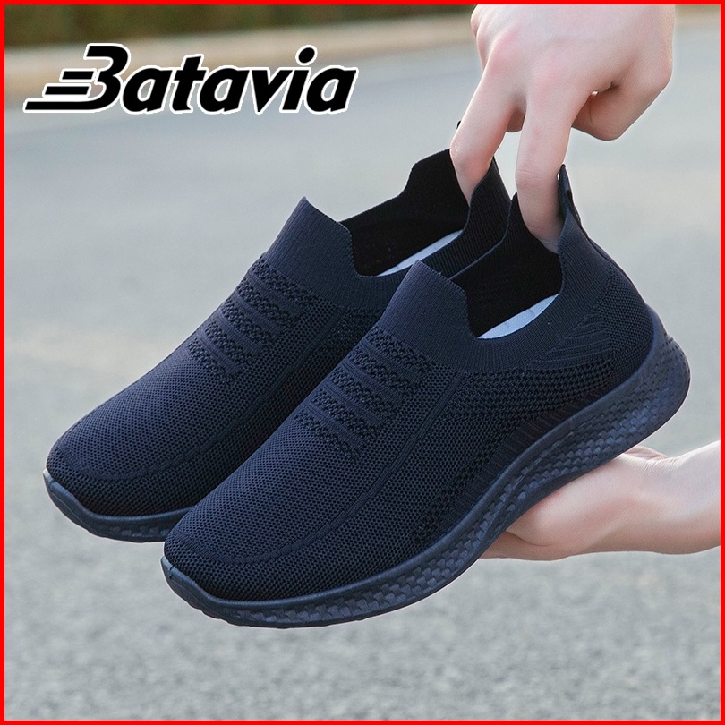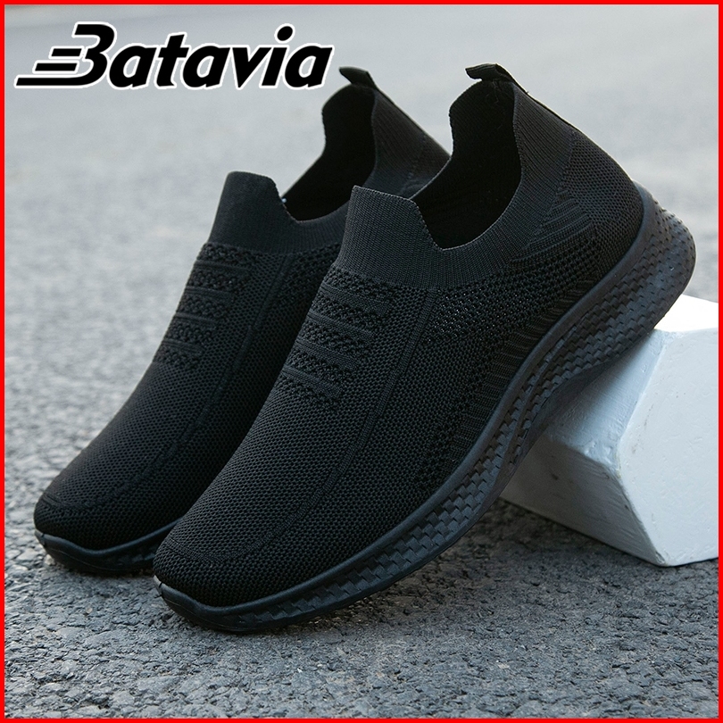 Batavia Sepatu Sneskers Pria Baru Fashion Rajut Terbang Yang Hitam Sekolah Premium Bernapas B35