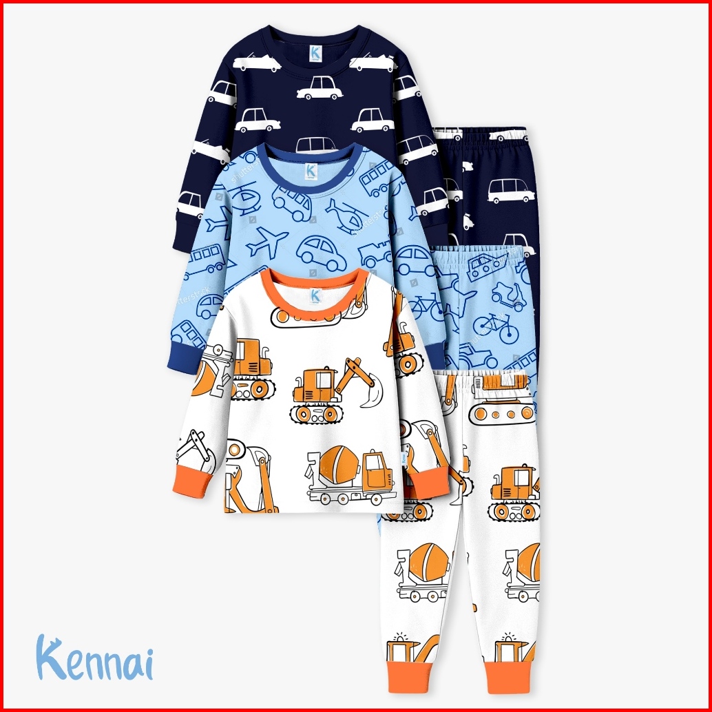 Kennai Kaos Setelan Lengan Panjang Oneset Anak Laki Laki Baju Anak Perempuan 1-12 Tahun Series Transport Lover