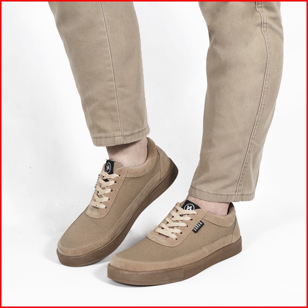 Sepatu Sneakers Pria V 59817 Brand Varka Sepatu Kets Kuliah Kerja Jalan Jalan Harga Murah Berkualitas - Krem