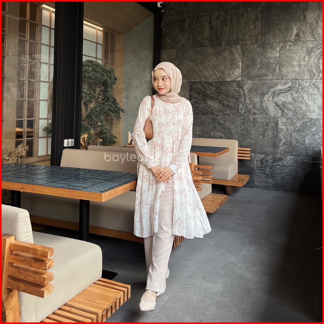 Bayleaf.id Rona Tunik Tunik Motif Wanita Tunik Rayon Wanita Lengan Panjang Big Size