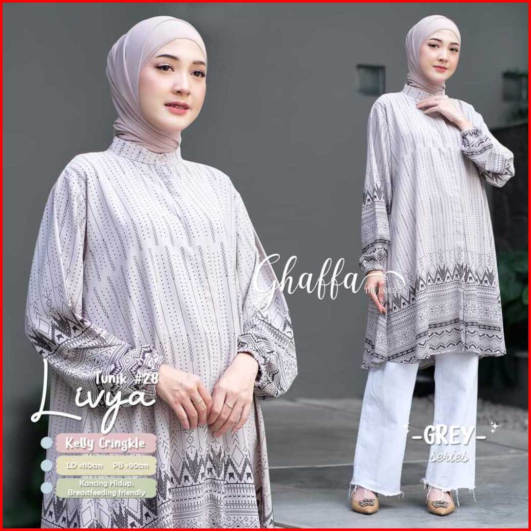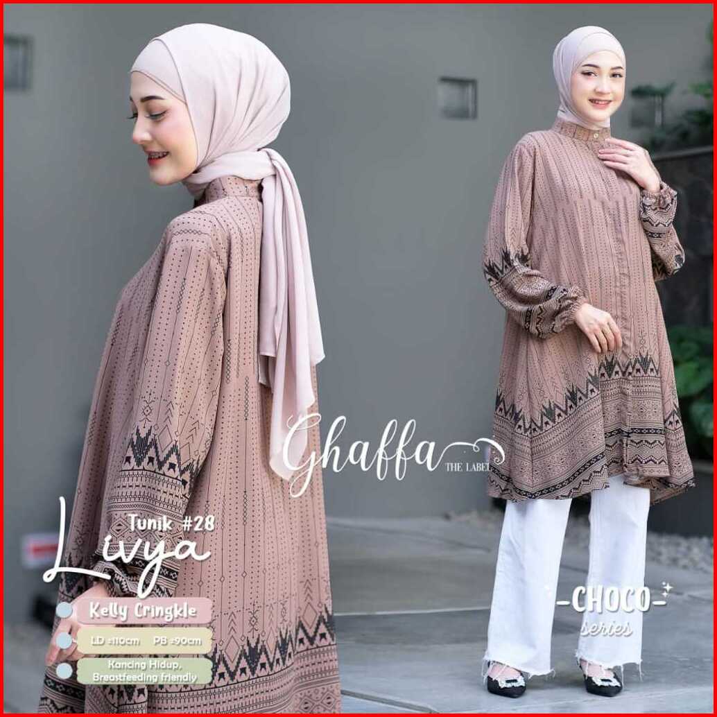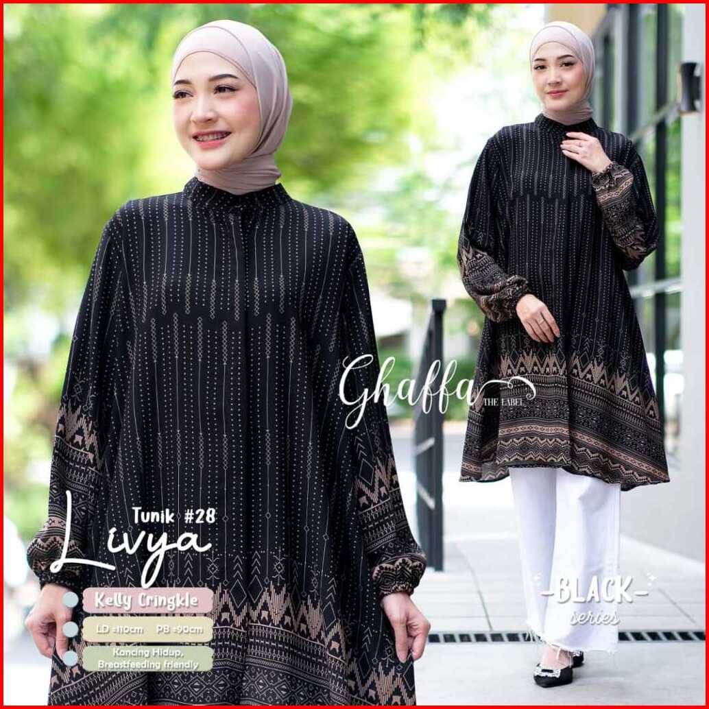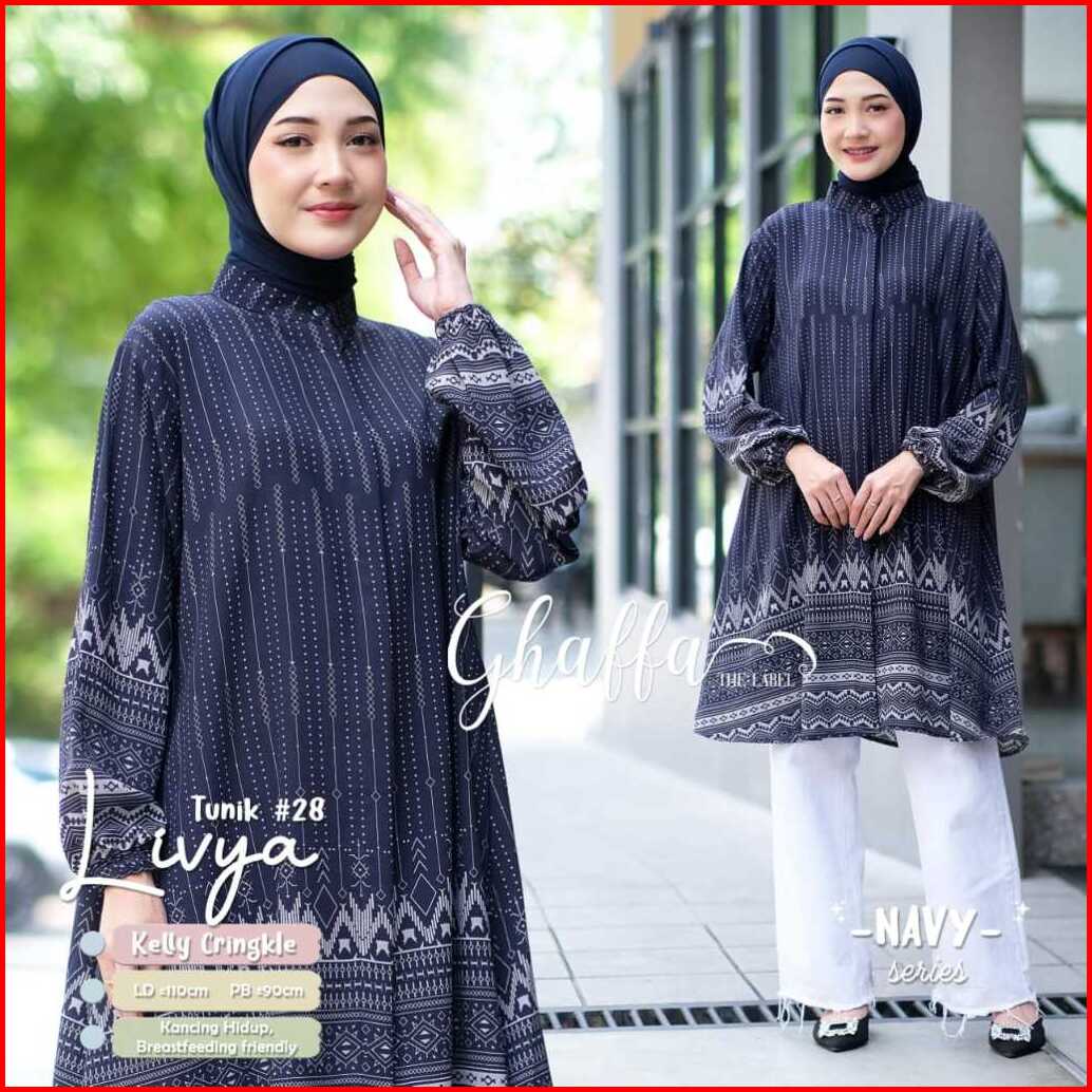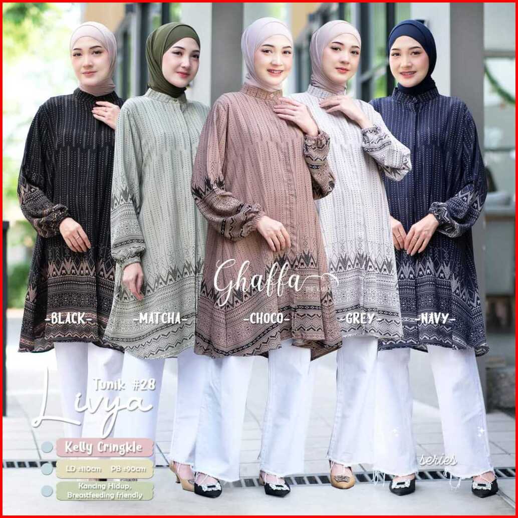 Livya Tunik 28 By Ghaffa Ld 110 Allsize Tunik Motif Etnik Bahan Kelly Crinkle Busui Friendly