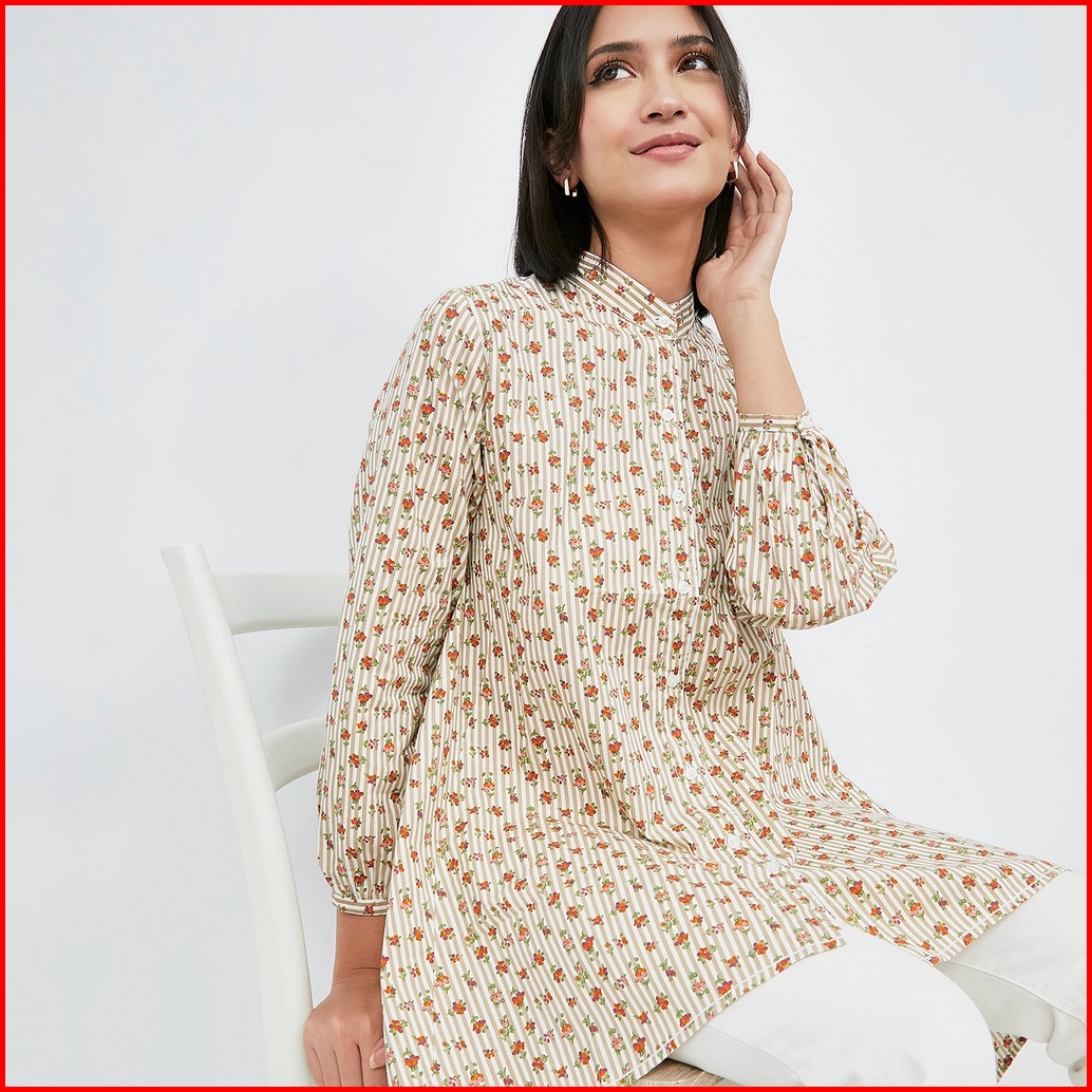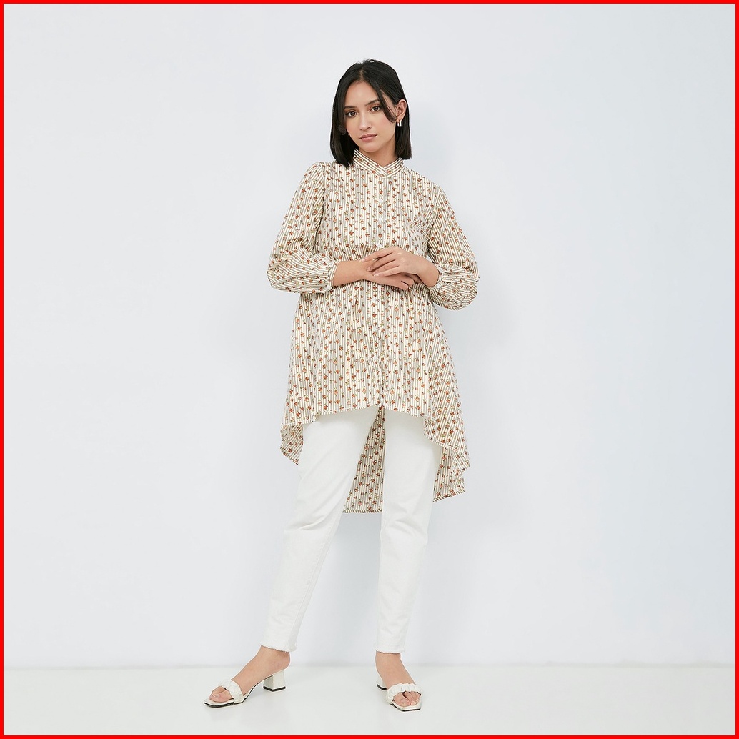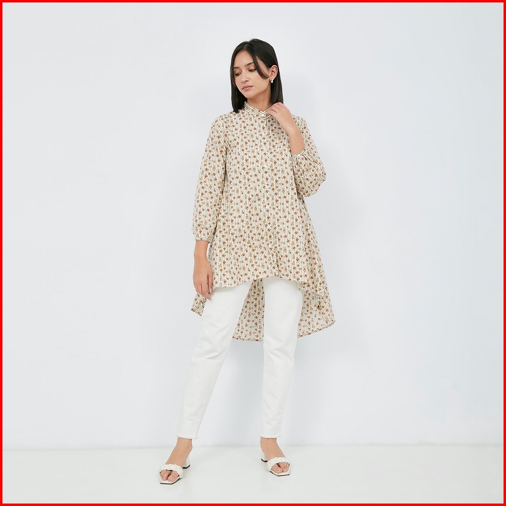 Point One Nirma Floral Tunik Khaki 394073 Atasan Wanita