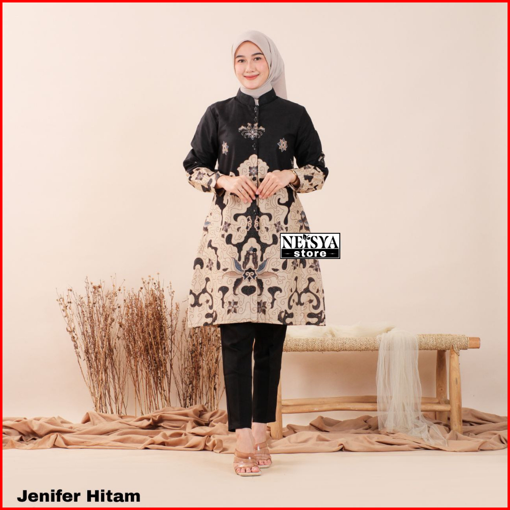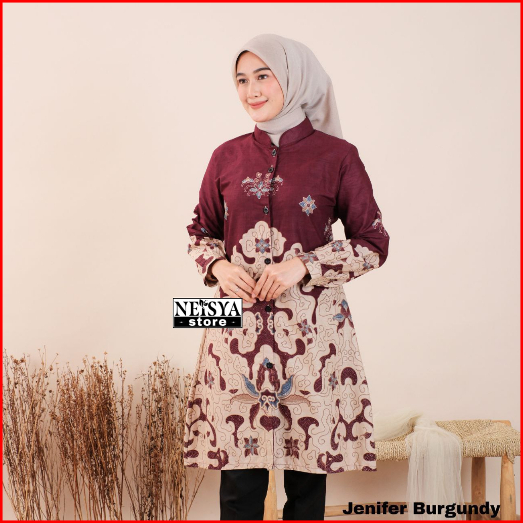 Terlaris Serut Genes Jelita Tunic Navbor Yelbor Whitbor Creambor Tunik Batik Modern Hrb030