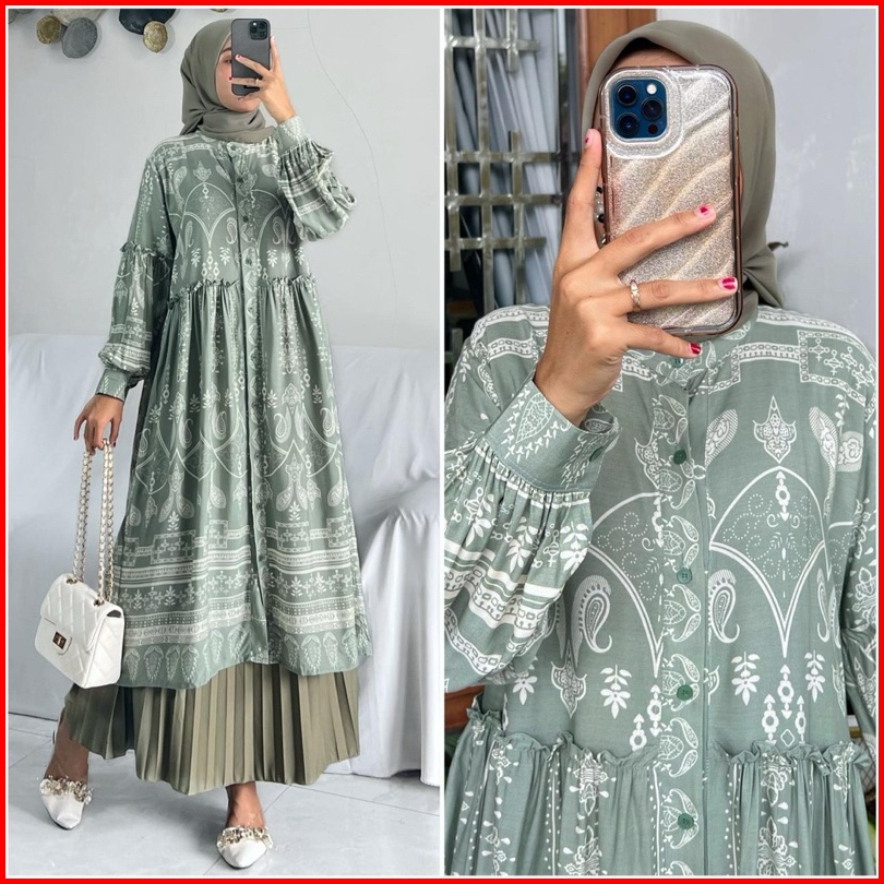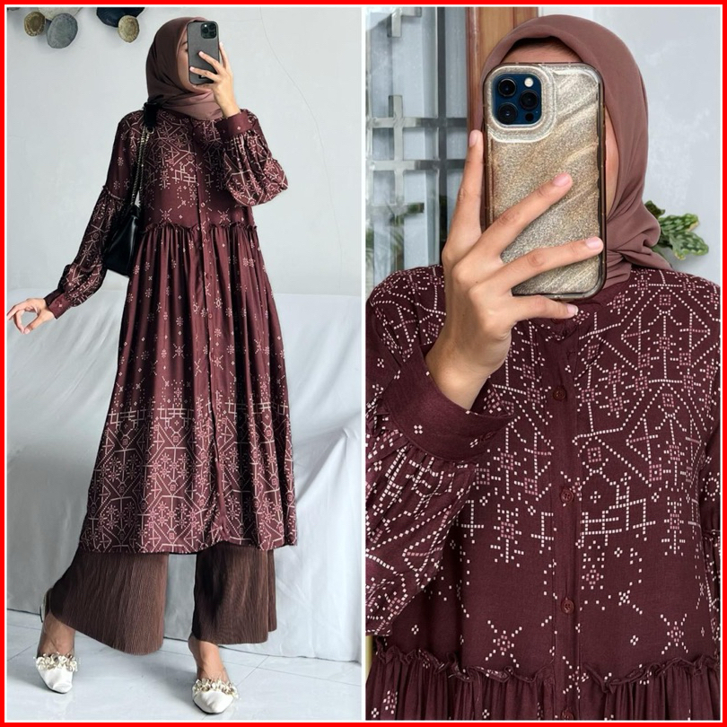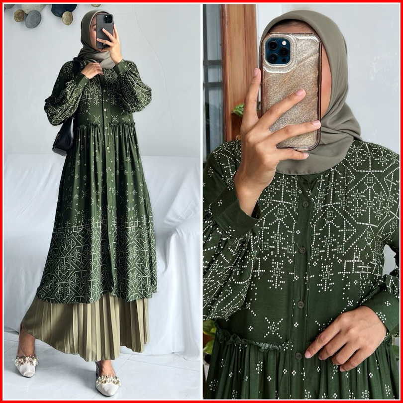 Helena Tunik By Zalfa Outfit Tunik Rayon Motif Premium