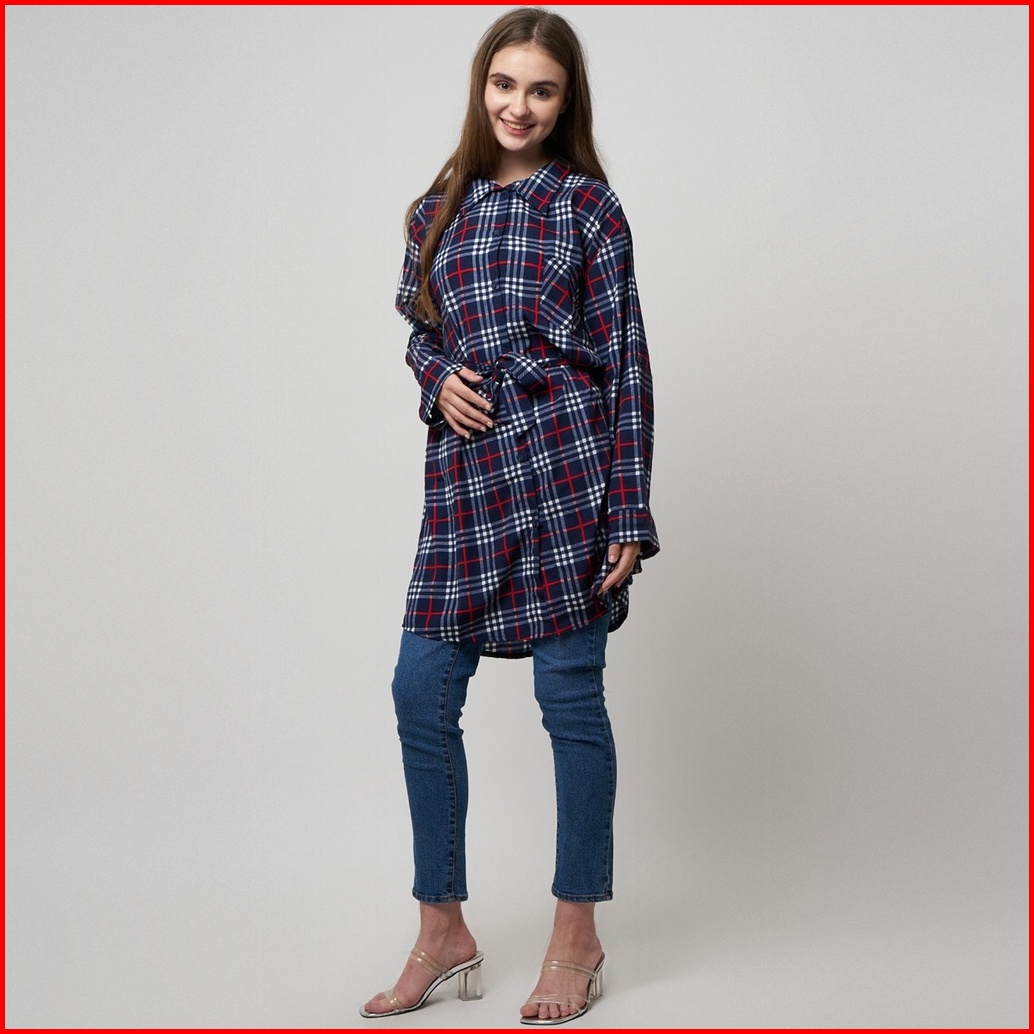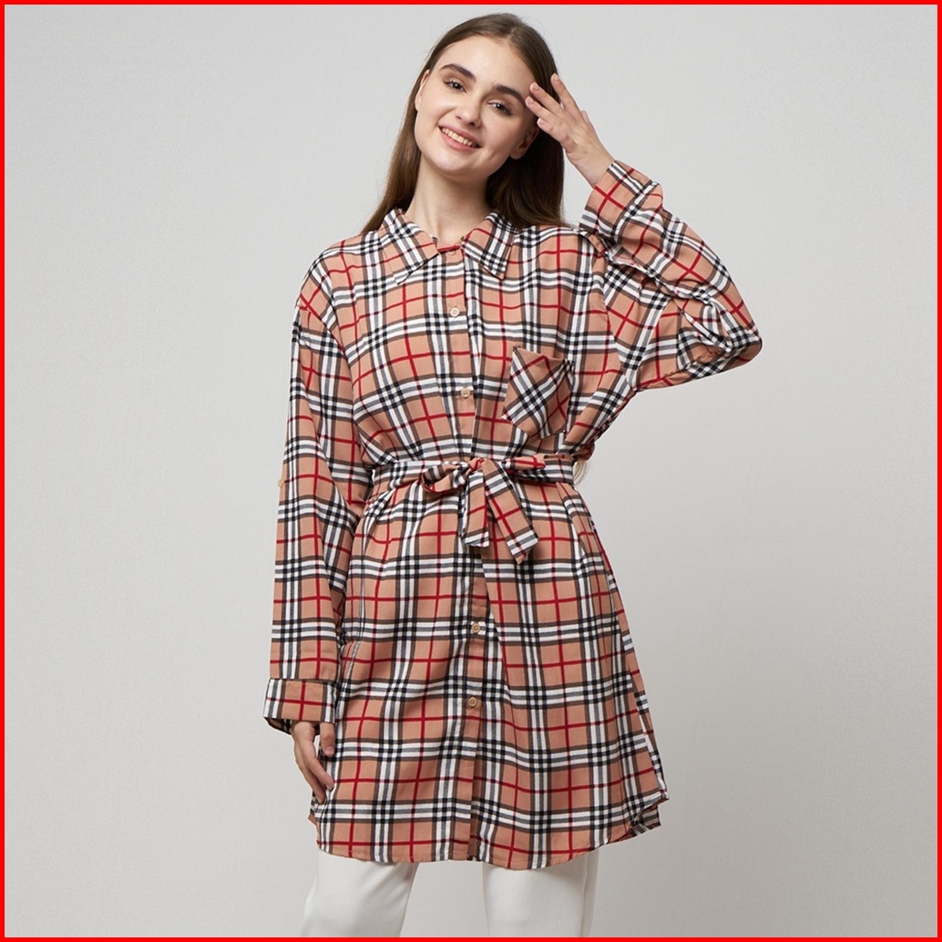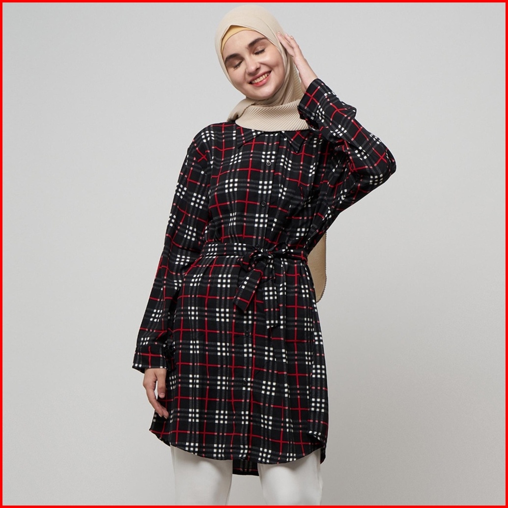 Monellina 03649 Tunik Oversize Wanita Lengan Panjang Kotak