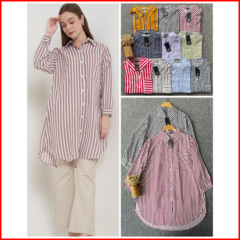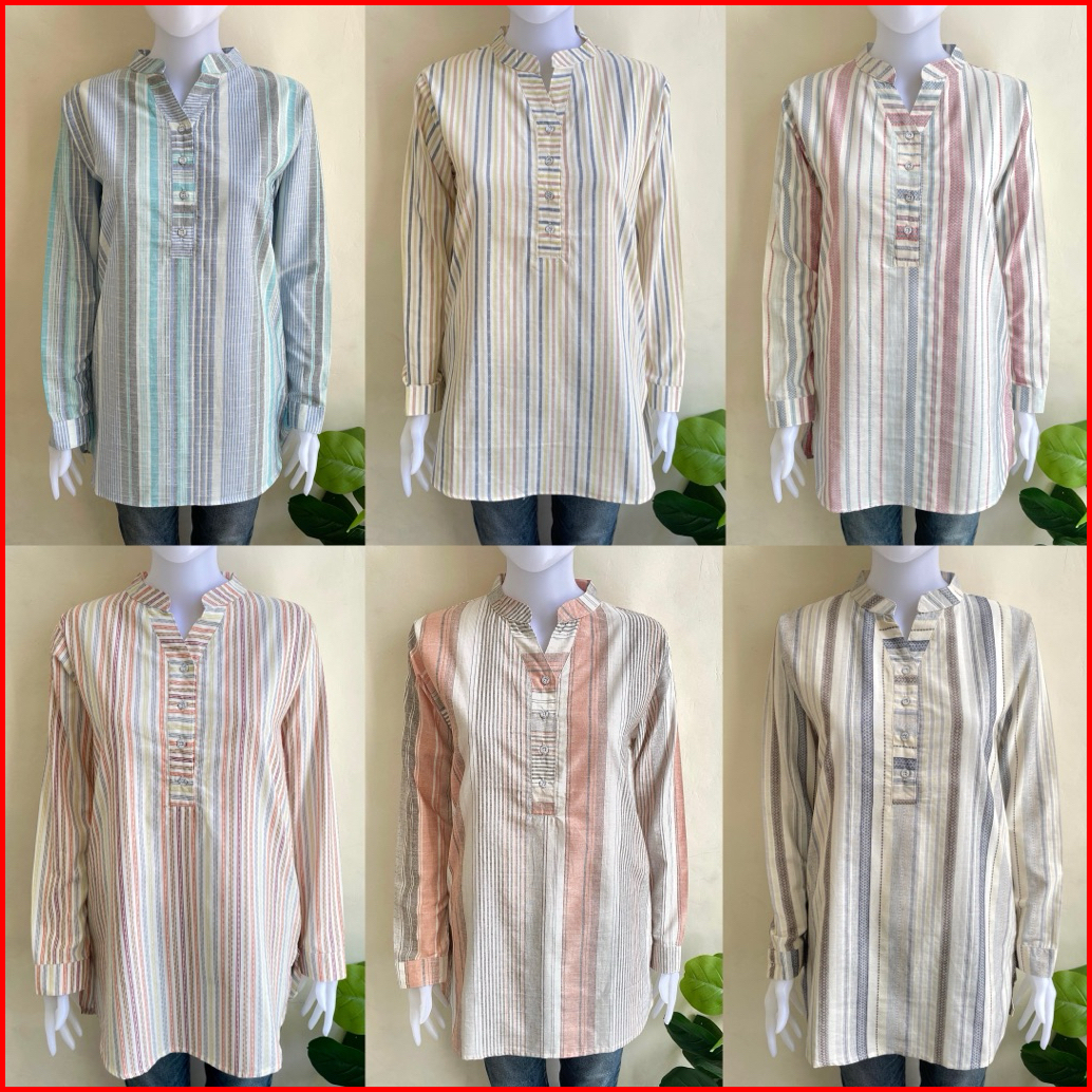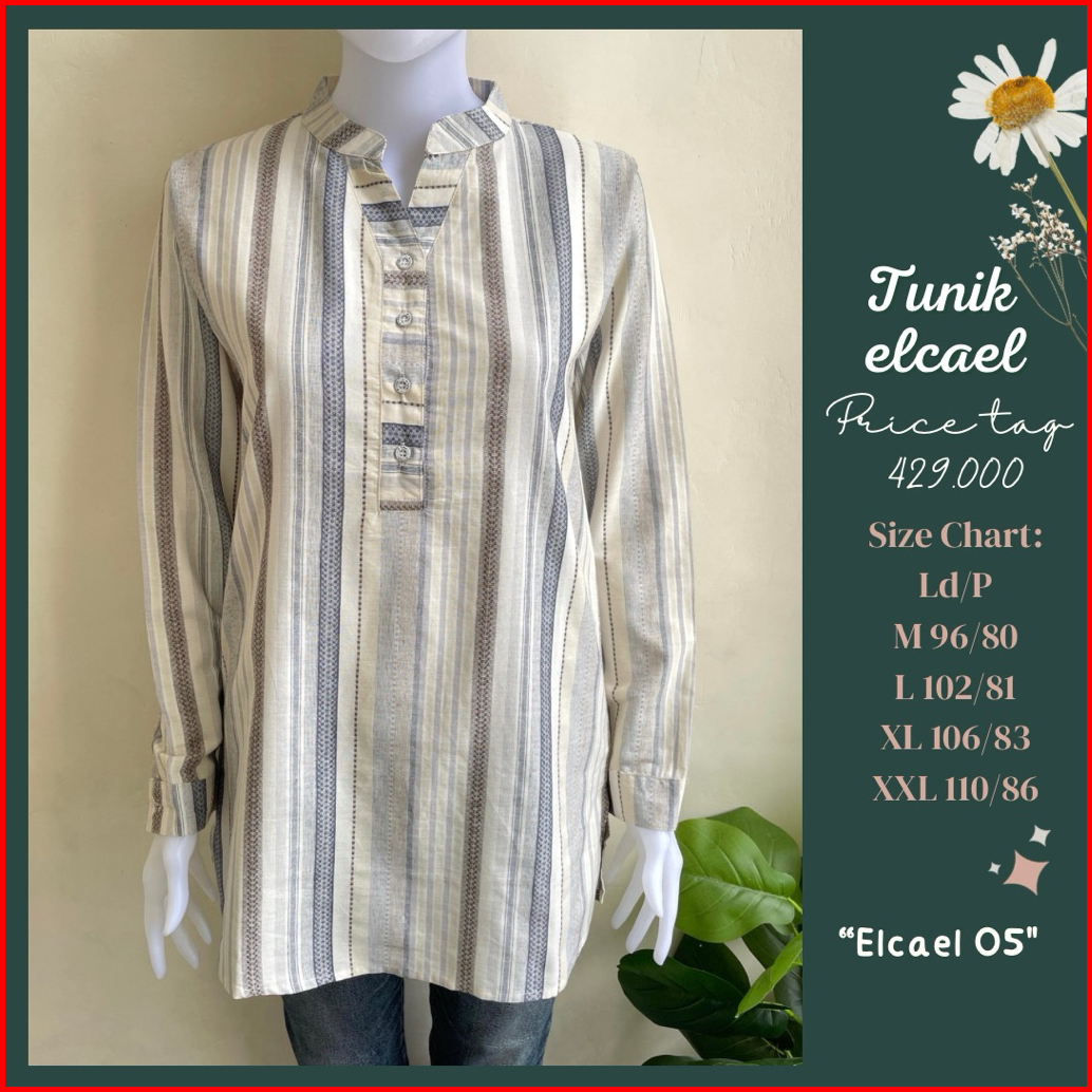 Tunik Elcael Bahan Katun Triset Tunik Salur Tunik Kancing Tunik Kerja Tunik Rayon Busui