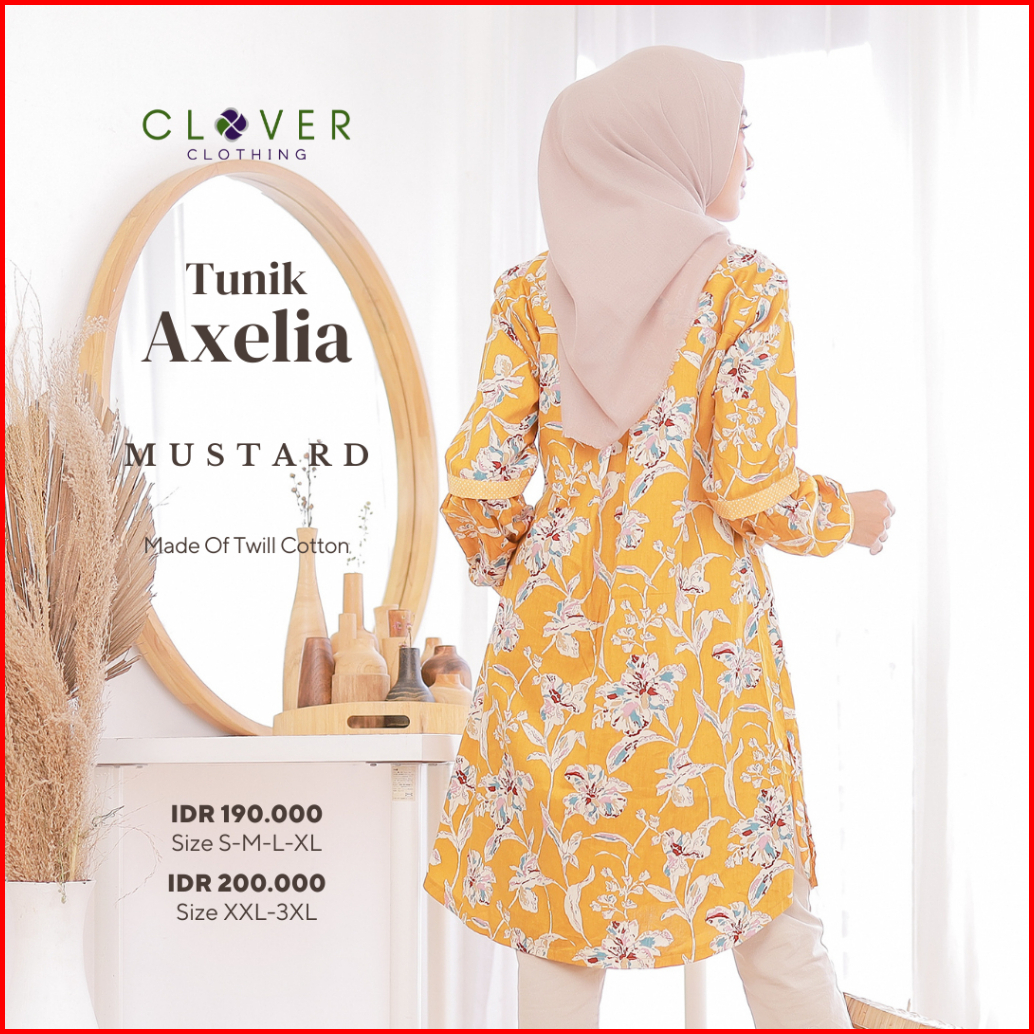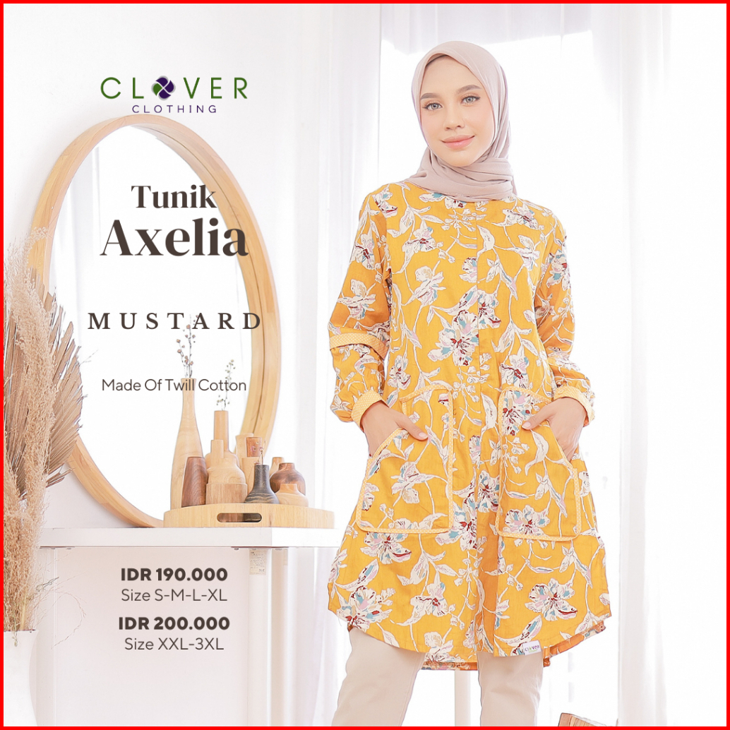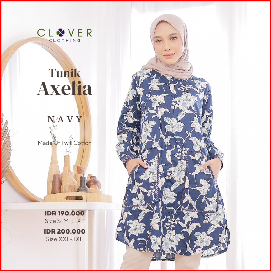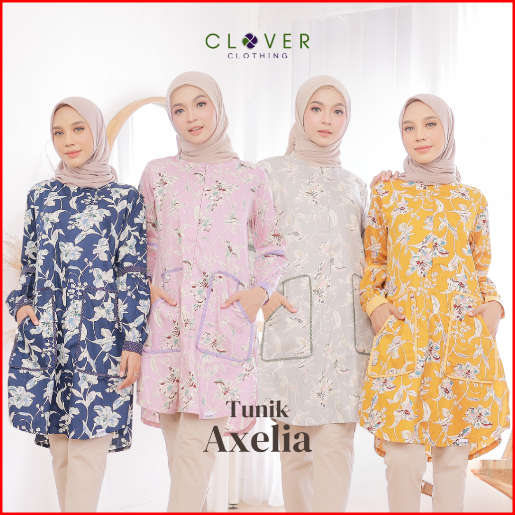 Tunik Axelia Clover Clothing Tunic Wanita Kekinian Terbaru Baju Atasan Wanita Bahan Katun Twill Premium
