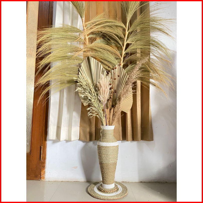 Paket Jumbo Bunga Kering Dan Pot Guci Tinggi 50cm Daun Palem Kering Dekorasi Rustic Dekorasi Rumah