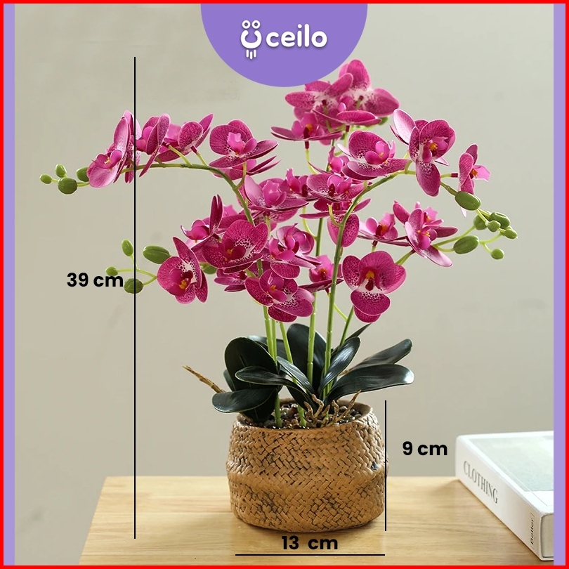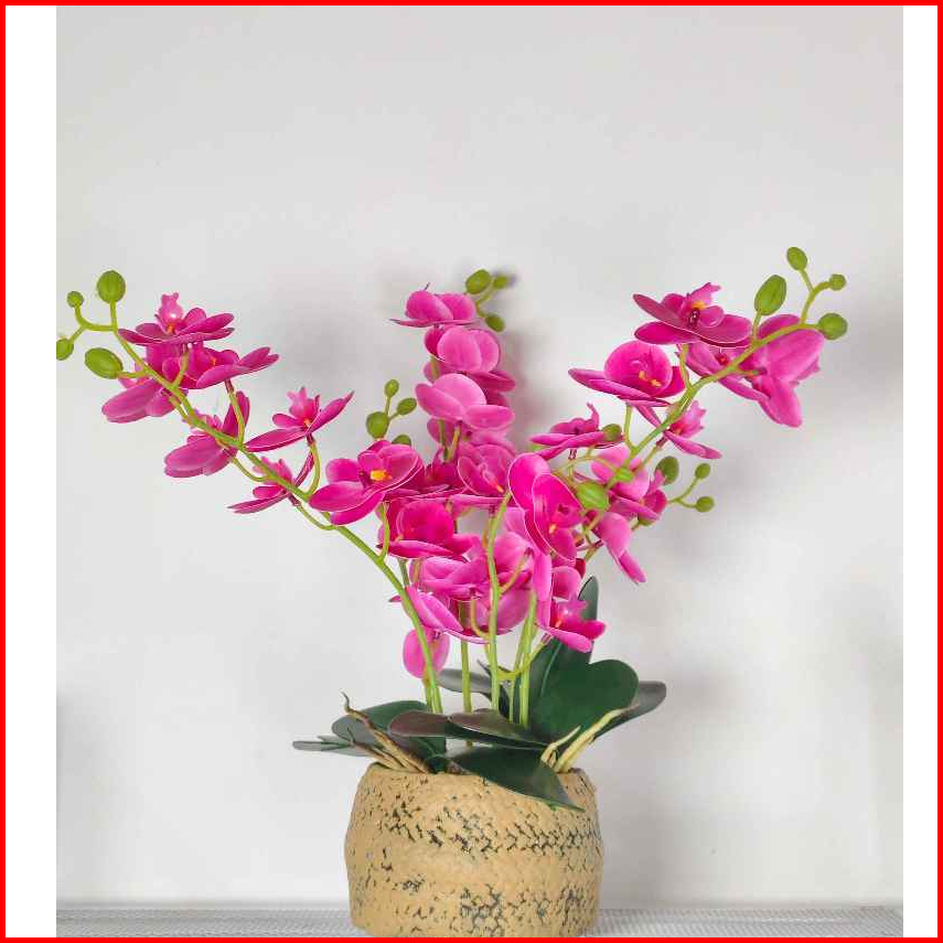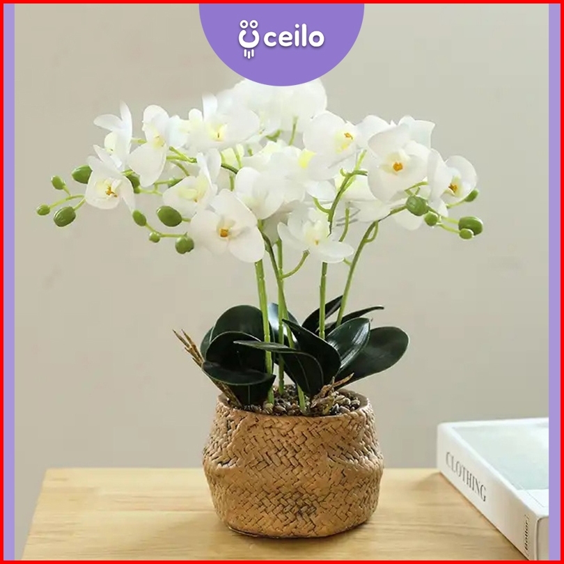 Ceilo Bunga Anggrek Latex Imitasi 6 Tangkai Anggrek 1 Set Pot Bunga Anggrek Latex Pot Semen Real Touch Artificial Bunga