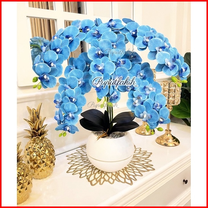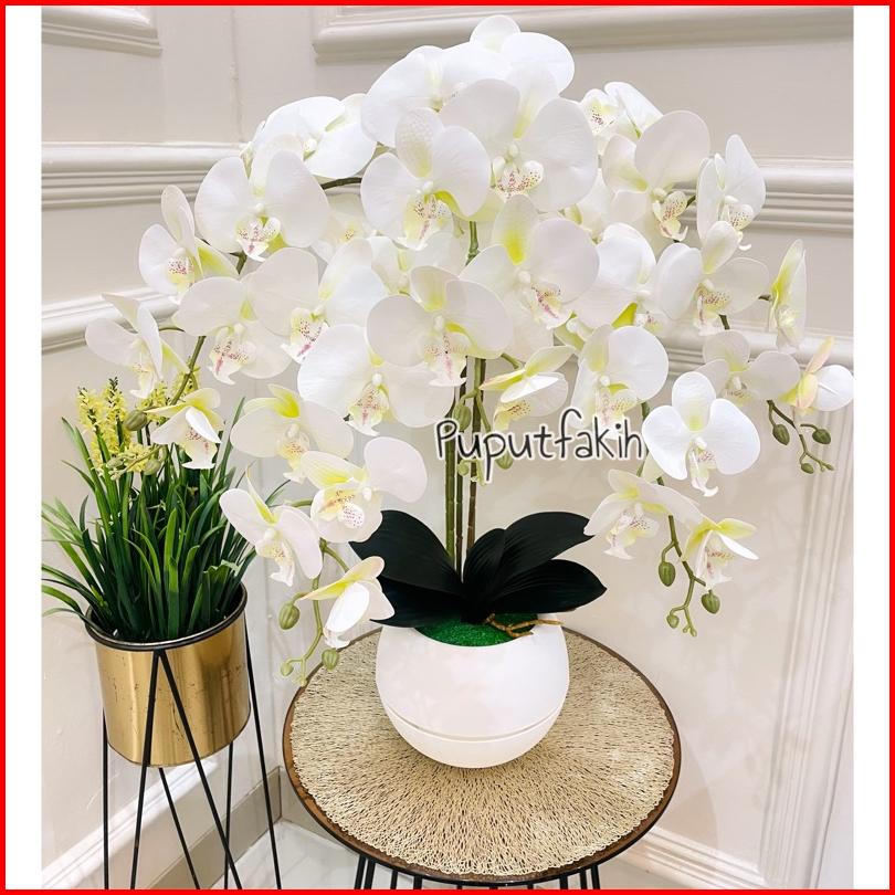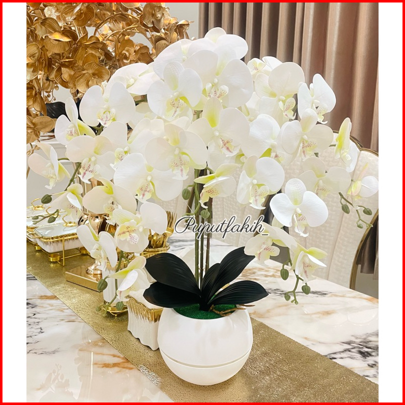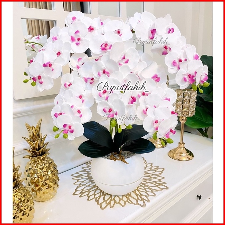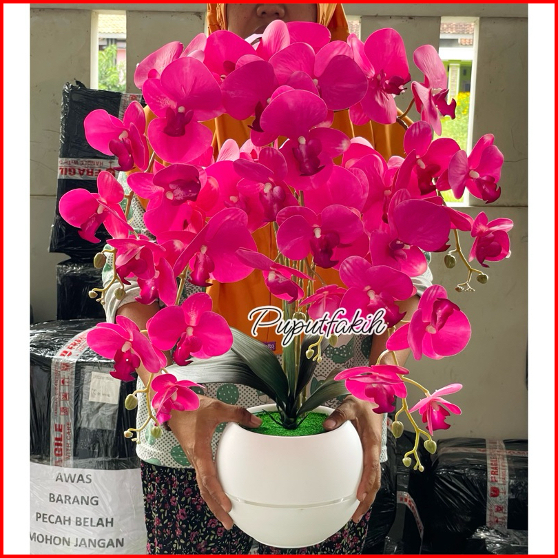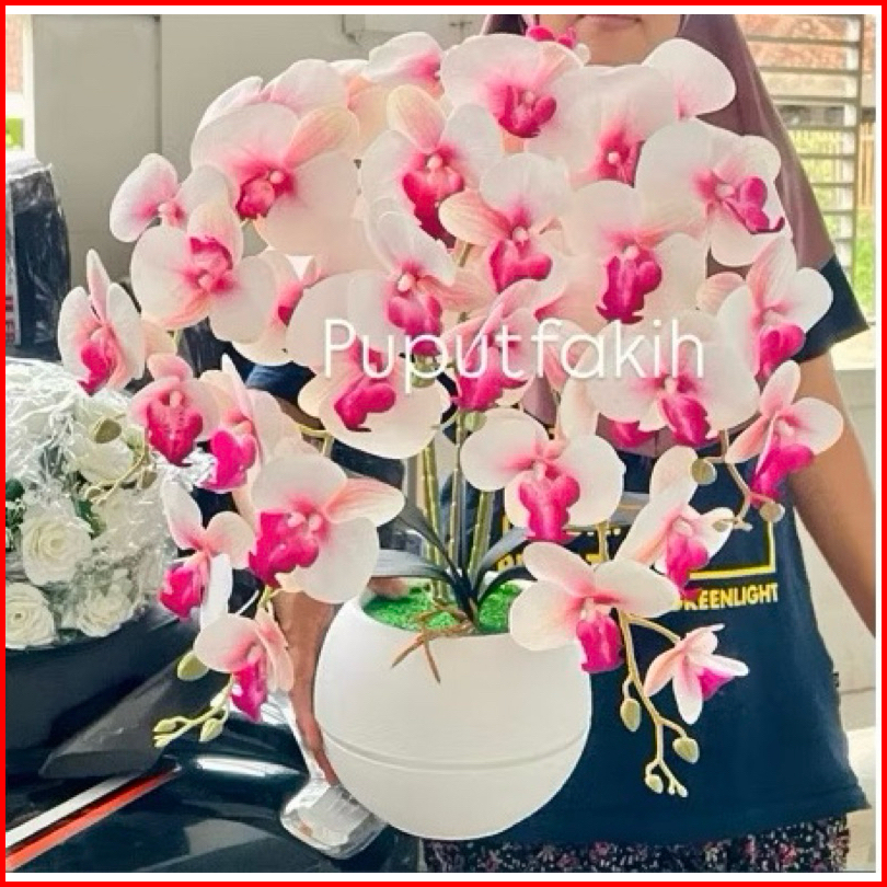Bunga Anggrek Latex Super Rimbun 5 Tangkai Dengan Pot Bola