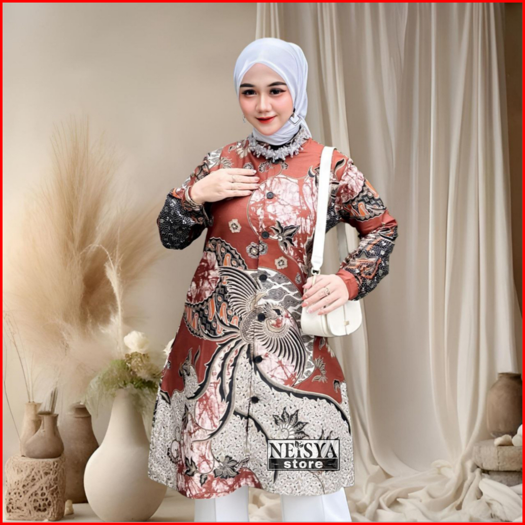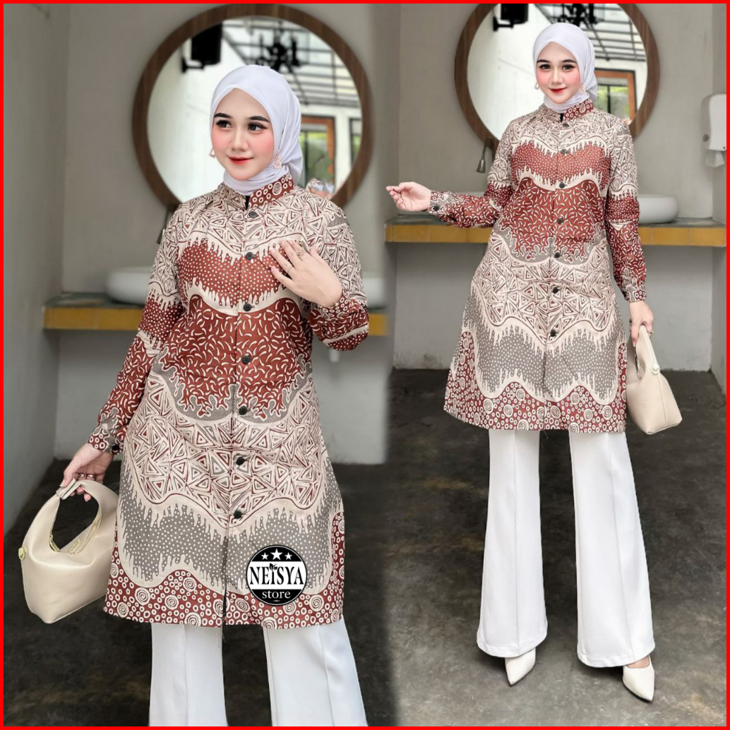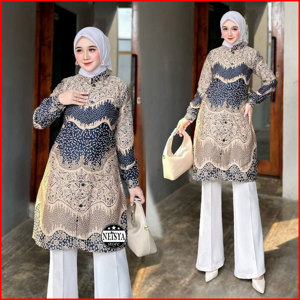 Terlaris Serut Genes Jelita Tunic Navbor Yelbor Whitbor Creambor Tunik Batik Modern Hrb030