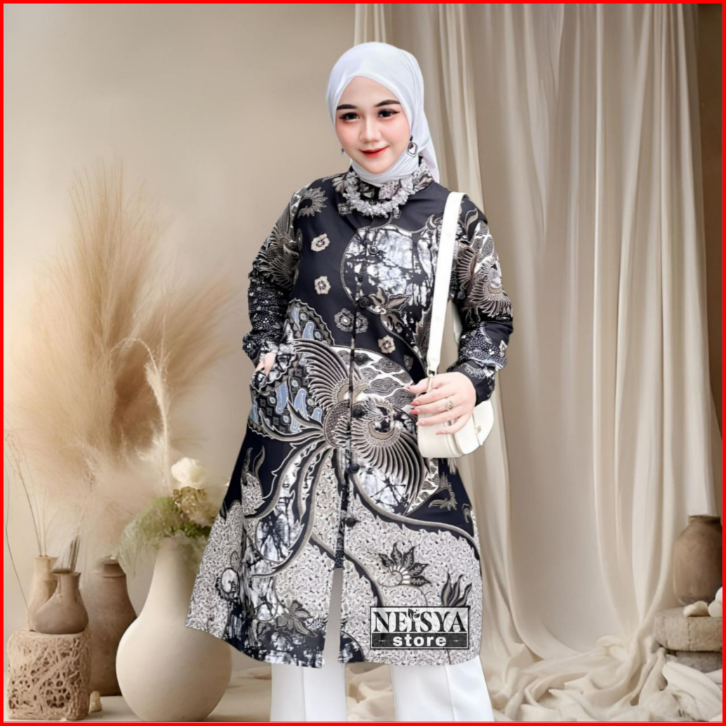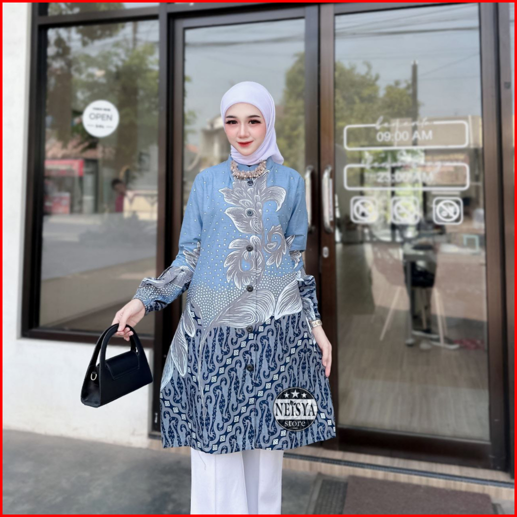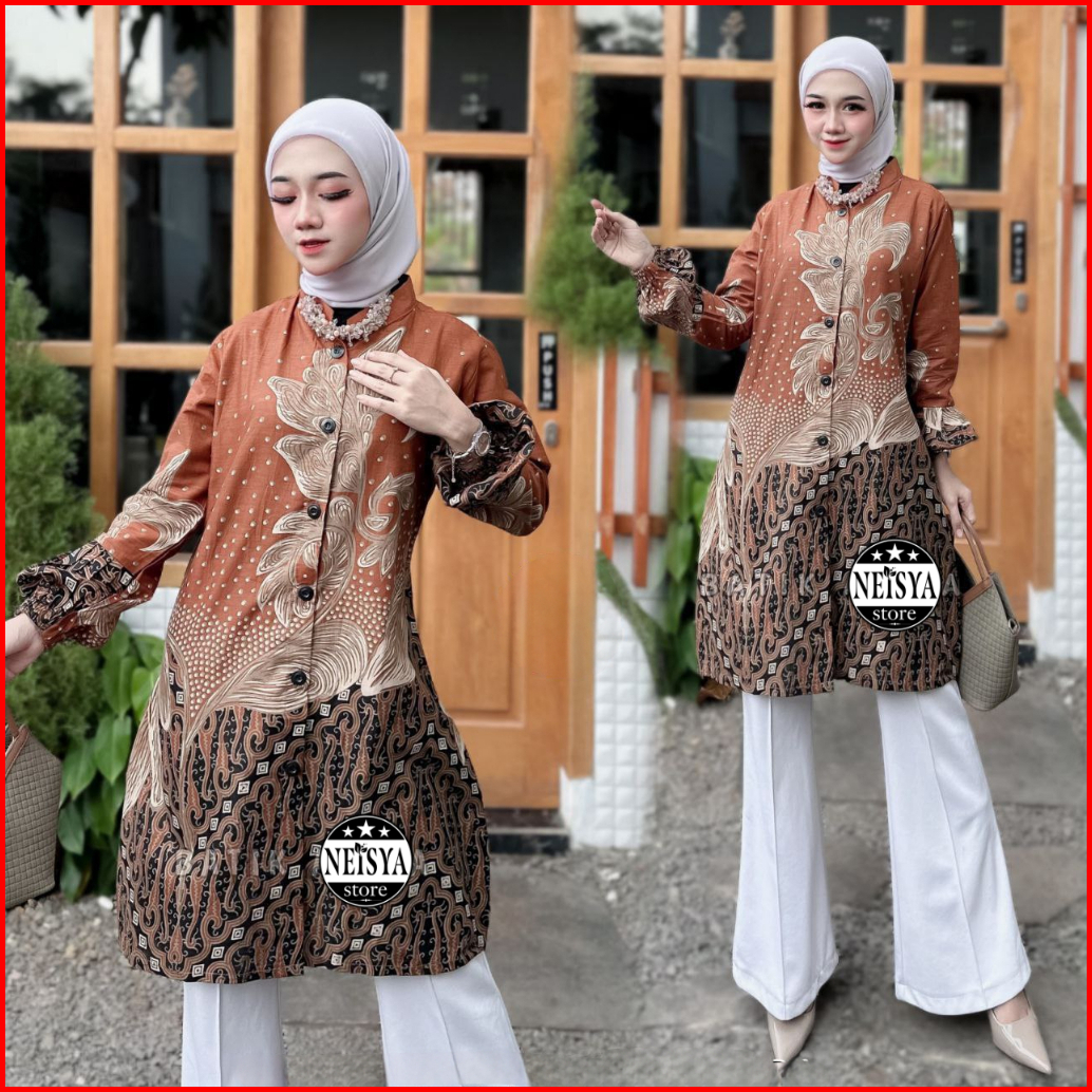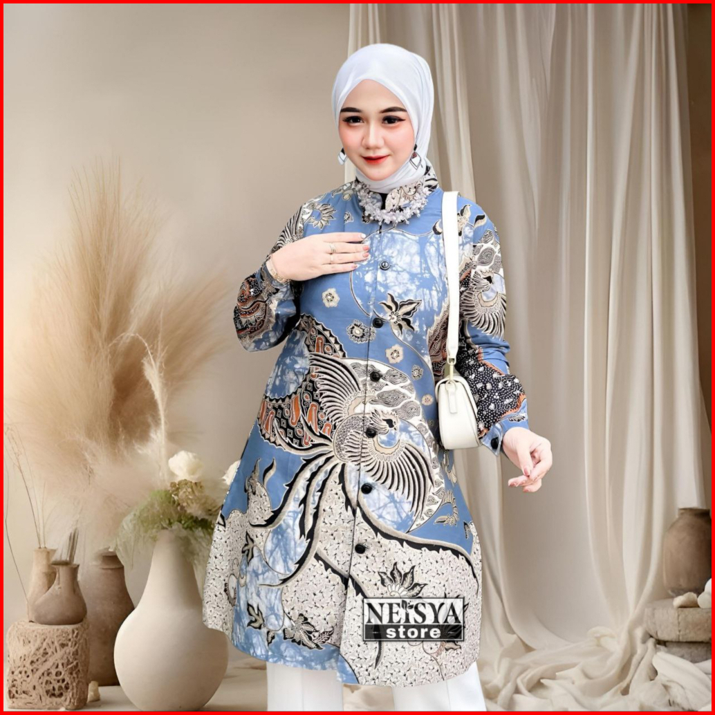 Terlaris Serut Genes Jelita Tunic Navbor Yelbor Whitbor Creambor Tunik Batik Modern Hrb030