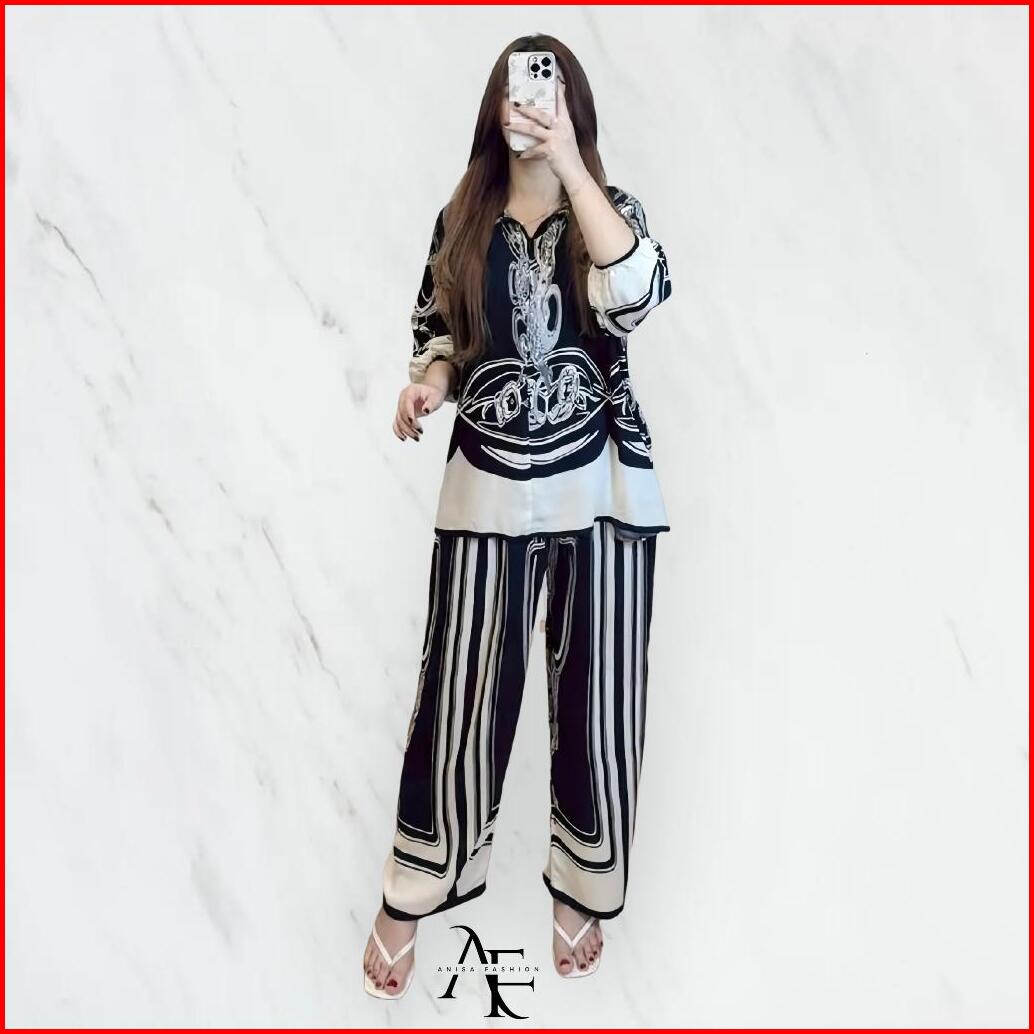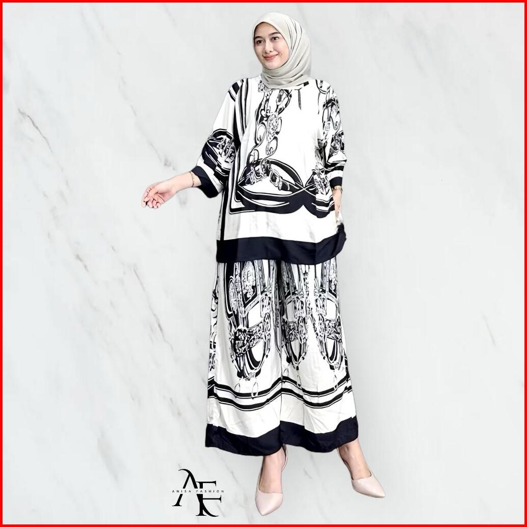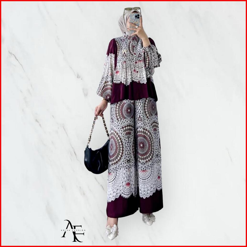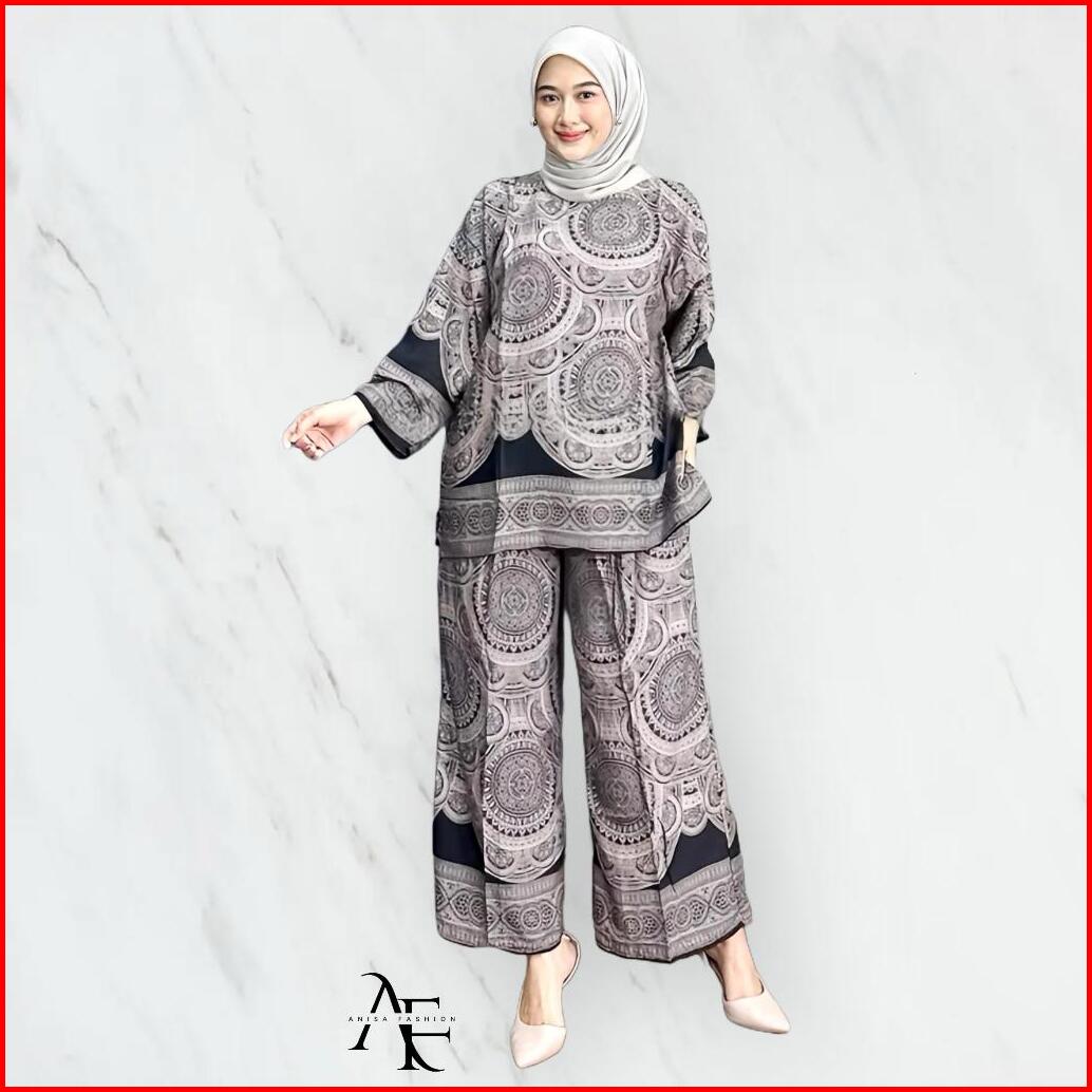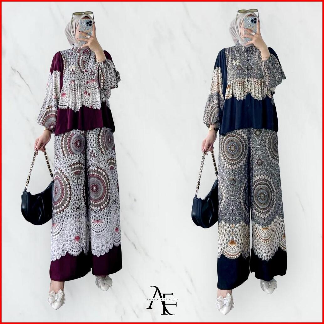 Fatema Set - One Set Fatema Tunik Rayon Motif Bunga - Setelan Tunik Bunga - One Set Wanita Terbaru