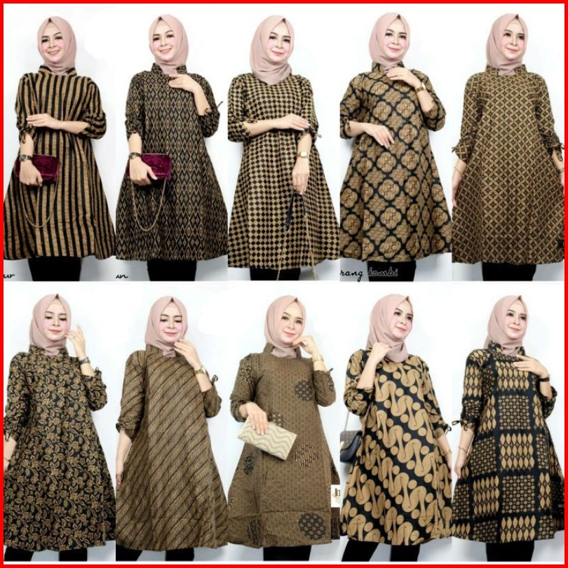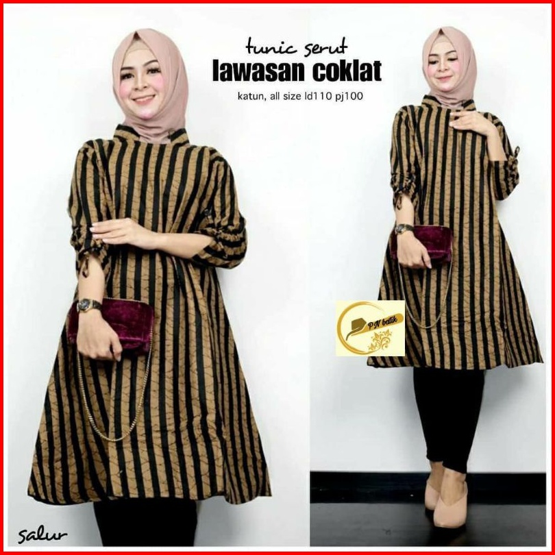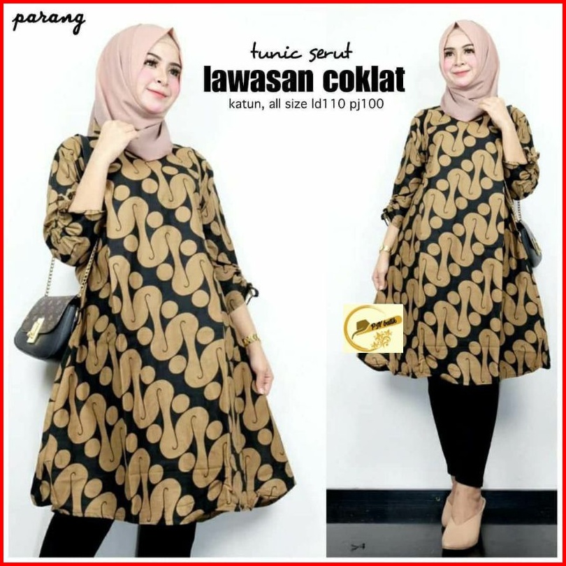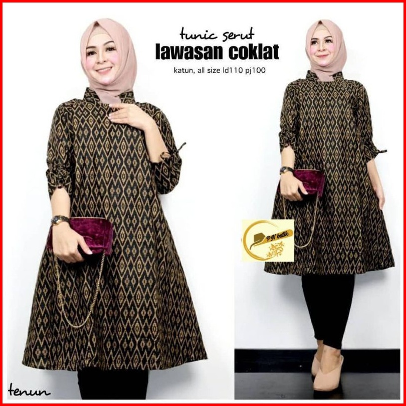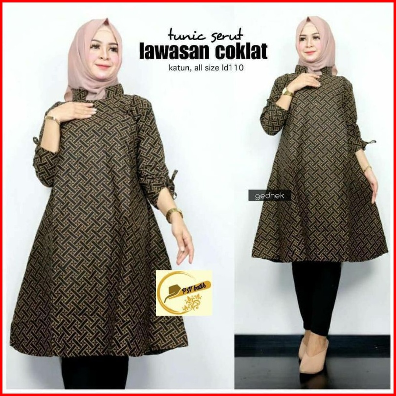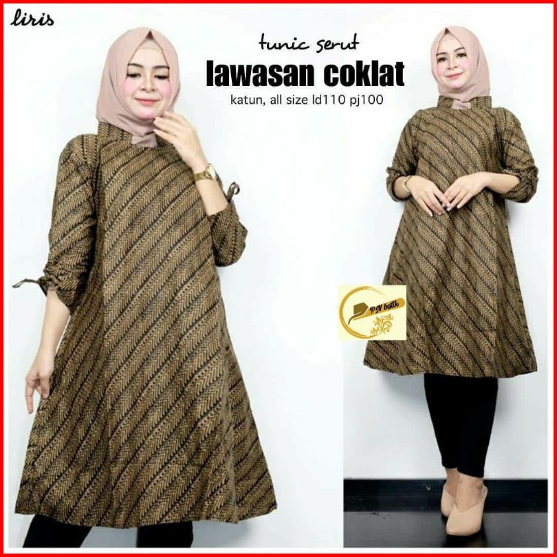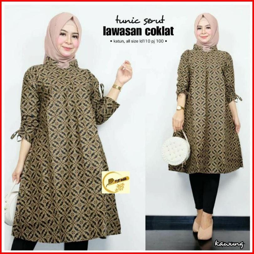 Tunik Batik Lawasan Coklat Soloan Seragam Kantoran Baju Cewek Varian Motif Trendy Kekinian