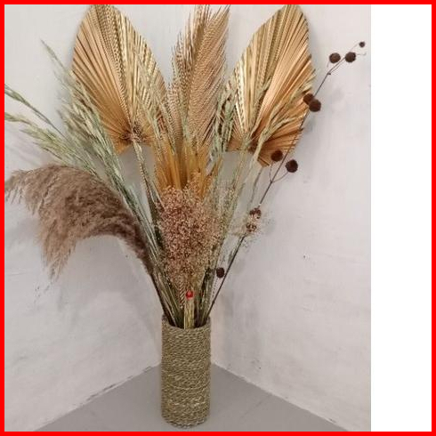 Terbaru Lr 033 Paket Bunga Kering Pot Mendong Daun Palem Kering Pampas Bunga Rustic