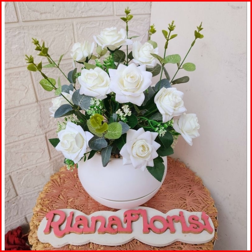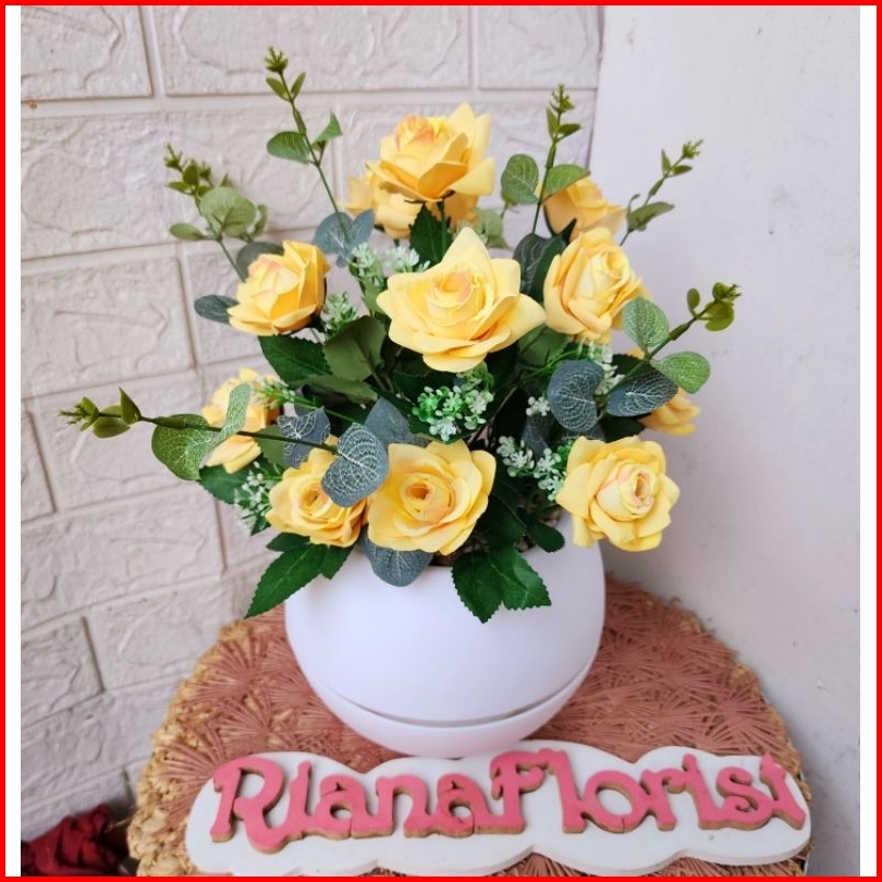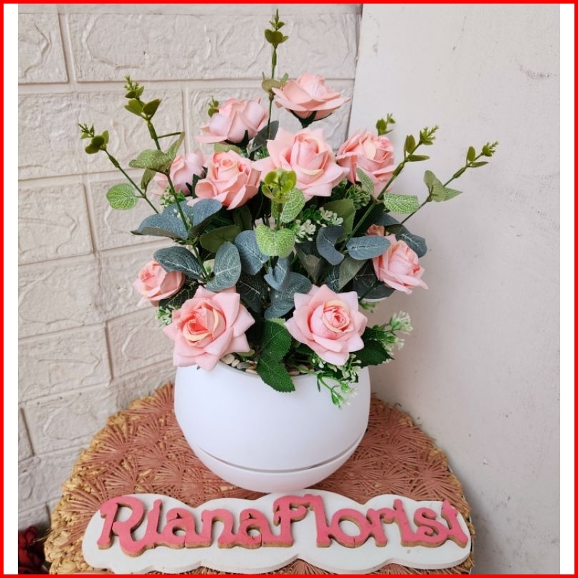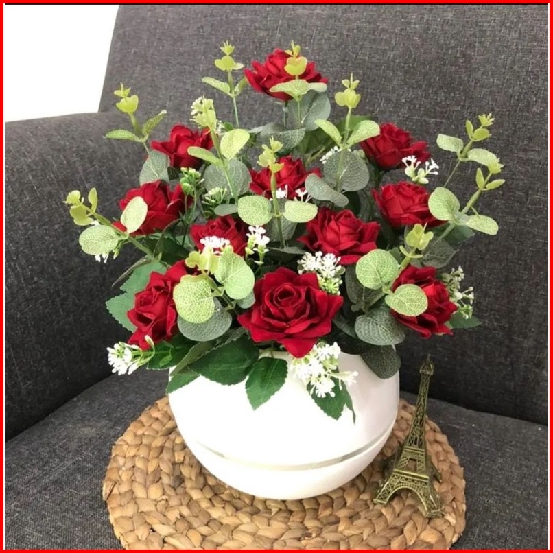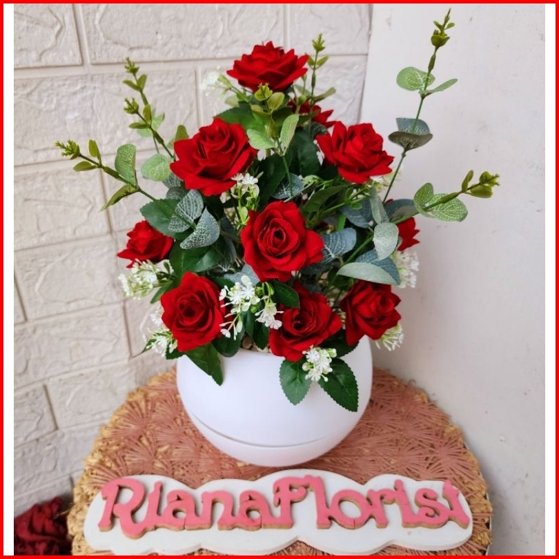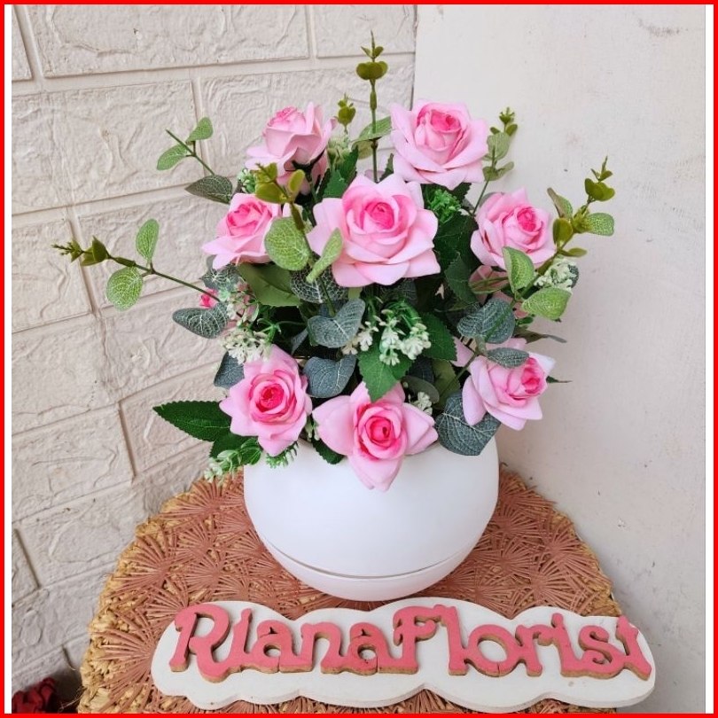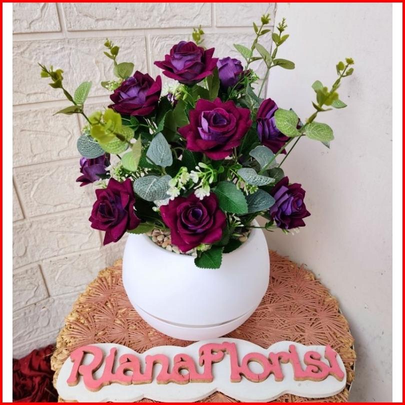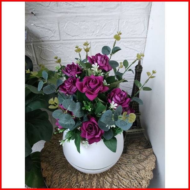 Mawar Bludru Kombinasi Daun Dolar Pot Bola Besar