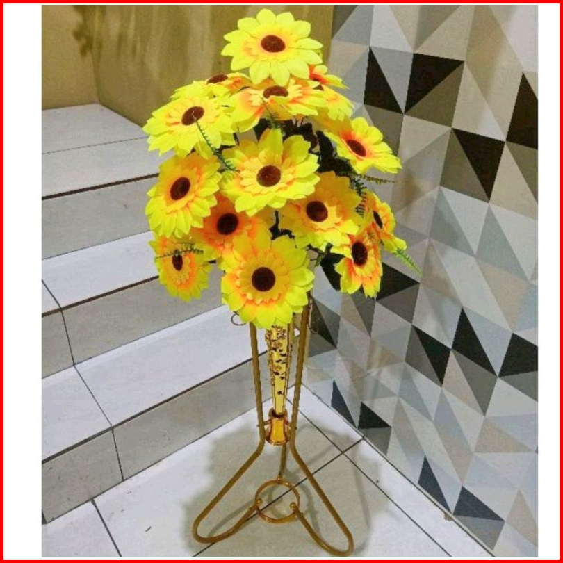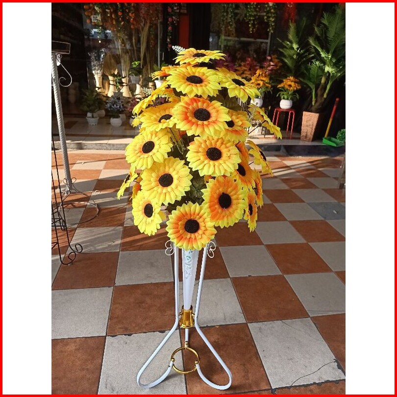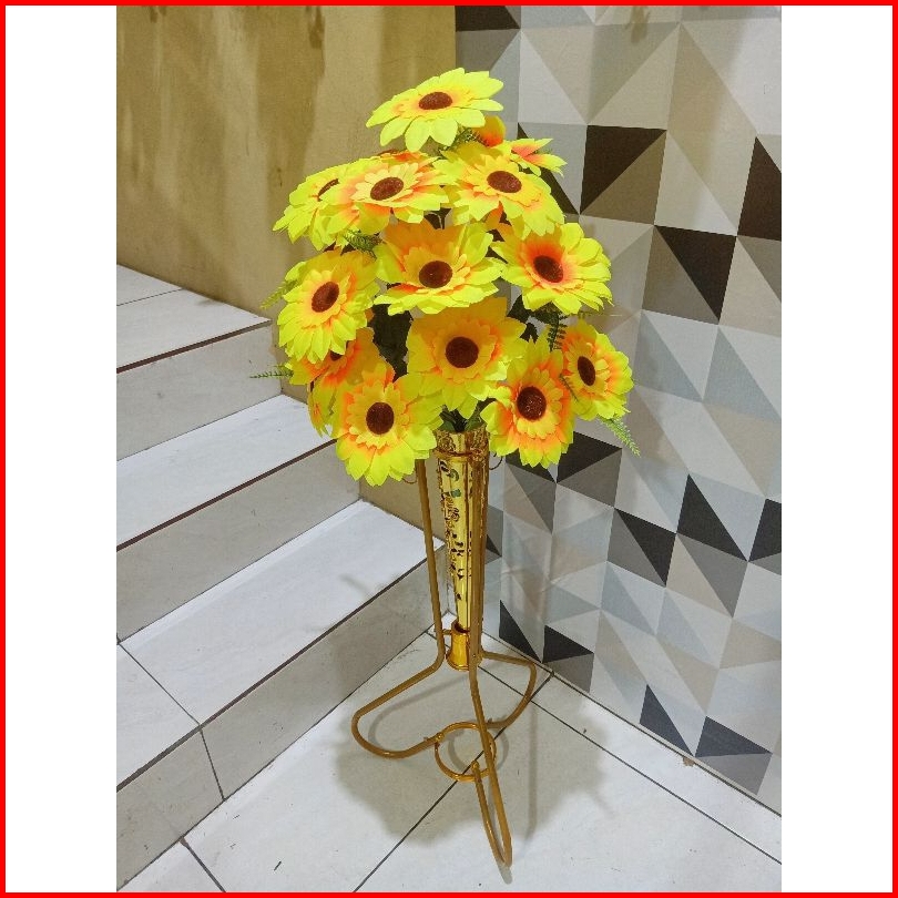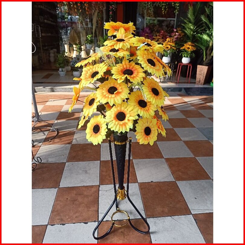 Rangkaian Bunga Matahari Artificial 36 Kuntum Dengan Standing Besi Vas Corong