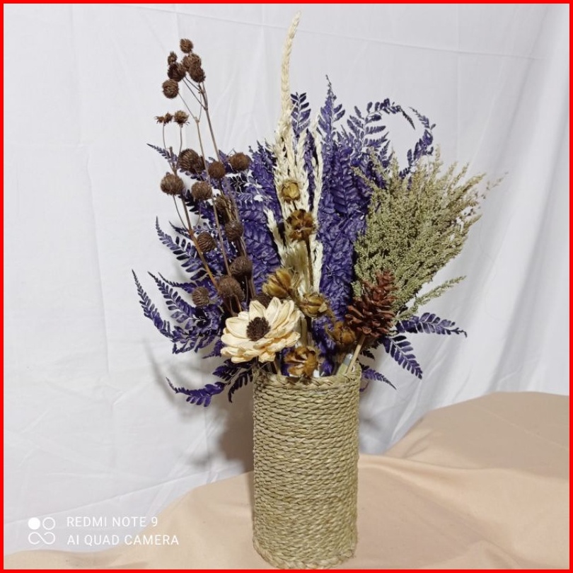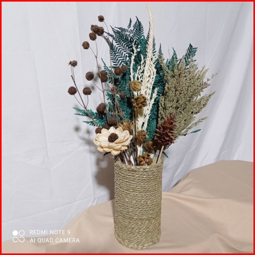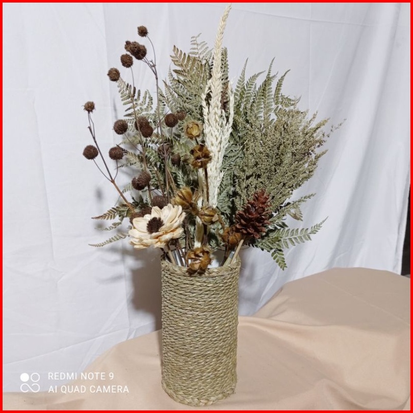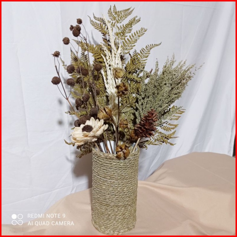 Paket Lengkap Bunga Kering Vas Pot Mendong