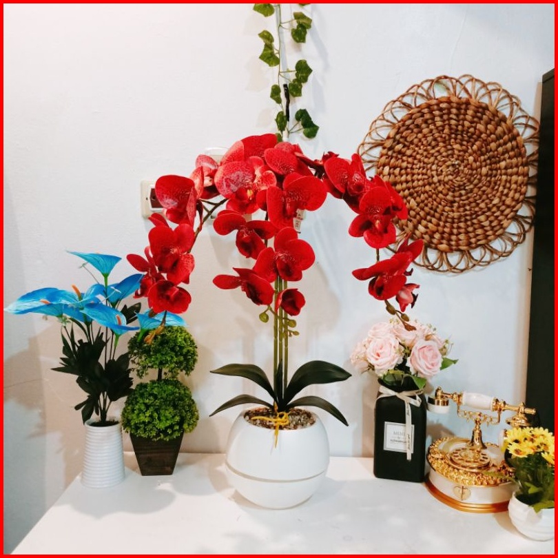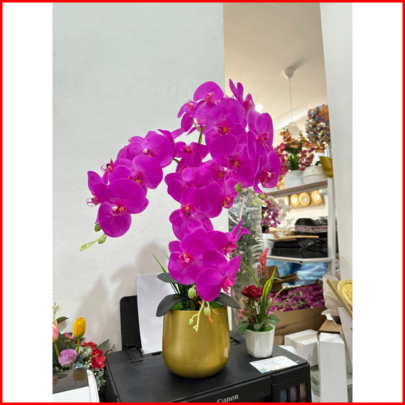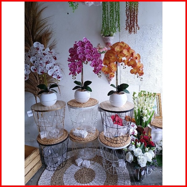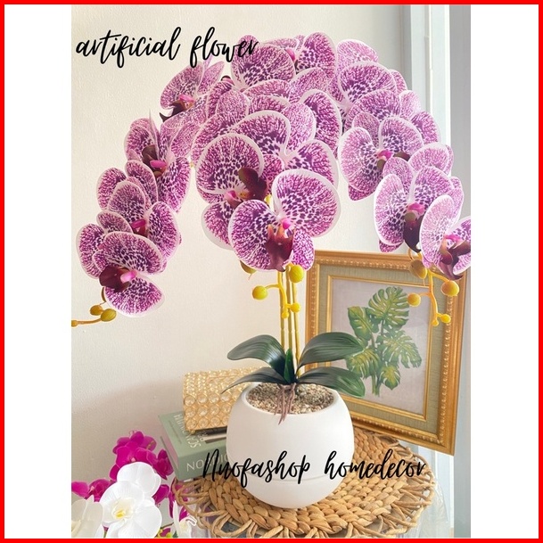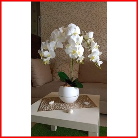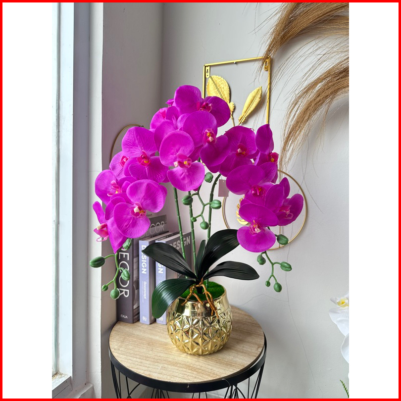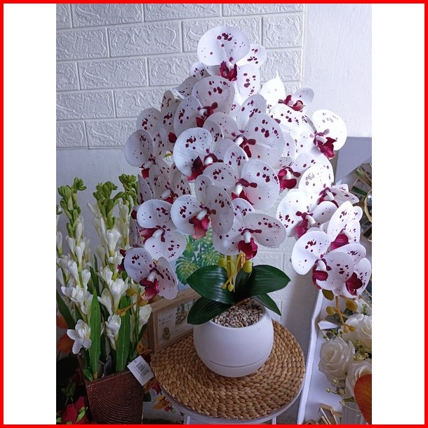 Bunga Anggrek Latex Cabang 3 Vas Bola Jumbo