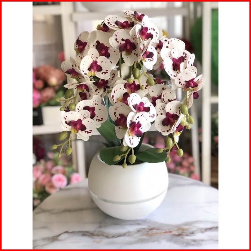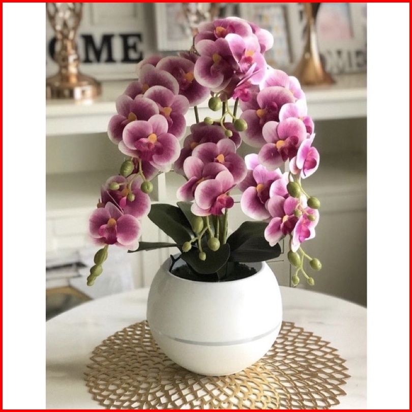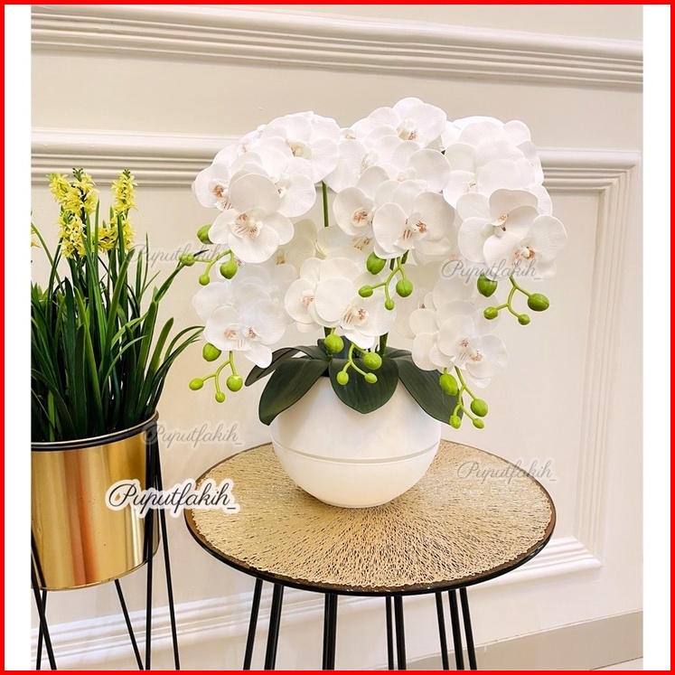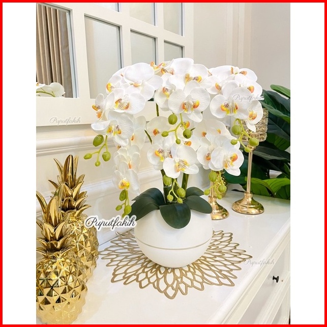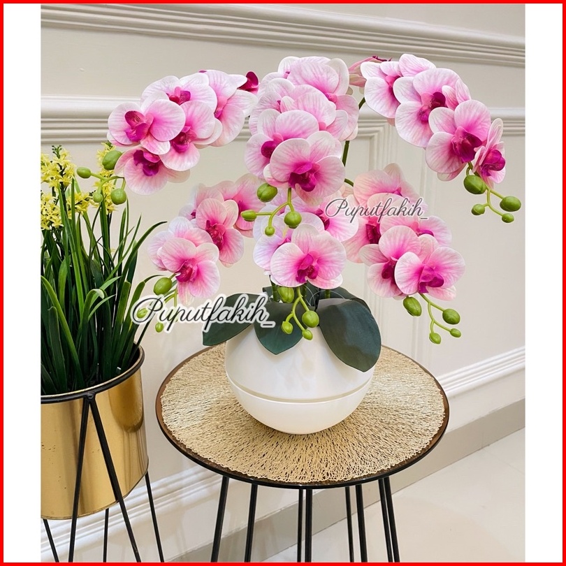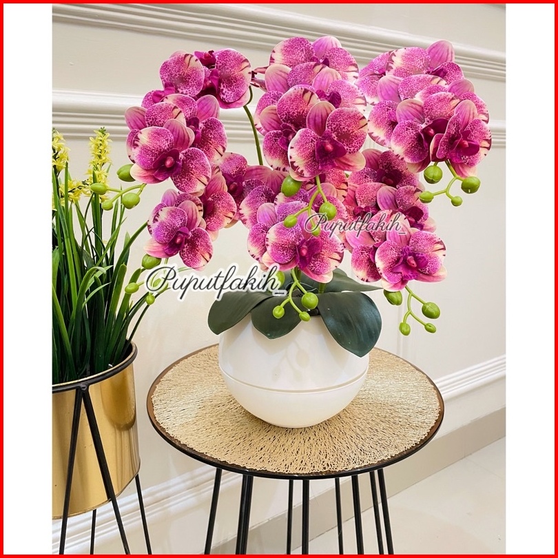 Bunga Rangkaian Anggrek Latex Cabang 8 Vas Bola Murah