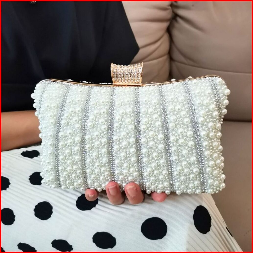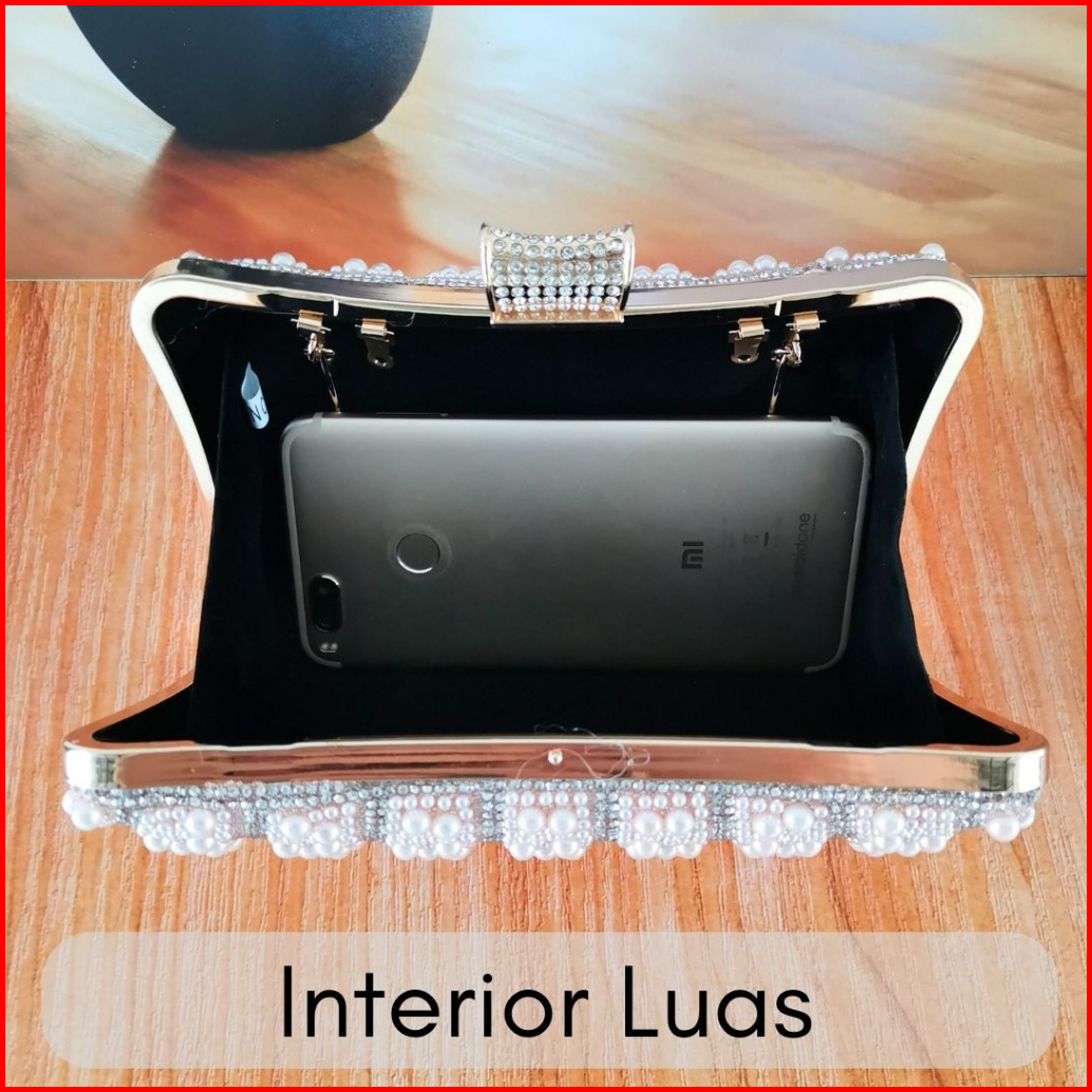 Tas Kondangan Pesta Wanita Clutch Import Premium Terbaru Mewah Elegan Kristal Mutiara Wisuda 88640-2