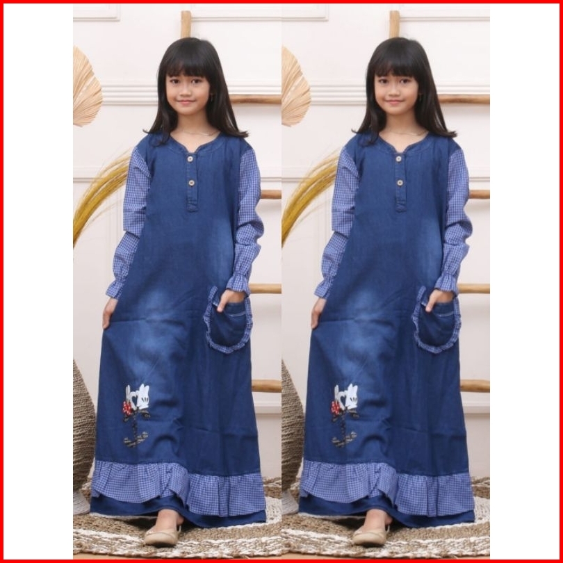 Jeans Washed Premium Anak Mix Katun - Gamis Jeans Anak Dres Anak Gamis Jeans By Fais Collection