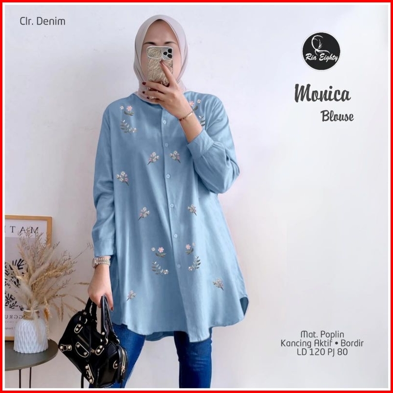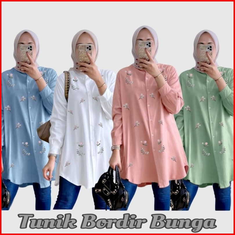 Tunik Katun Motif Bunga Wanita Jumbo Busui. Atasan Lengan Panjang Mewah Tebal Adem Monica Tunic Jumbo