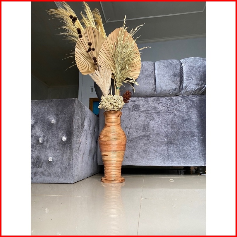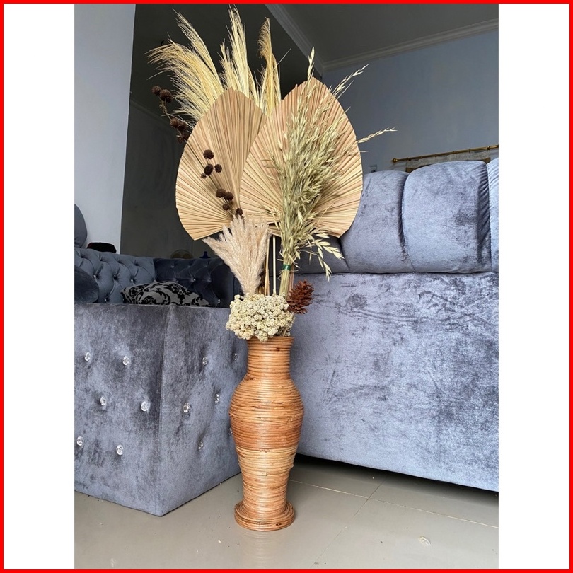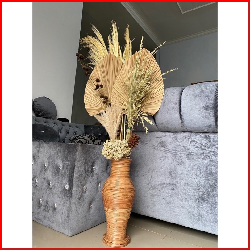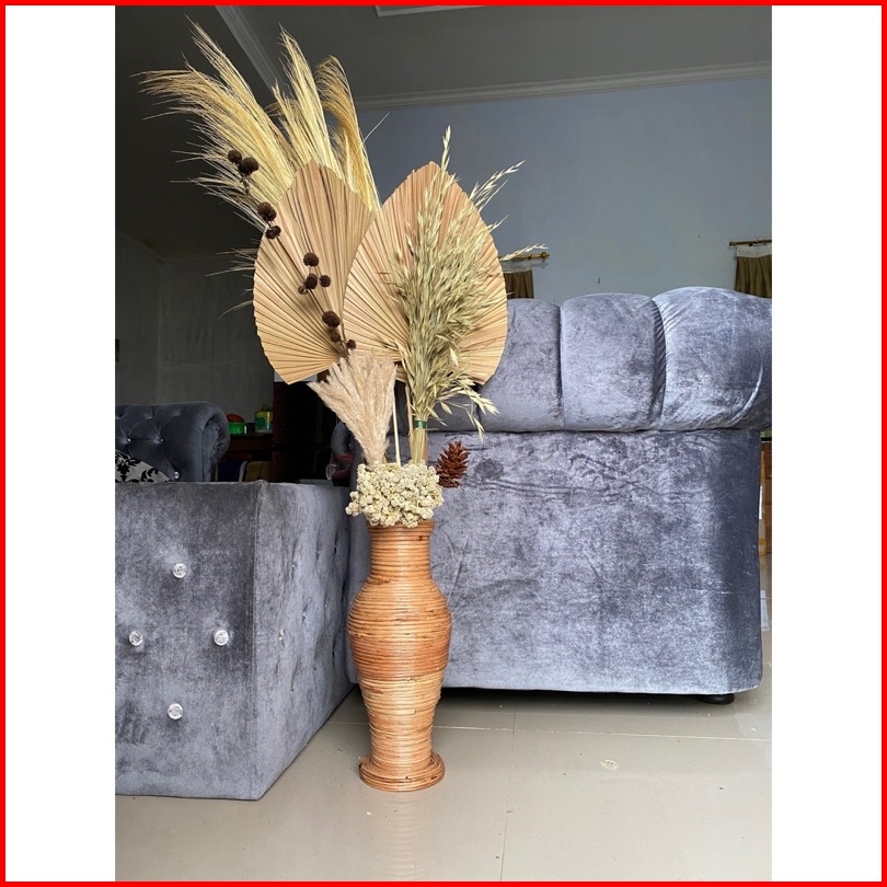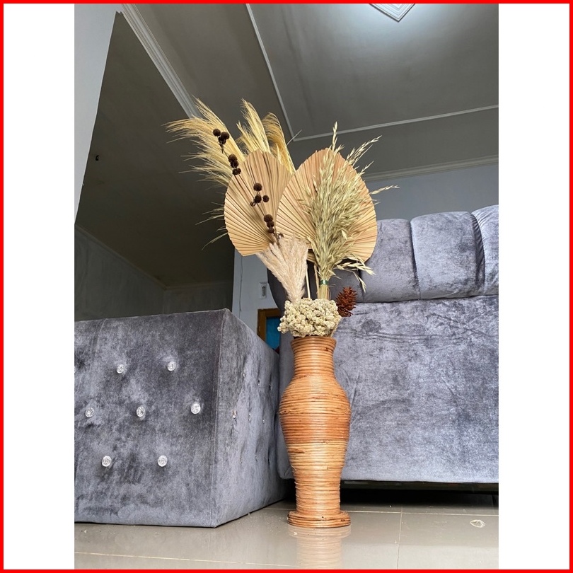Daun Palem Kering Rustic Dan Pot Tinggi 40cm Dekorasi Rustic Estetik