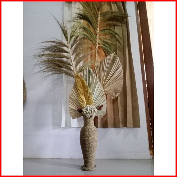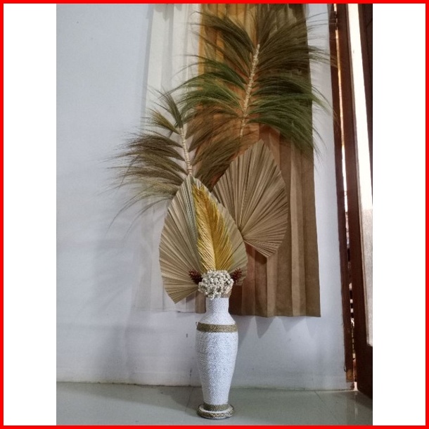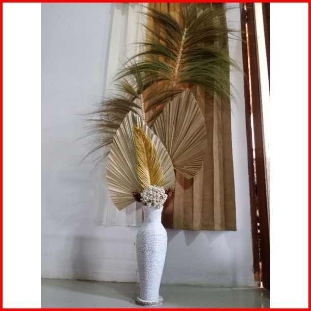 Paket Bunga Kering Dan Pot 50cm Dried Flower Hiasan Rumah Estetik Daun Palem Kering Bunga Kering Home Decor Murah