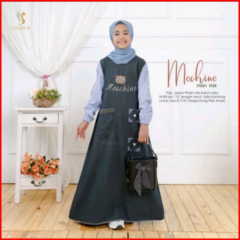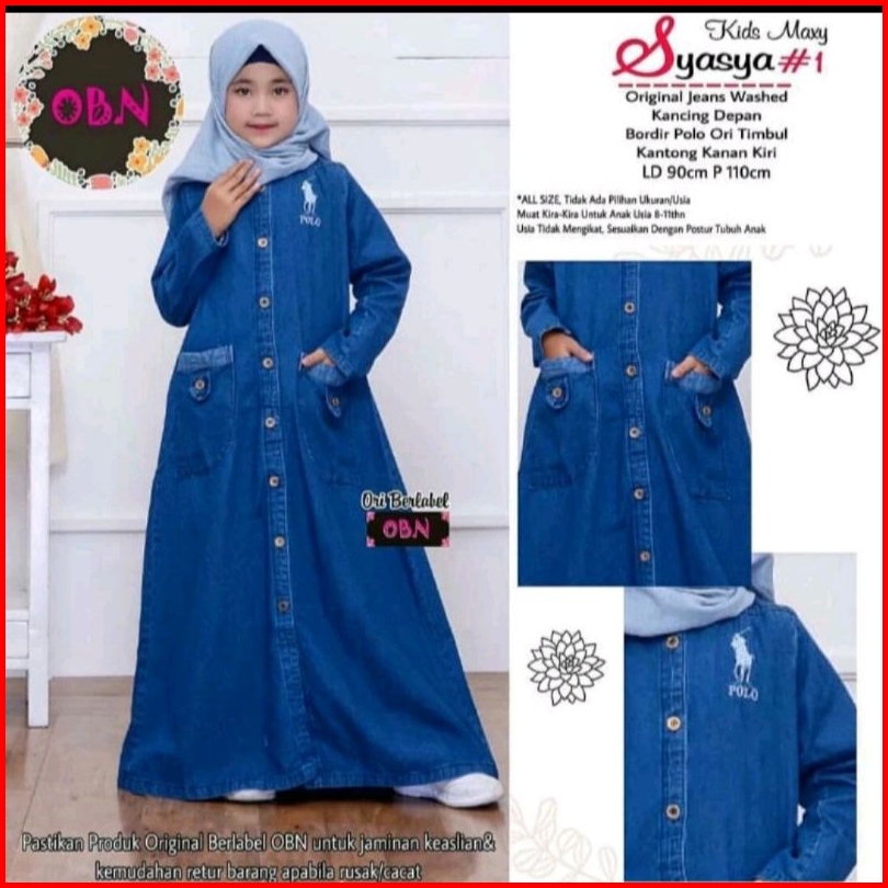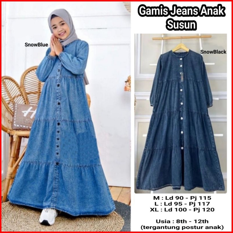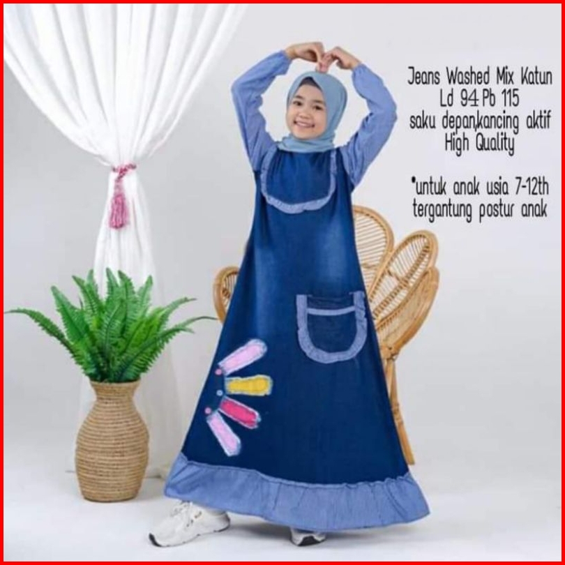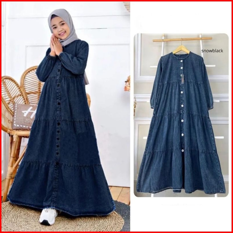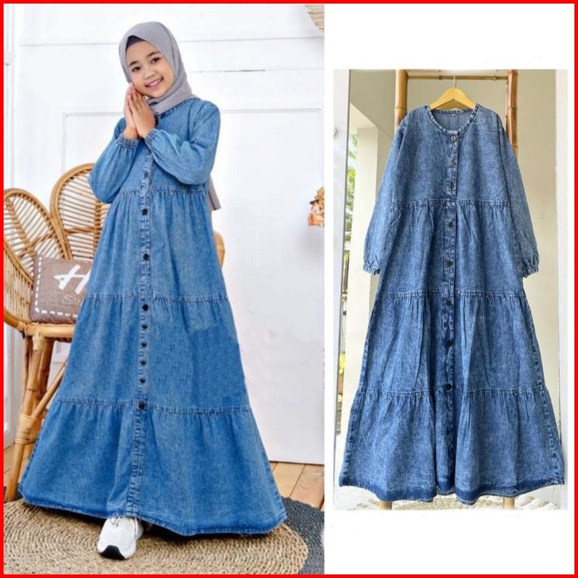 Gamis Jeans Anak Perempuan Polos Umur 8 - 12 Tahun Terbaru Dress Panjang Anak Cewek Bahan Jeans