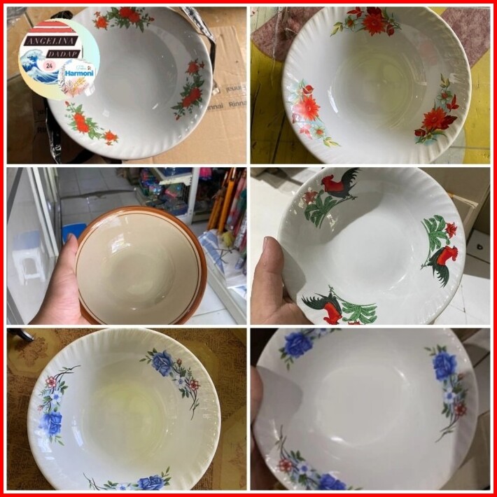 Mangkok Keramik Lusinan Murah Mangkok Kembang Mangkok Soto Burjo - 7 In Biru 3pcs