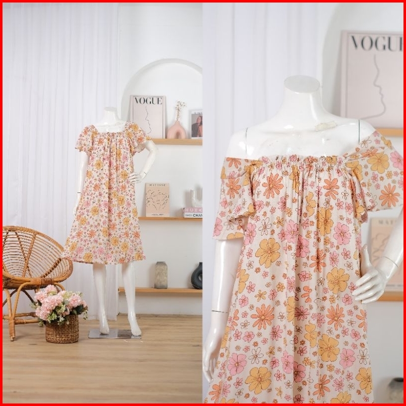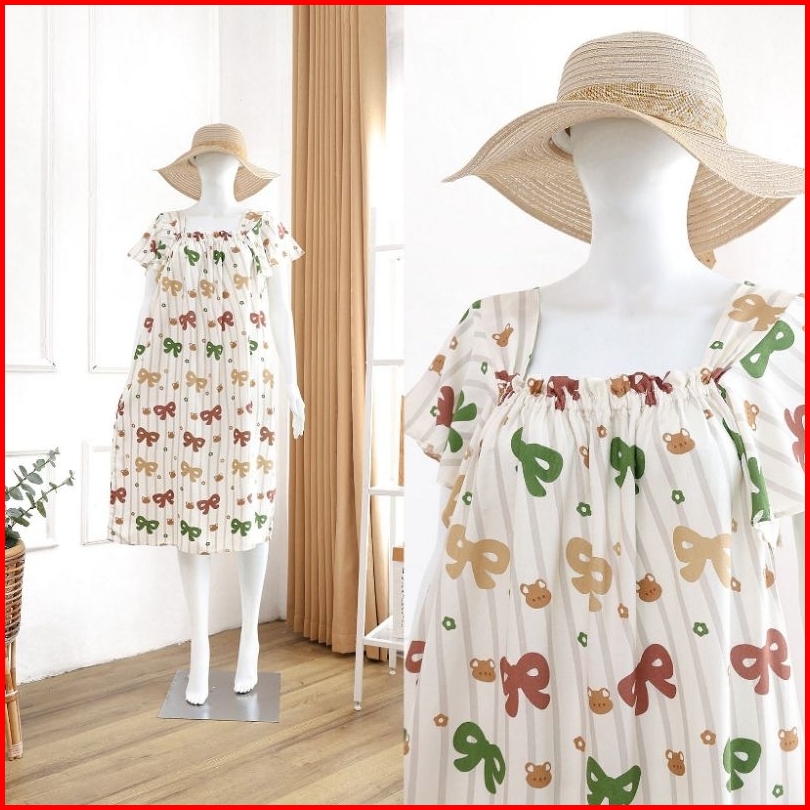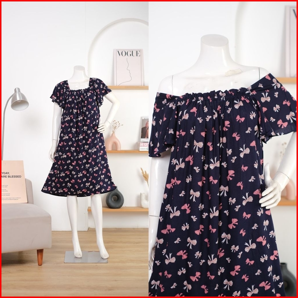 Queen Dress Daster Pendek Busui Karet Rok Lebar