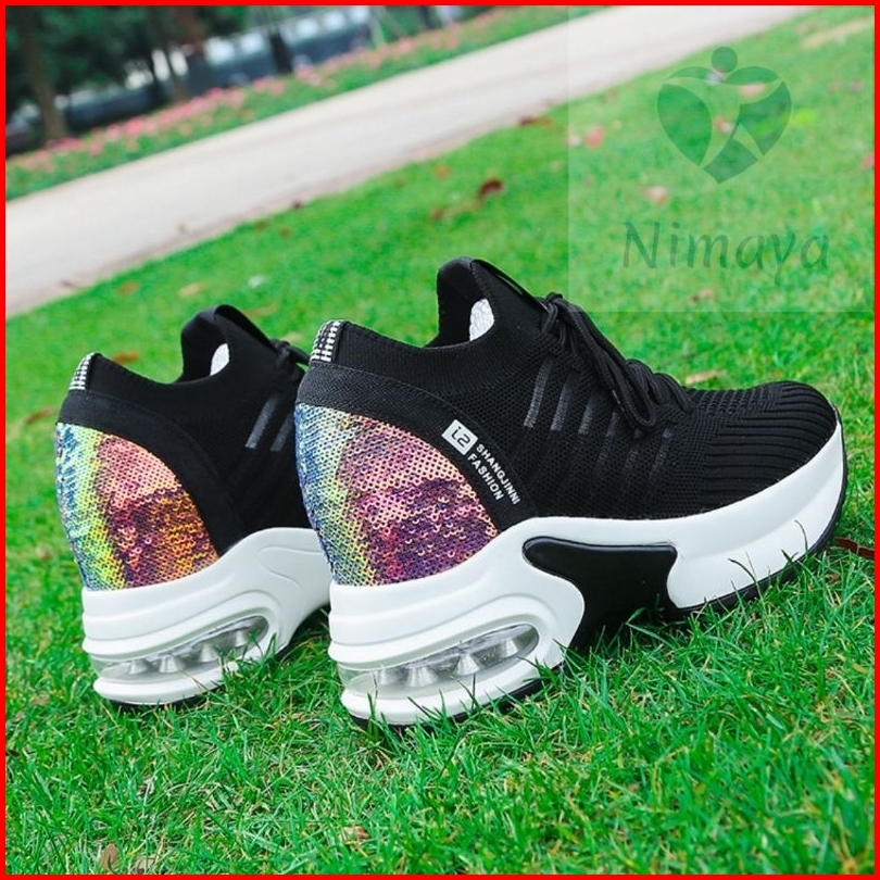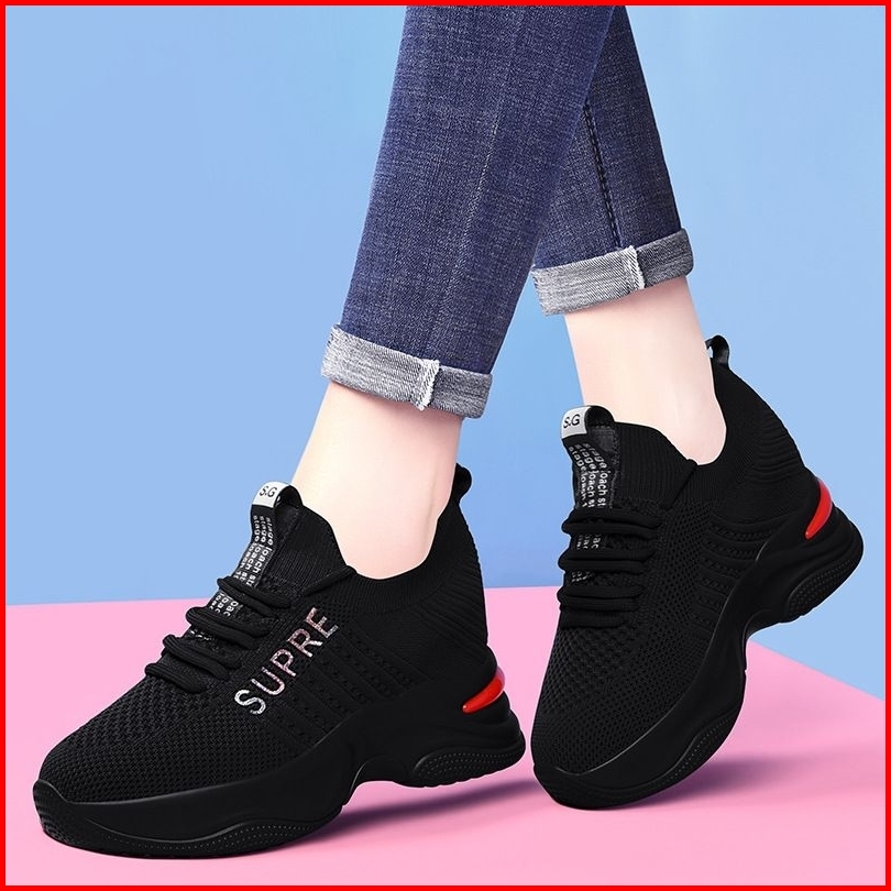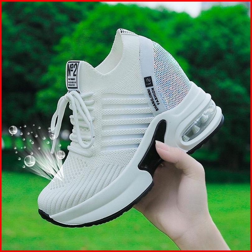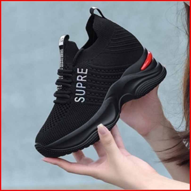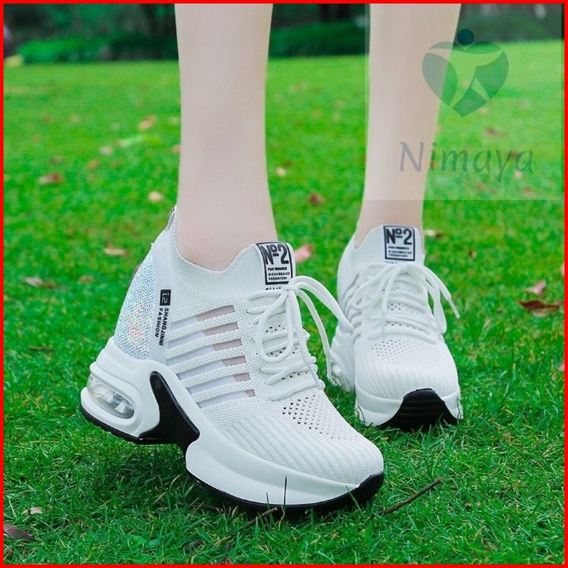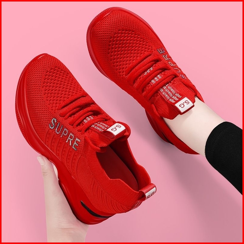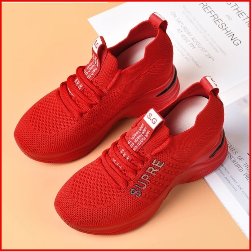 Fashion Sepatu Sport Tinggi Wanita Merah Putih Import Original Murah