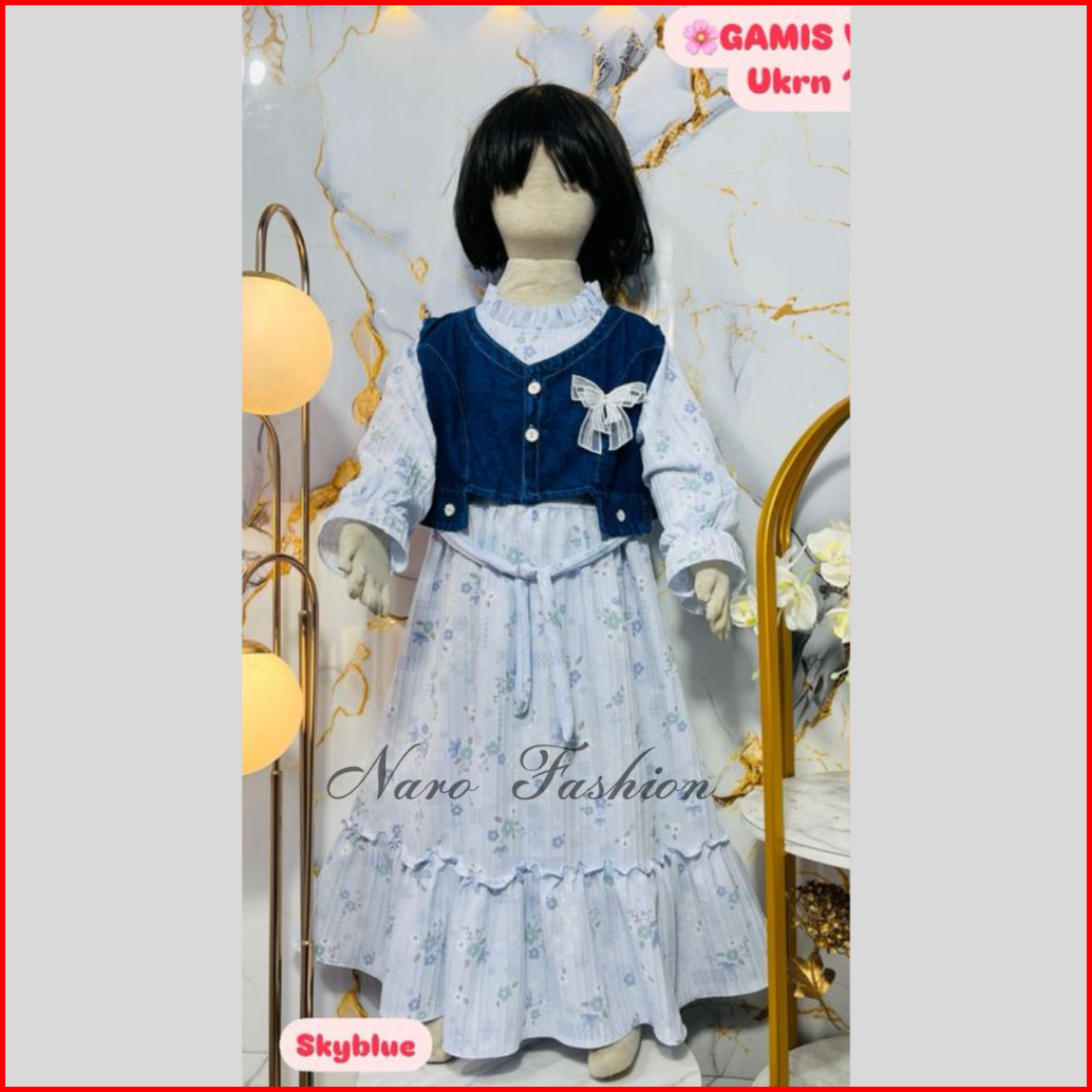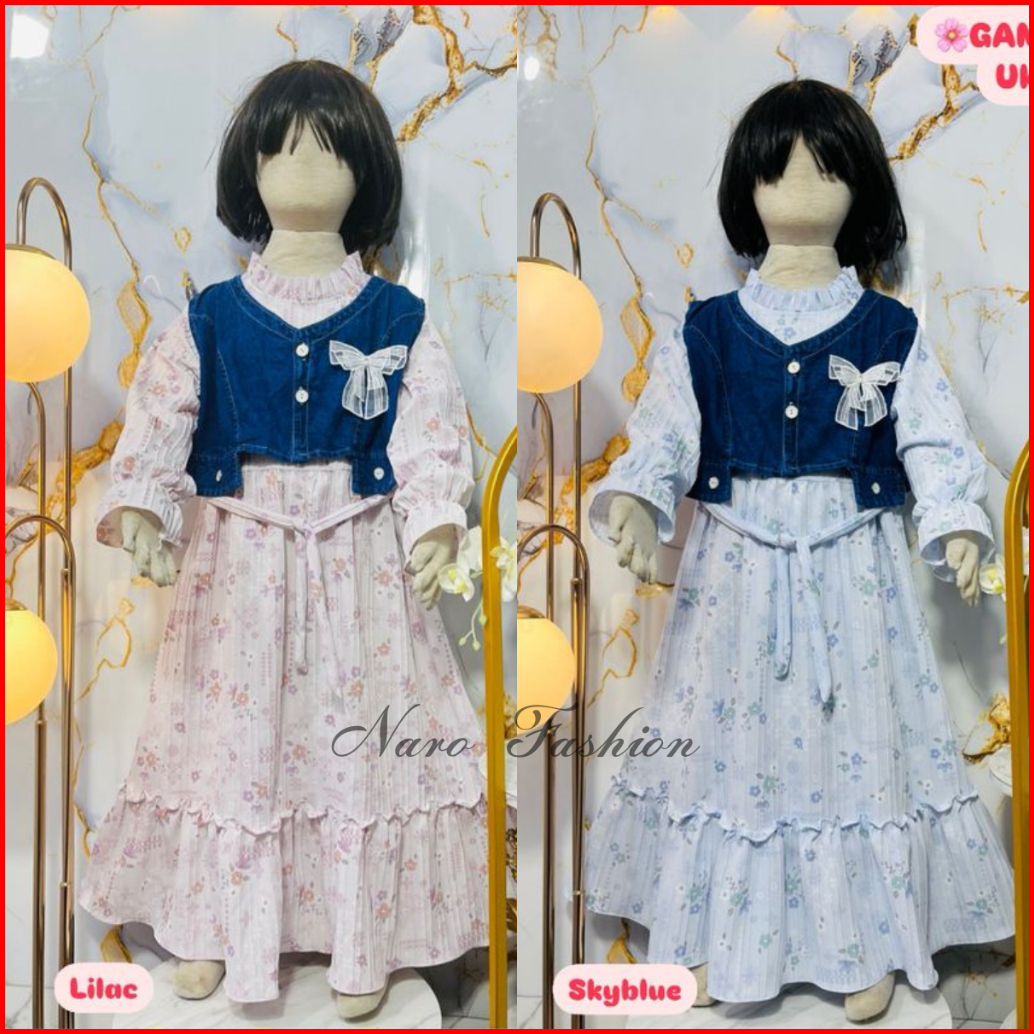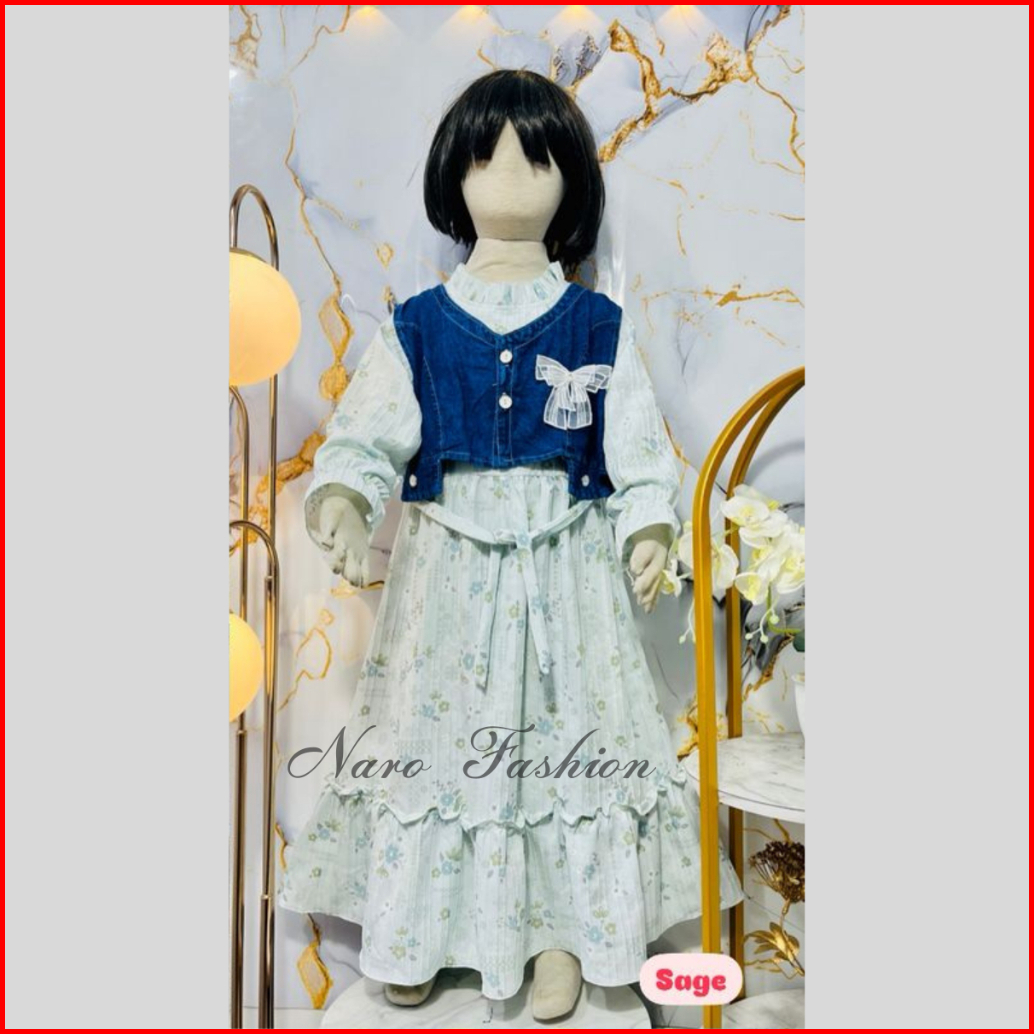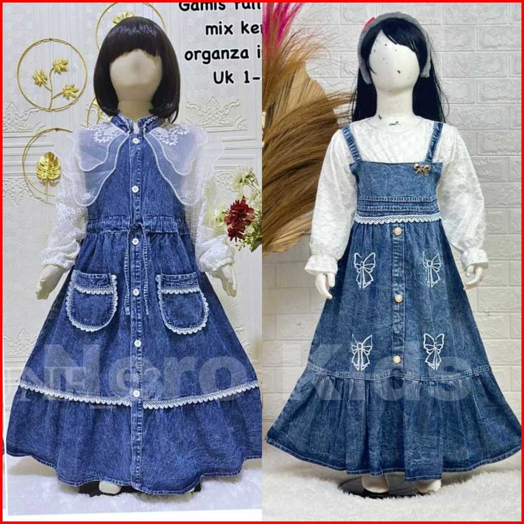 Gamis Anak Perempuan Jeans Mix Brukat Usia 3 - 10 Tahun Lebaran 2025 Terbaru Model Korea Motif Polkadot Terbaru