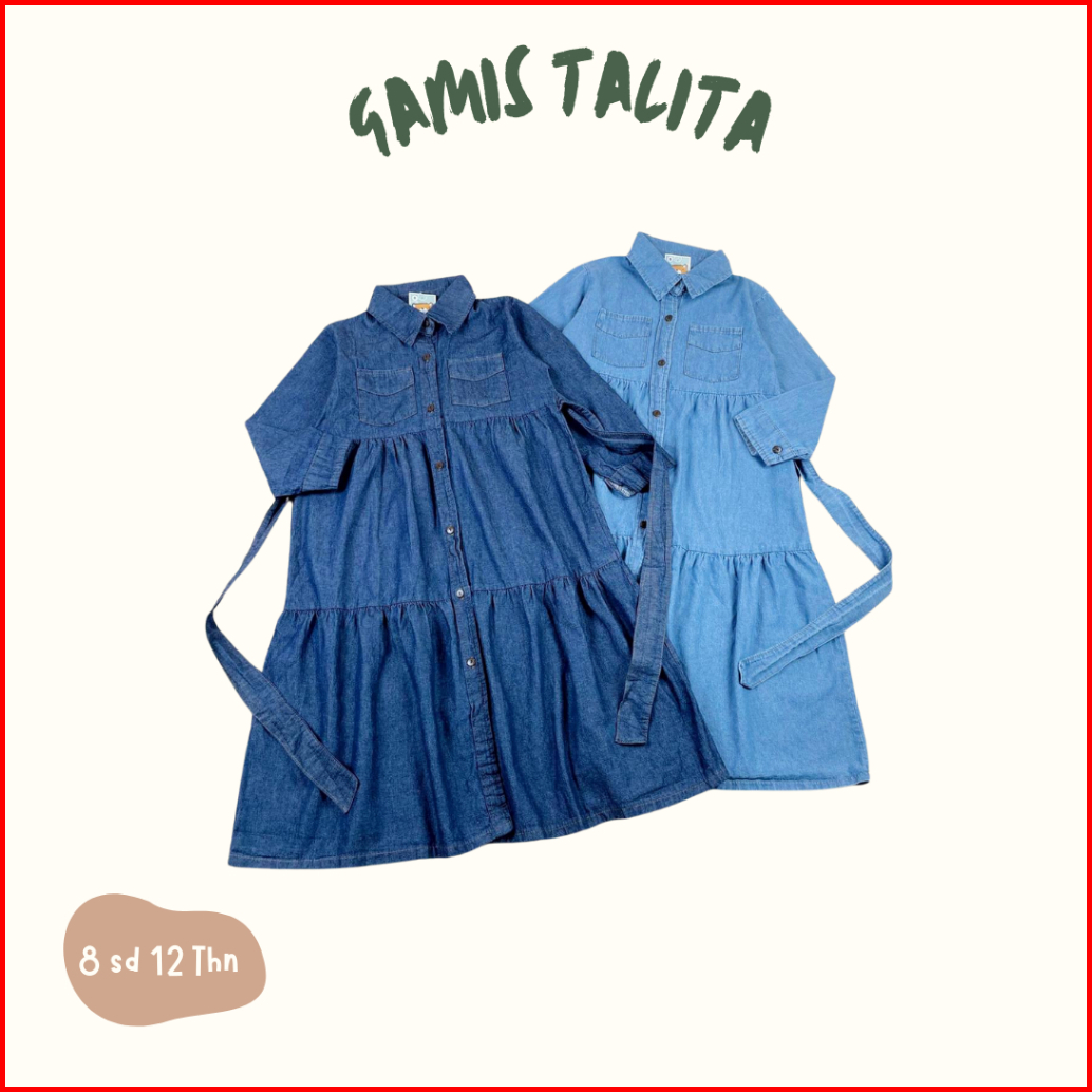 Happy Bear - Gamis Jeans Anak Talita Fit Usia 8 9 10 11 12 Tahun