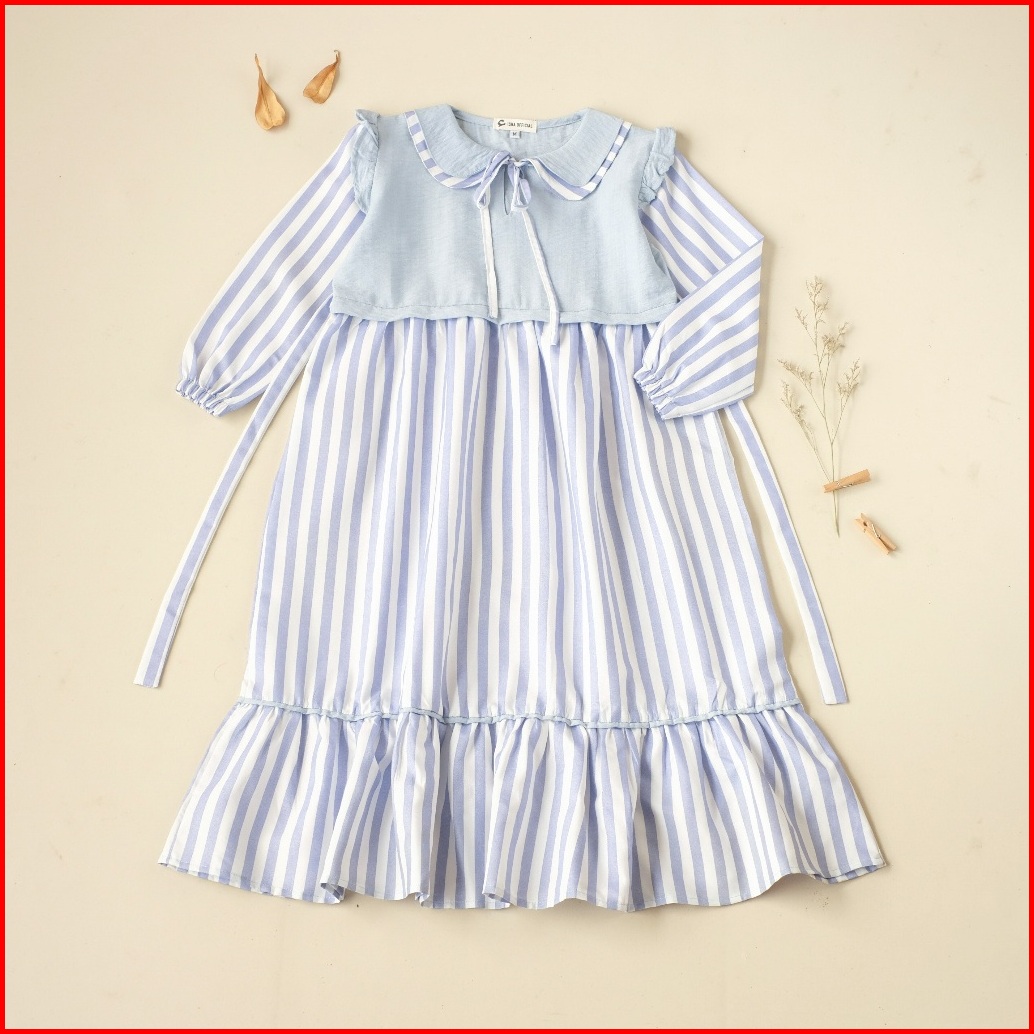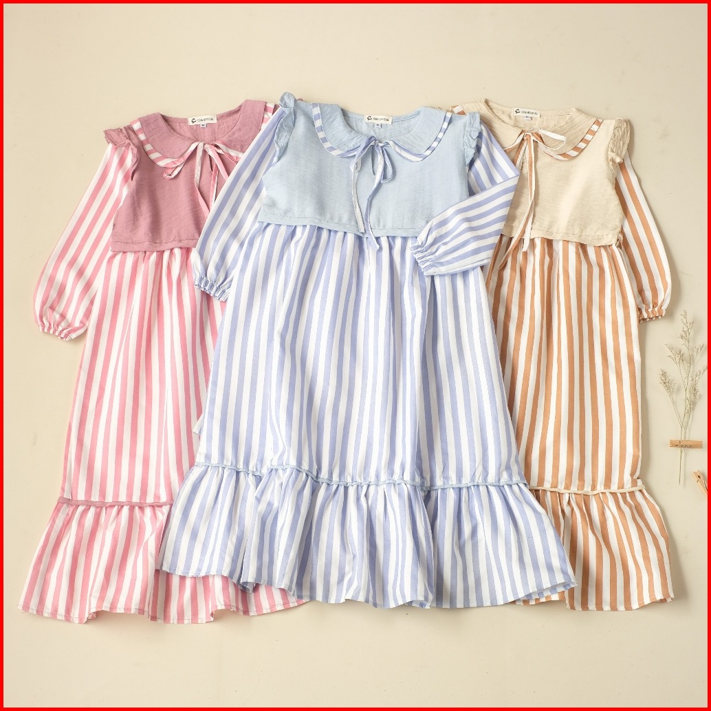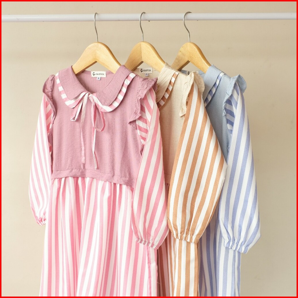 Madina Azizah - Gamis Anak Perempuan 2-12 Tahun Lengan Panjang Motif Garis-garis Korean Style