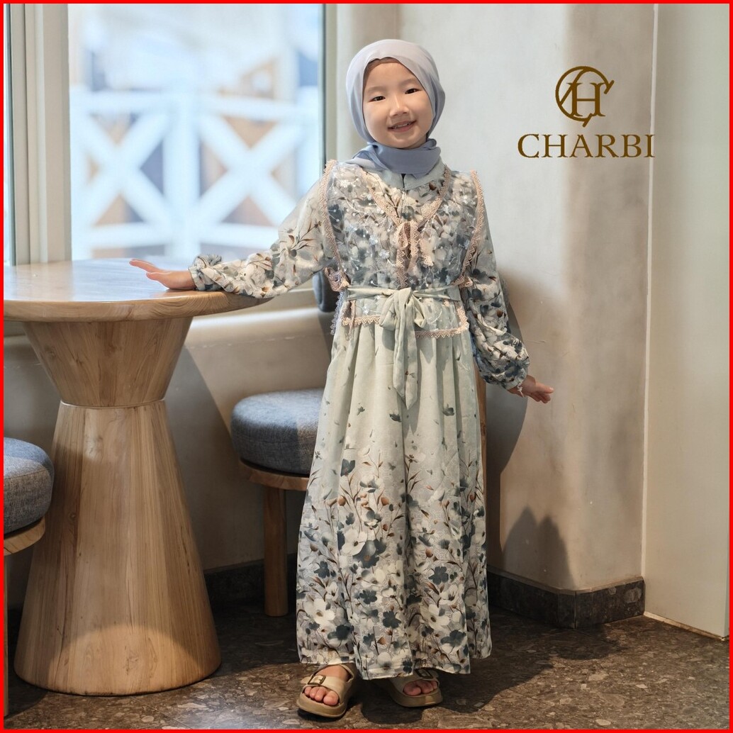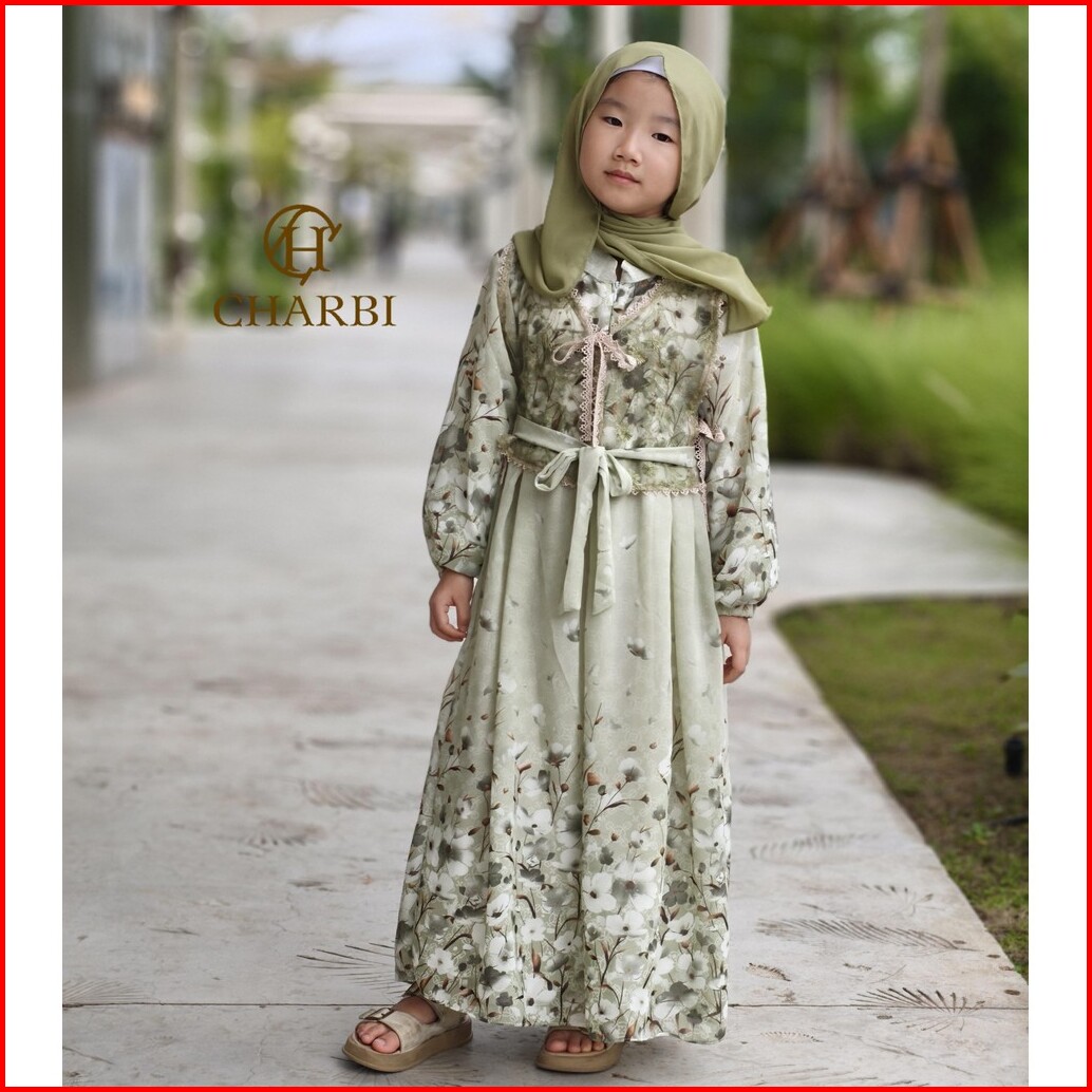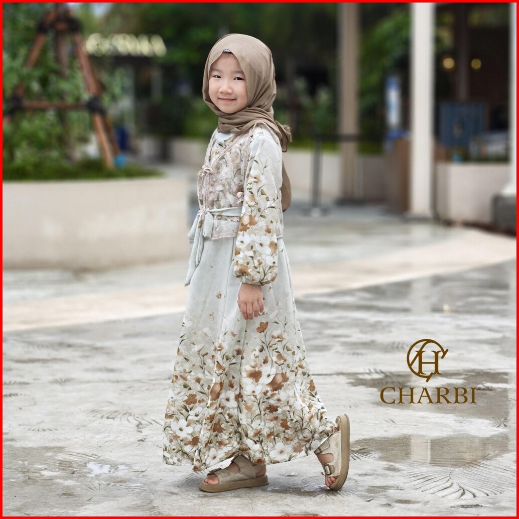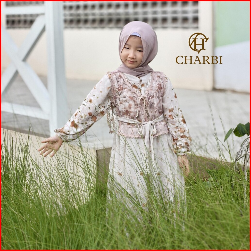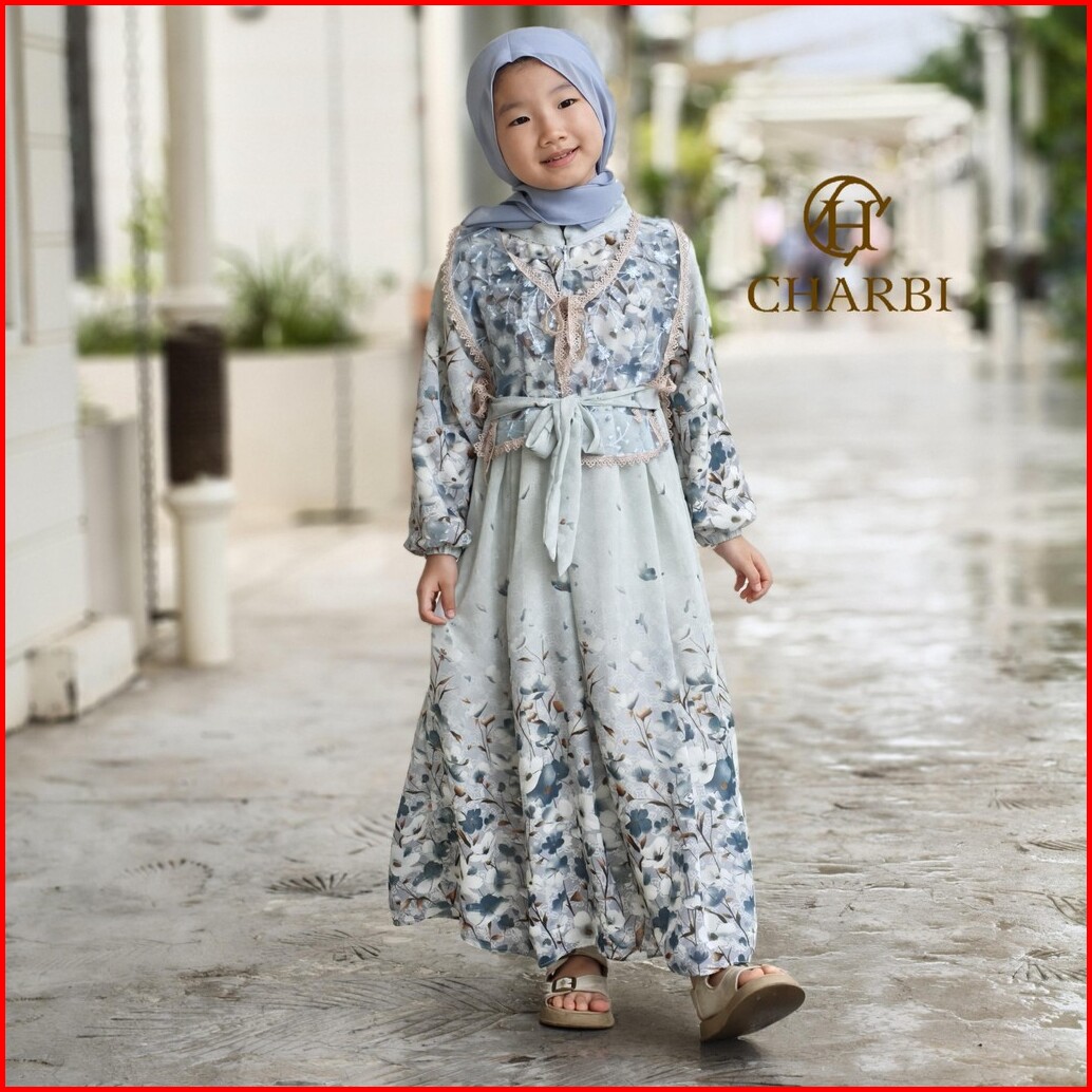 Gamis Set Ayleen - 2 In 1 Ceruty Flower Mix With Tulle Embroidery Vest Anak Anak - Charbi