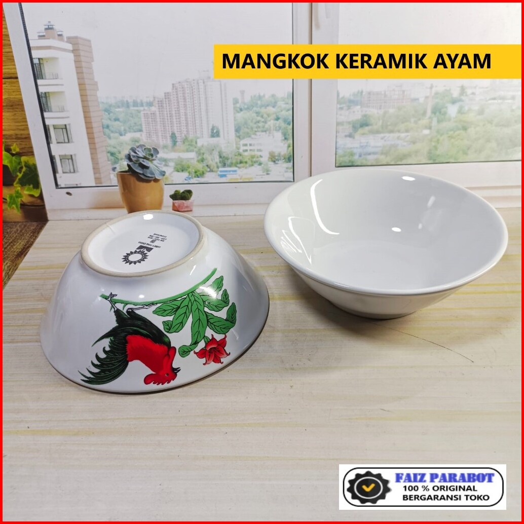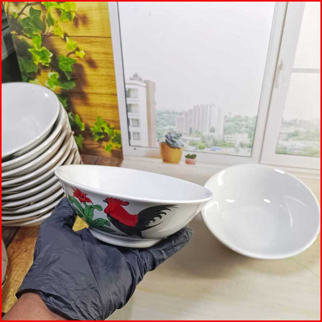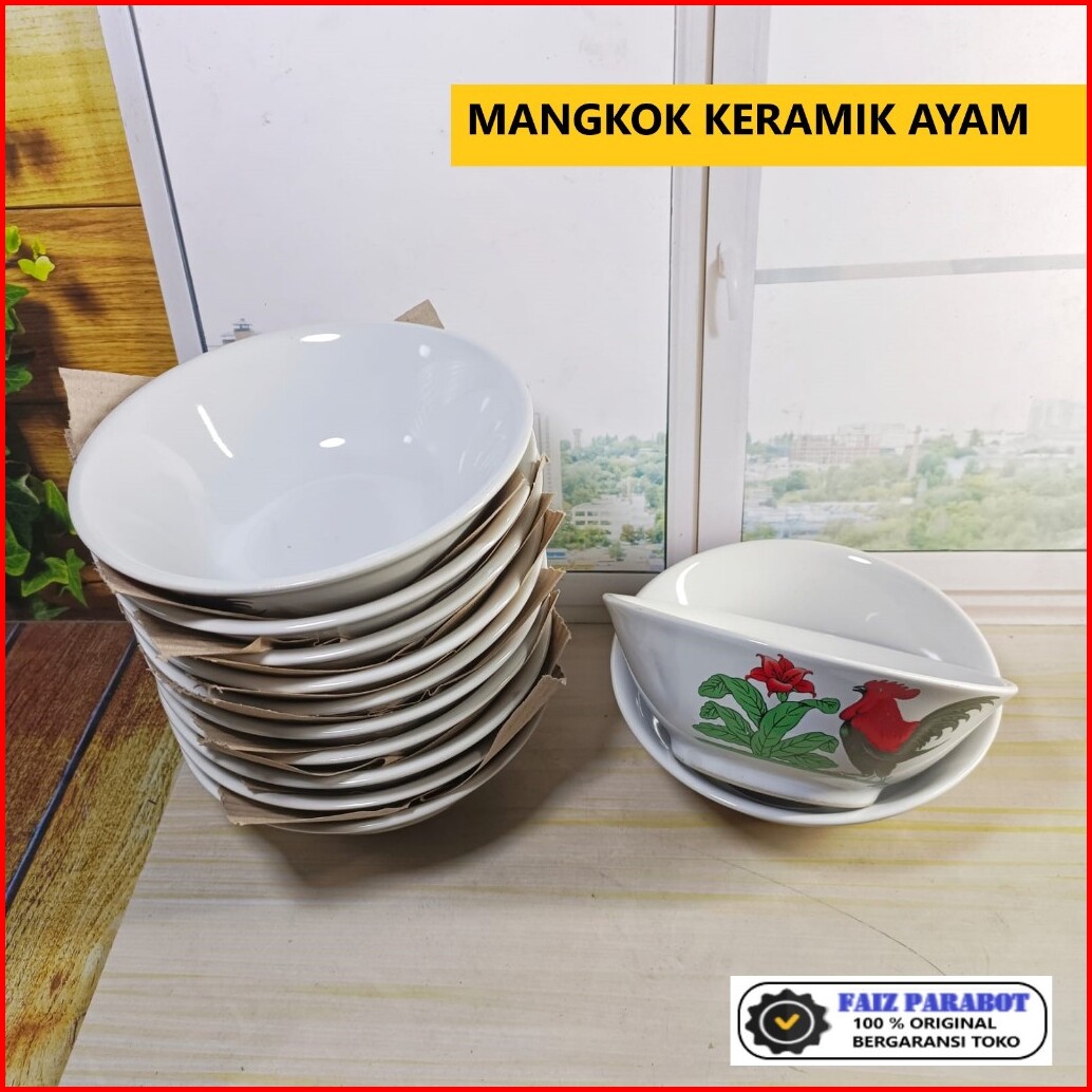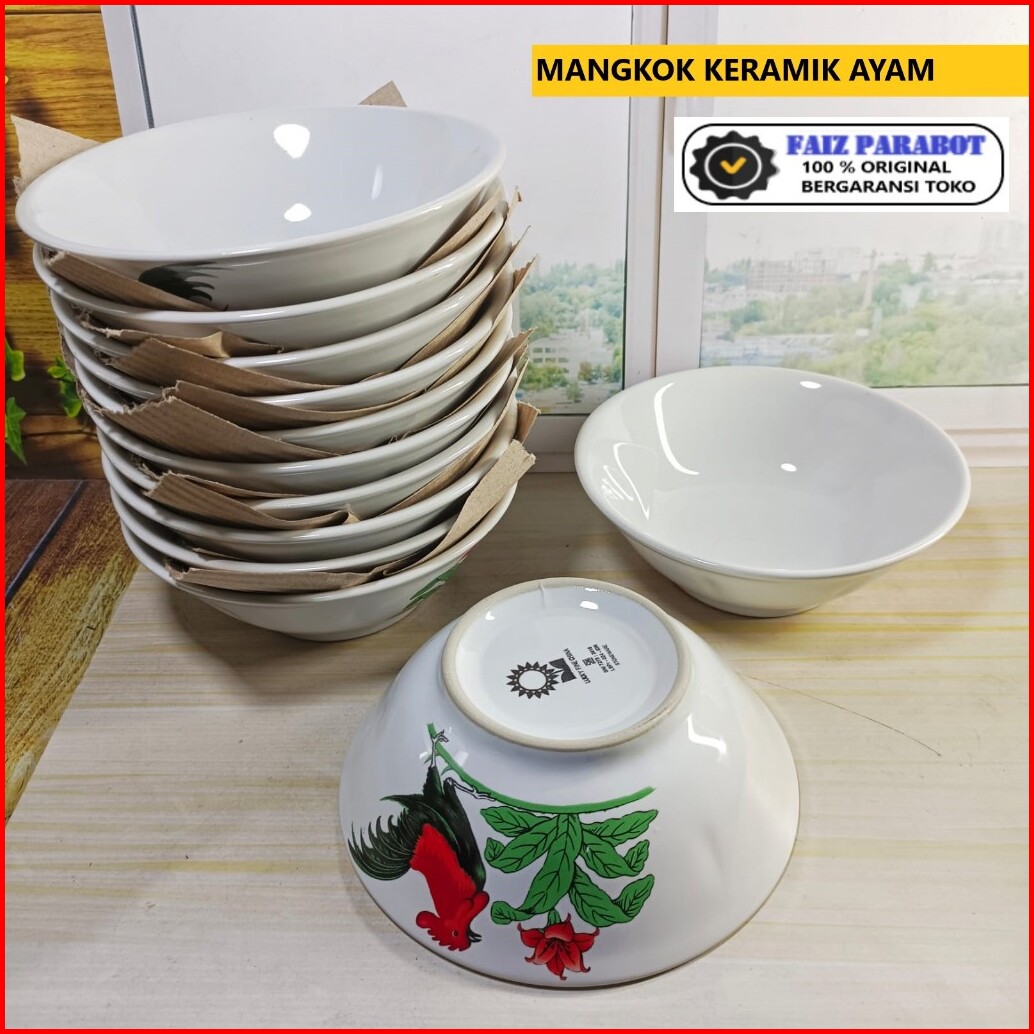 12 Pcs Mangkok Keramik Ayam Mangkok Bakmi Mangkok Bubur Mangkok Cap Ayam Jago