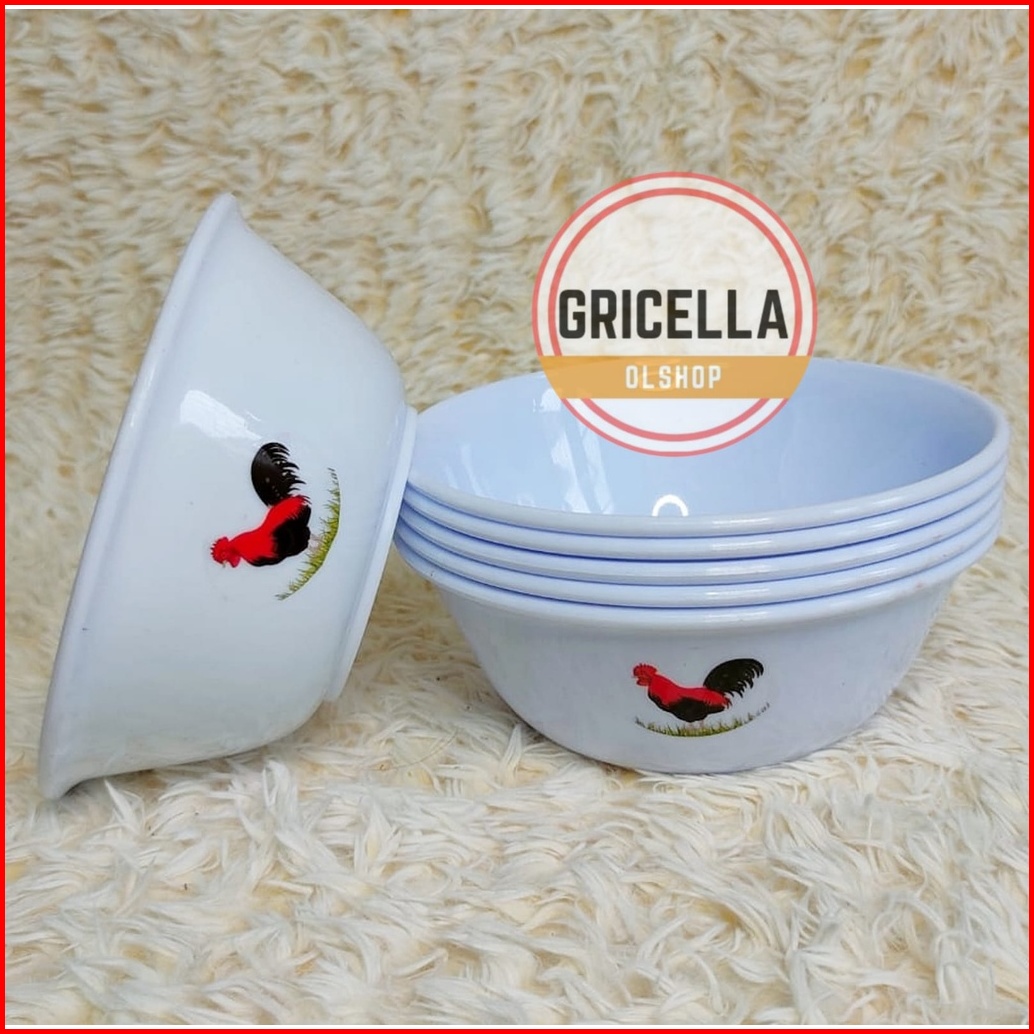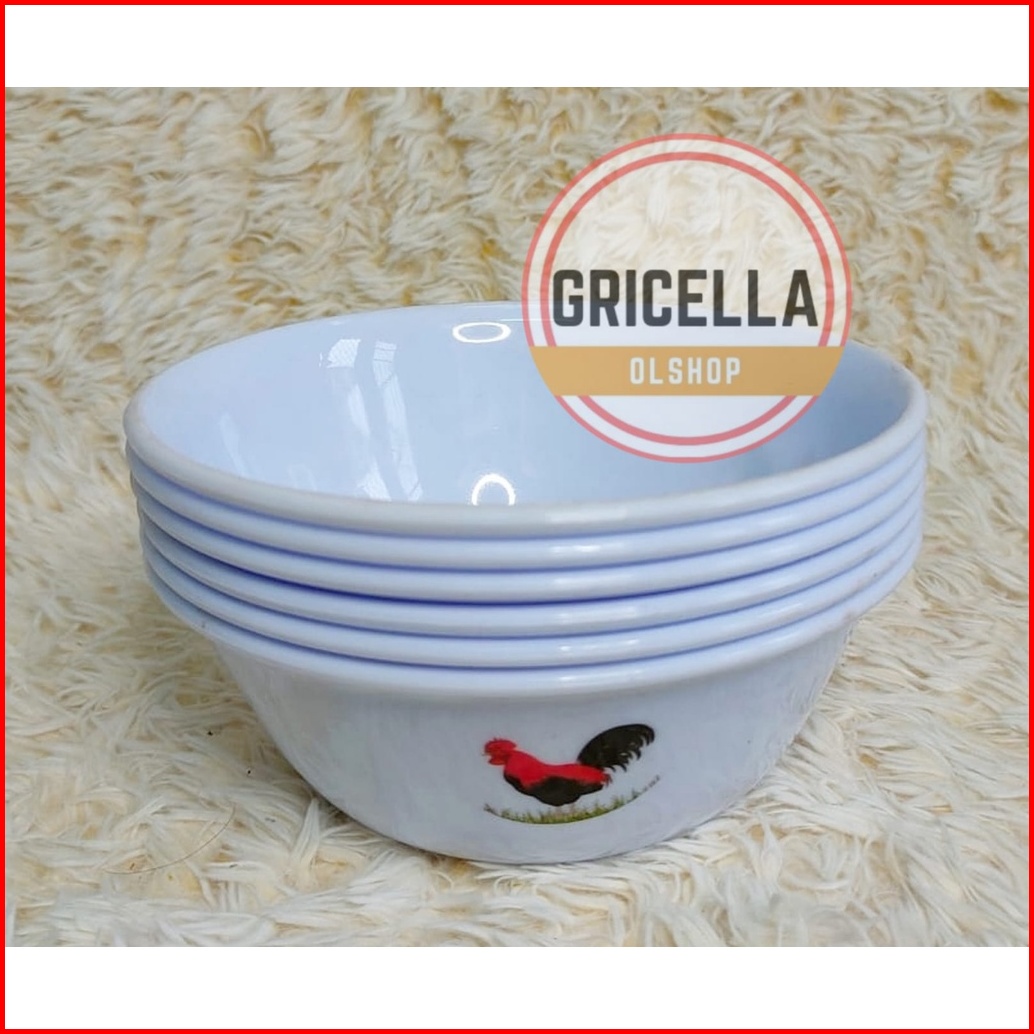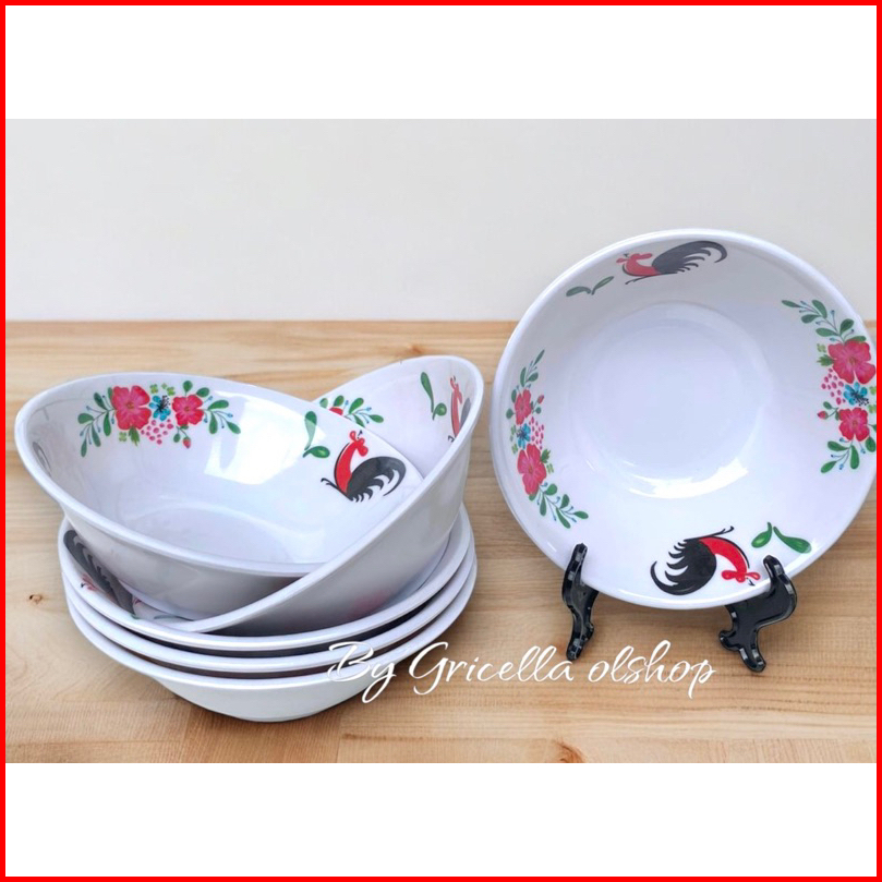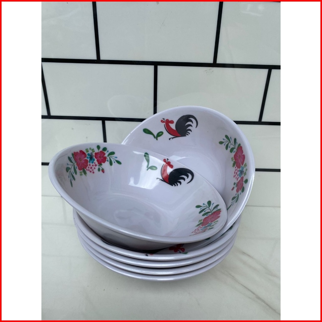 Paket 1 Lusin Mangkuk Ayam Jago Bulat Melamin Ware Tebal Dan Terlaris