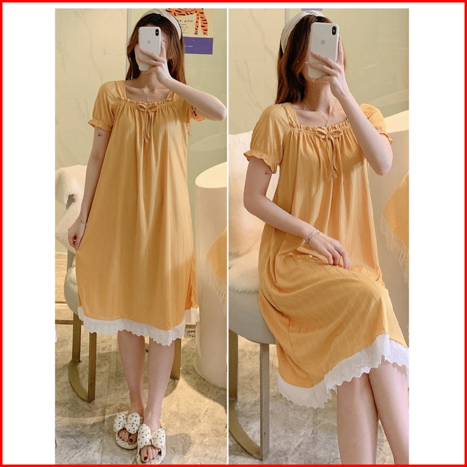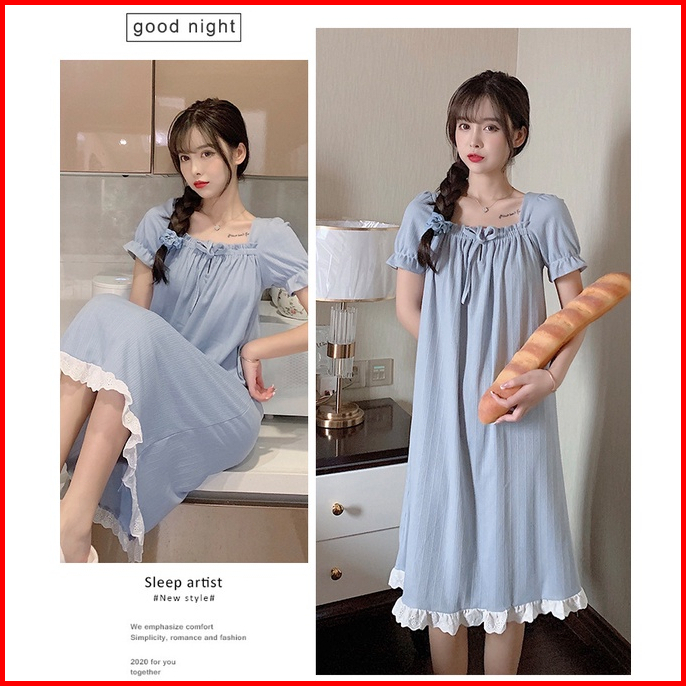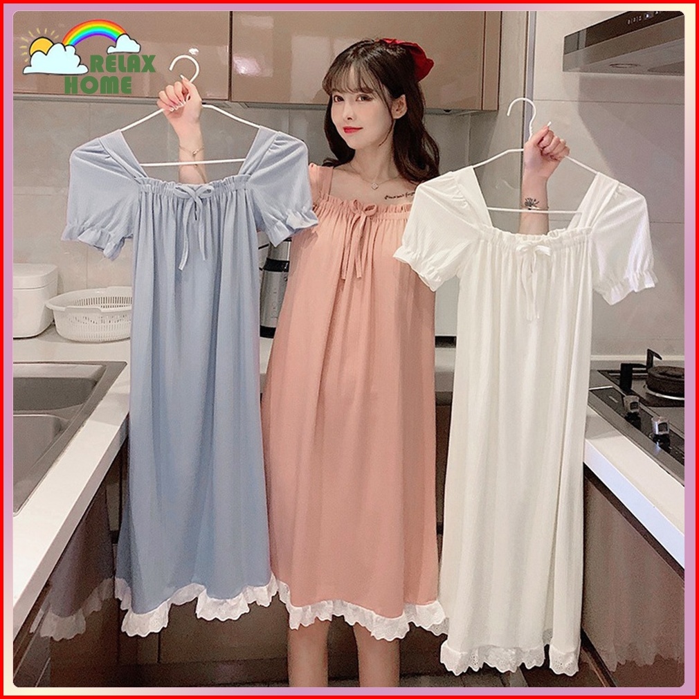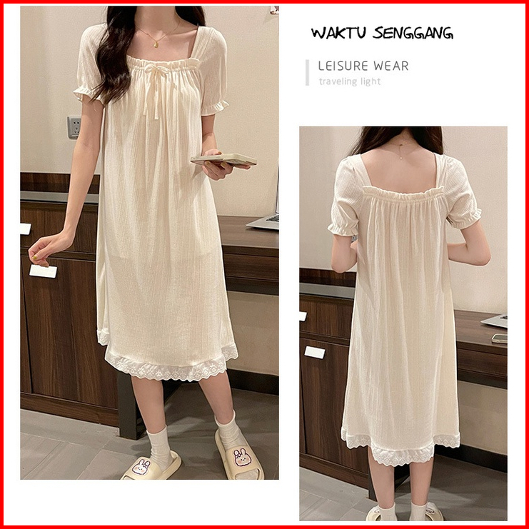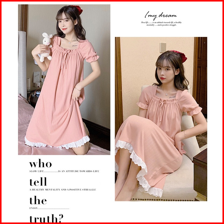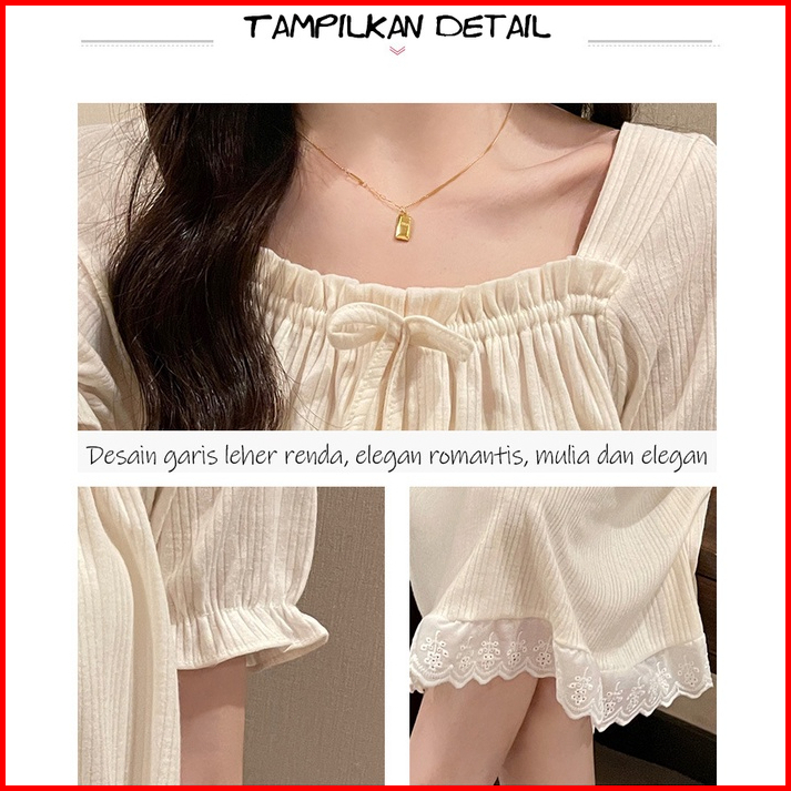 Uninice Baju Tidur Lengan Pendek Wanita Korean Yang Manis Dan Lucu Kelim Renda Import Piyama