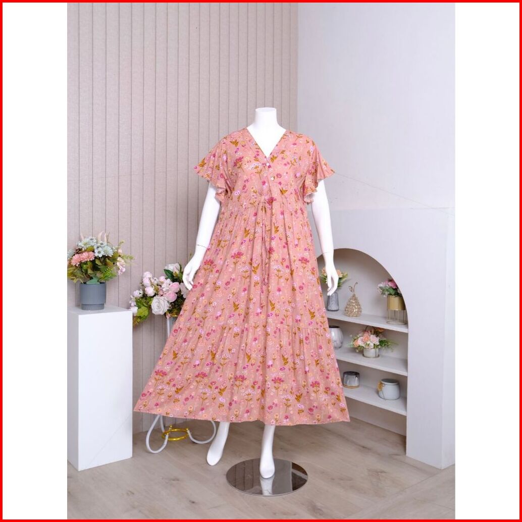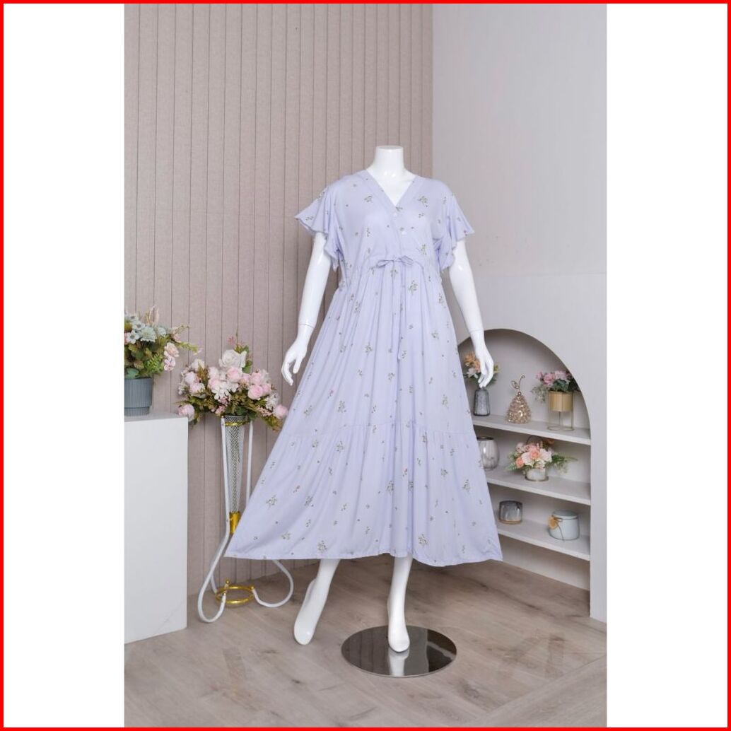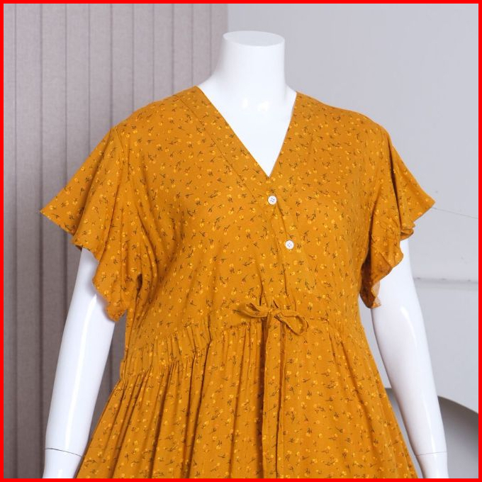 Dress Rumahan Daster Kekinian Raisa Motif Zoraya Rayon Premium Busui Friendly Kancing Hidup Rempel Pundak Dan Dada Canti