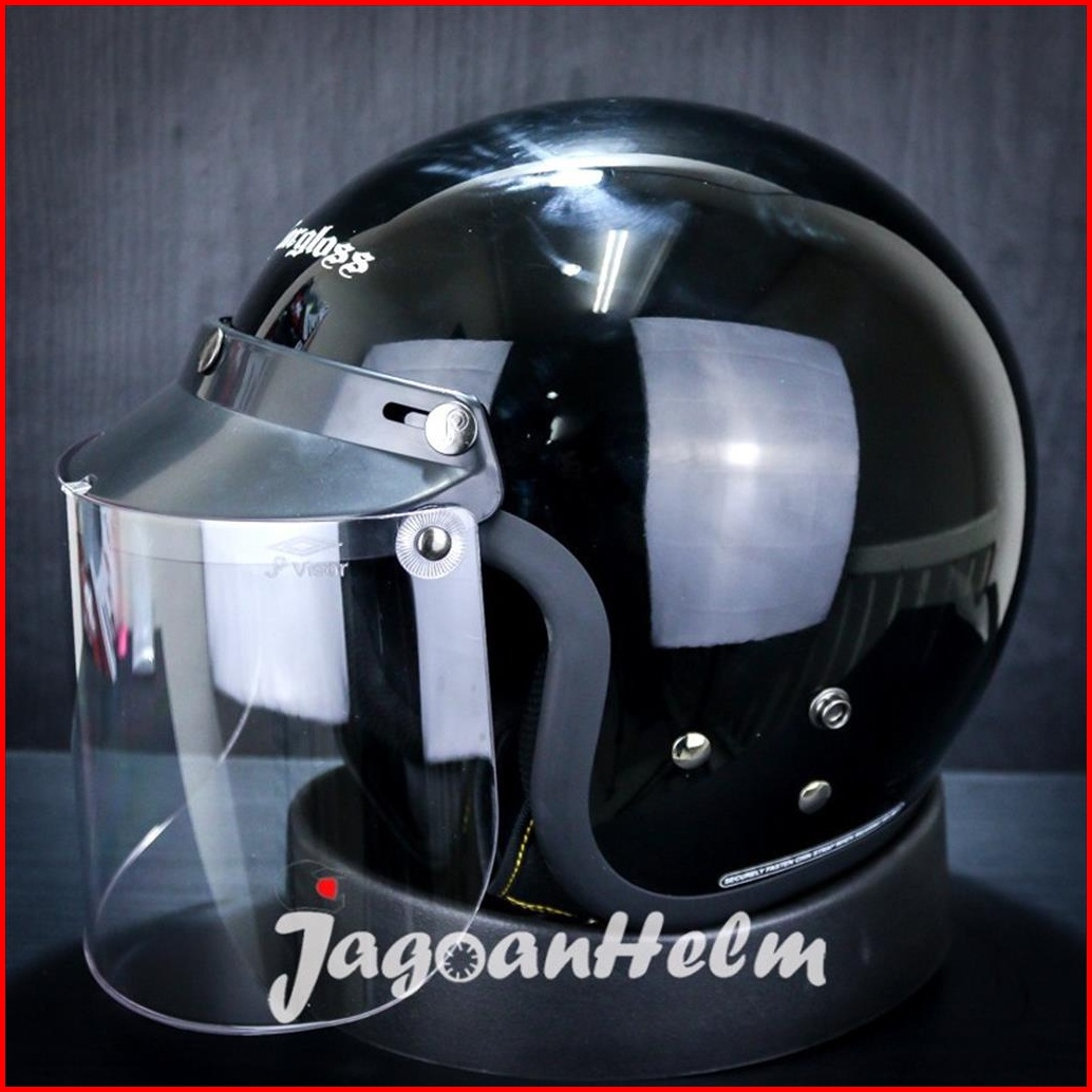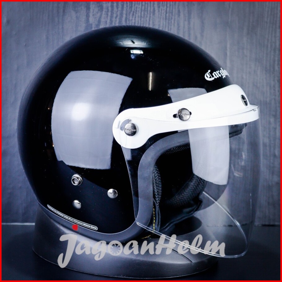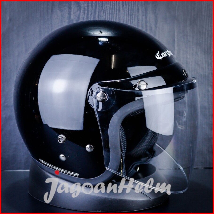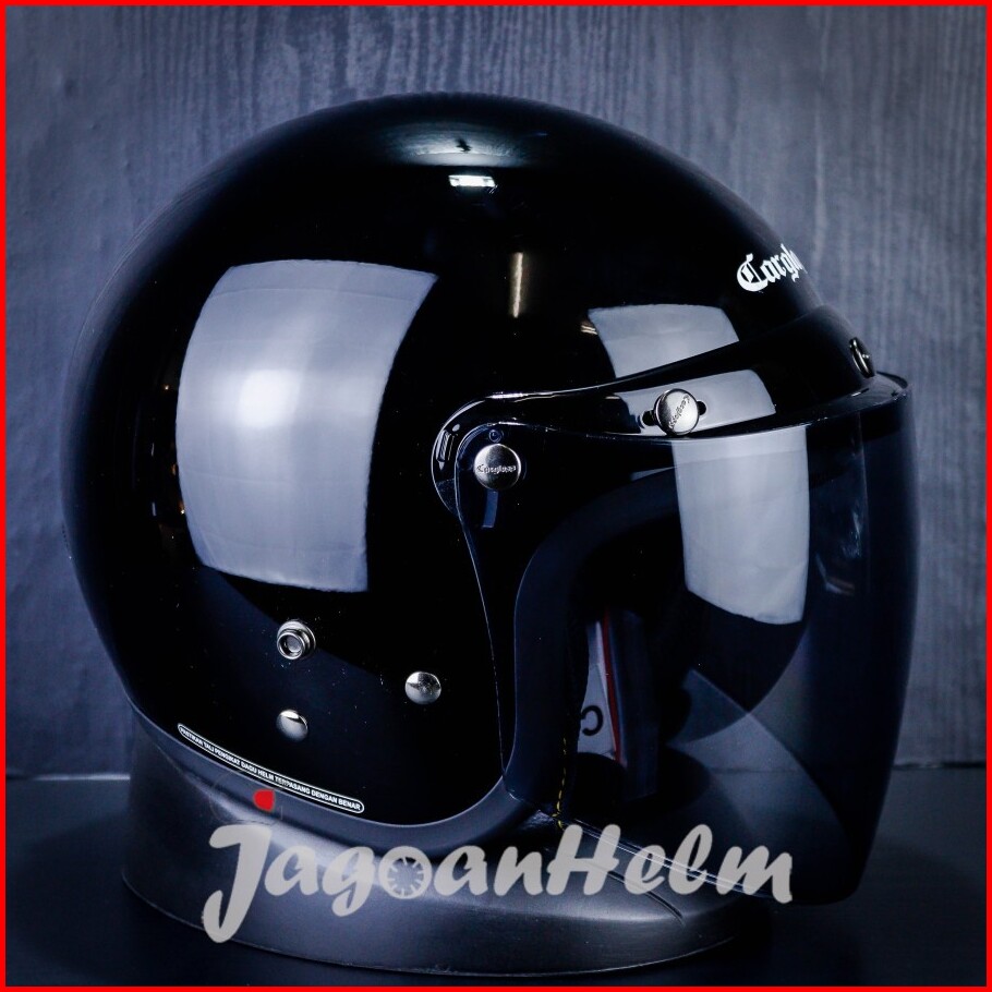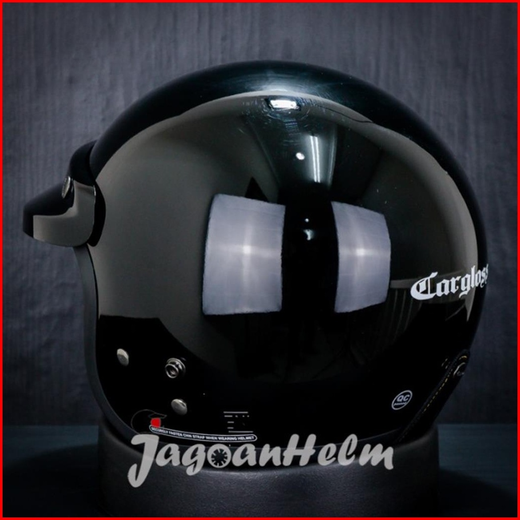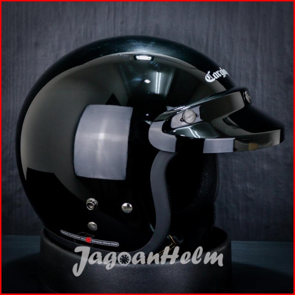 Cargloss Helm Cf Retro Black Metalic Glossy Half Face Carglos Army Cfm