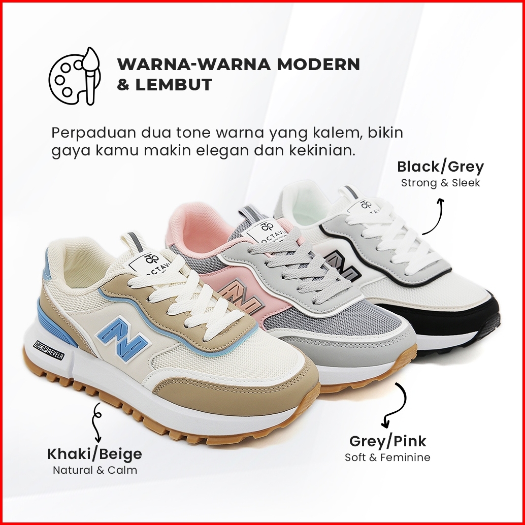 Octavia Sepatu Wanita Sneakers Casual Highsole N Series Korean Style Kekinian Oc-b11