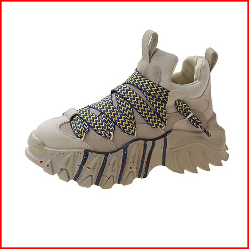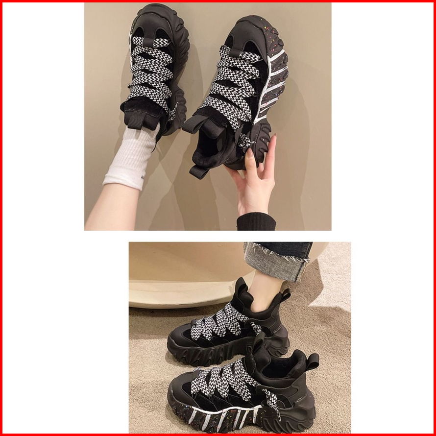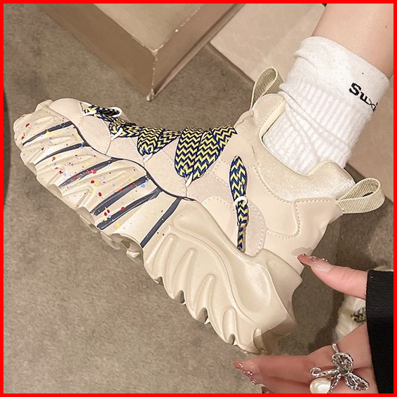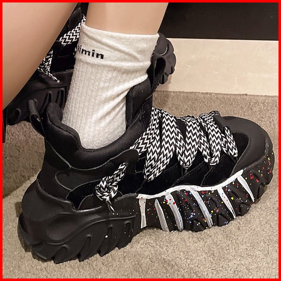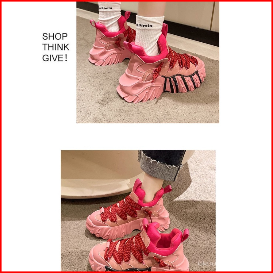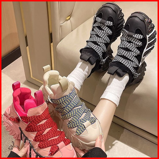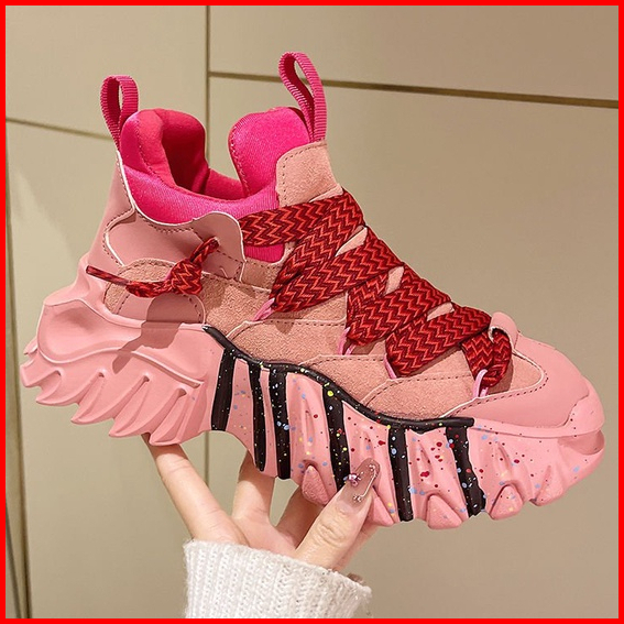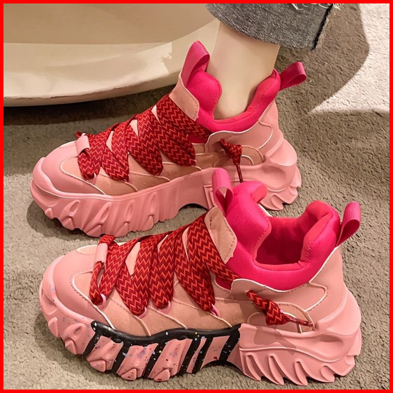 Ready 2025 Musim Semi Baru Eropa Stasiun Sepatu Wanita Muffin Tebal Bawah Bersih Merah All-match Lace-up
