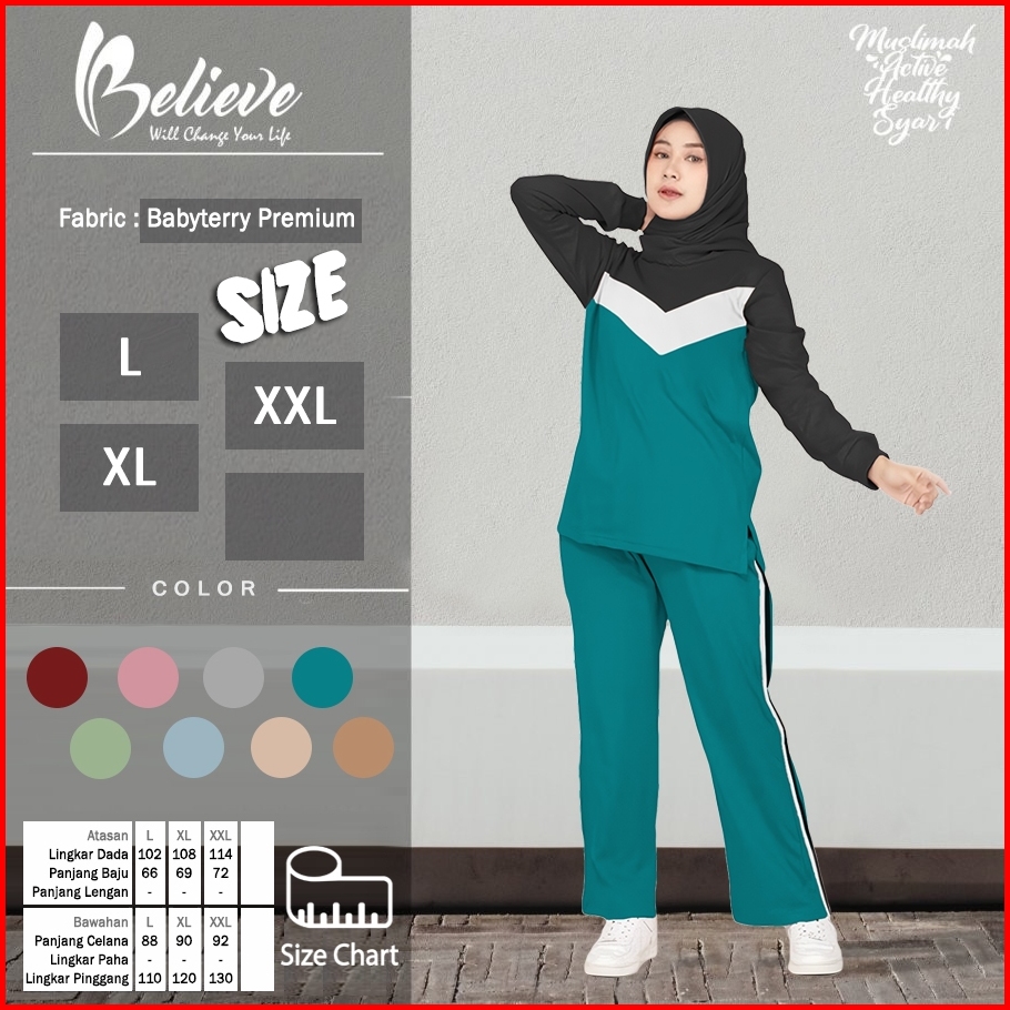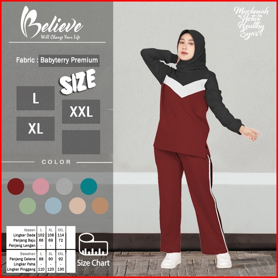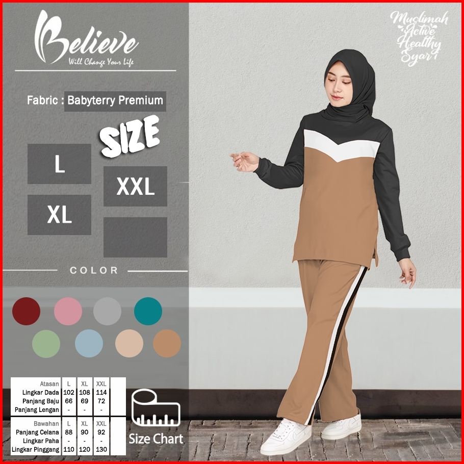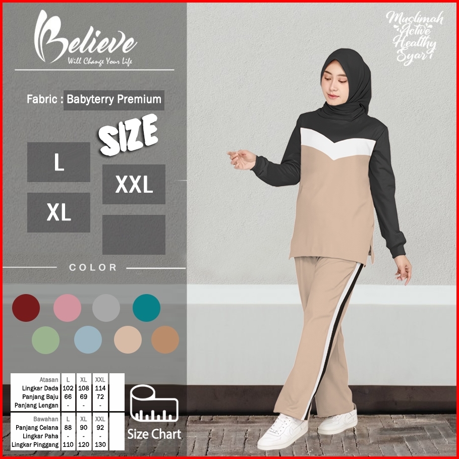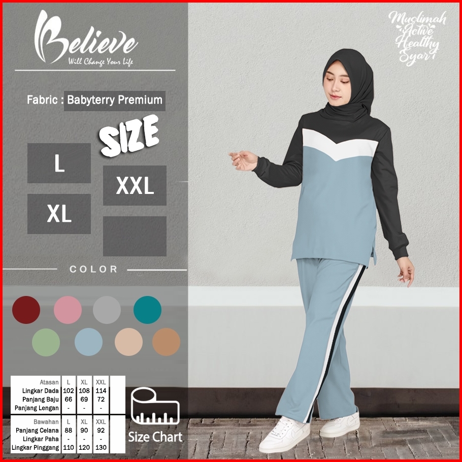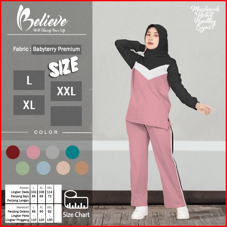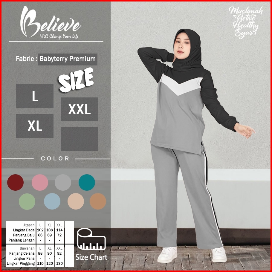 Vn Set - Setelan Kaos Celana Olahraga Muslimah Training Senam Wanita Lengan Panjang Jumbo Big Size L Xl Xxl Lazy Baju Ce
