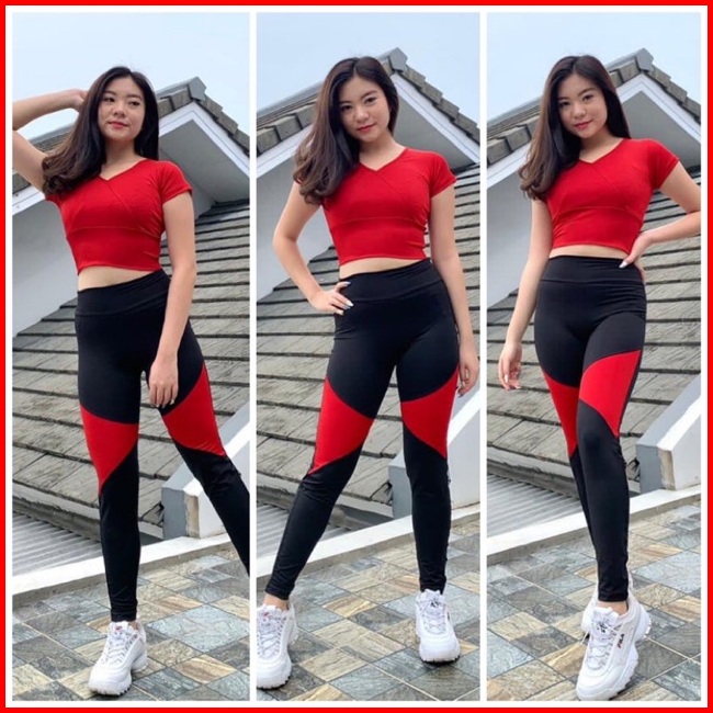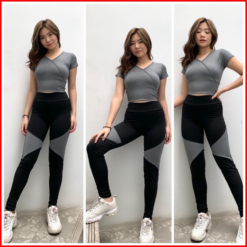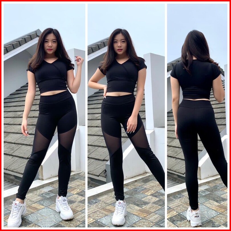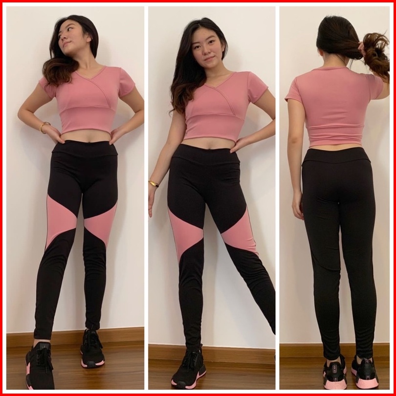 Setelan Senam Aerobik Zumba Yoga Gym Fitness Model Crop V-legging Triangle