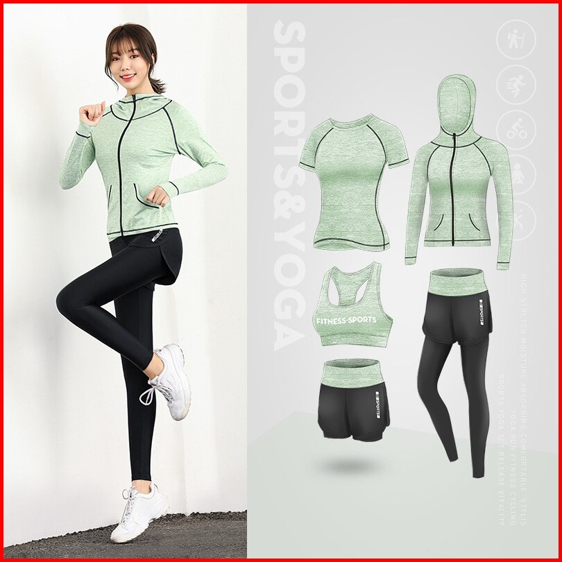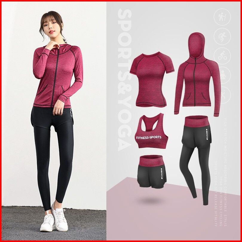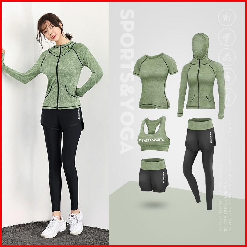 Baju Gym Olahraga Wanita Set Legging Setelan Senam Aerobik Terbaru Import Training Pakaian Jaket Lengan Panjang Anti Uv